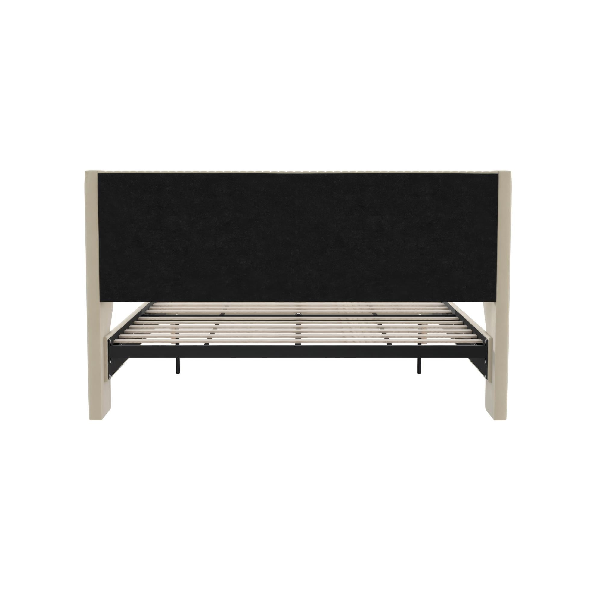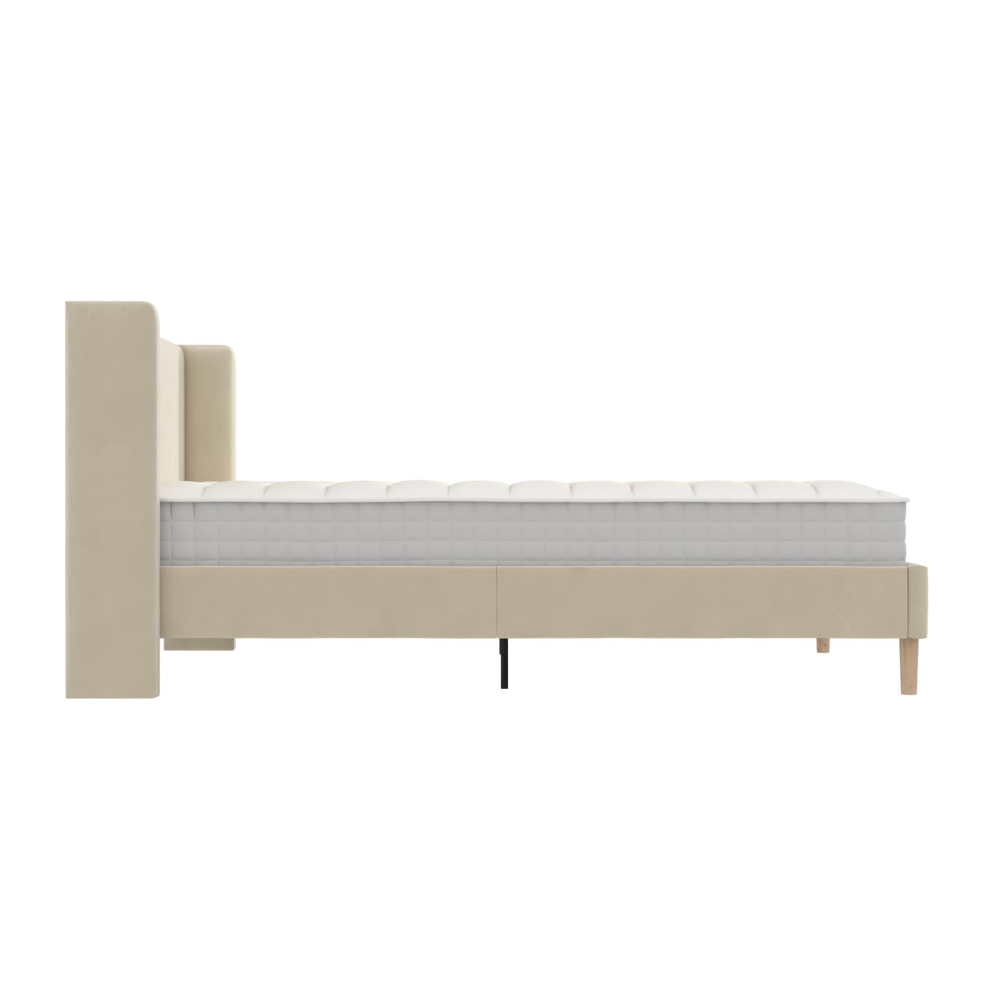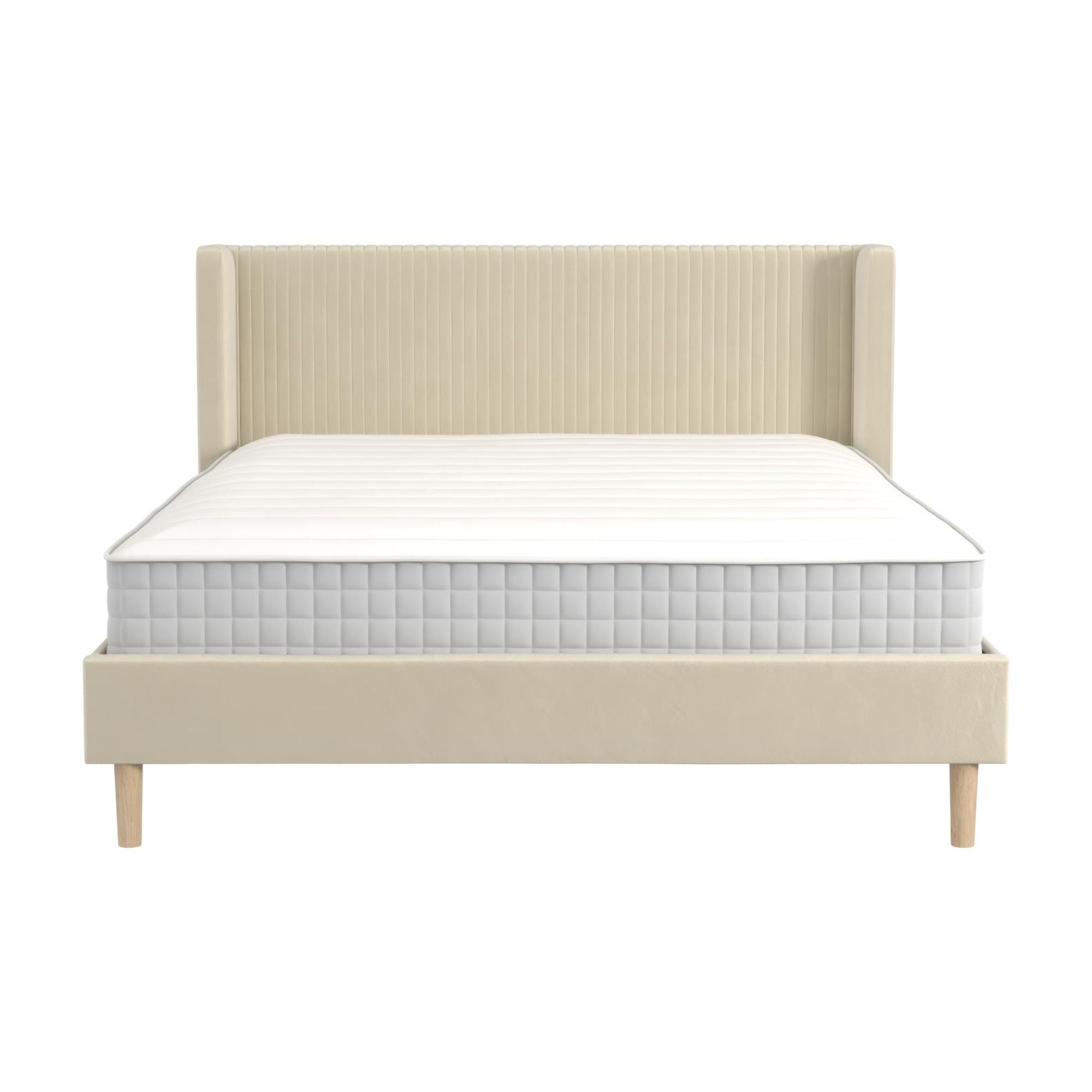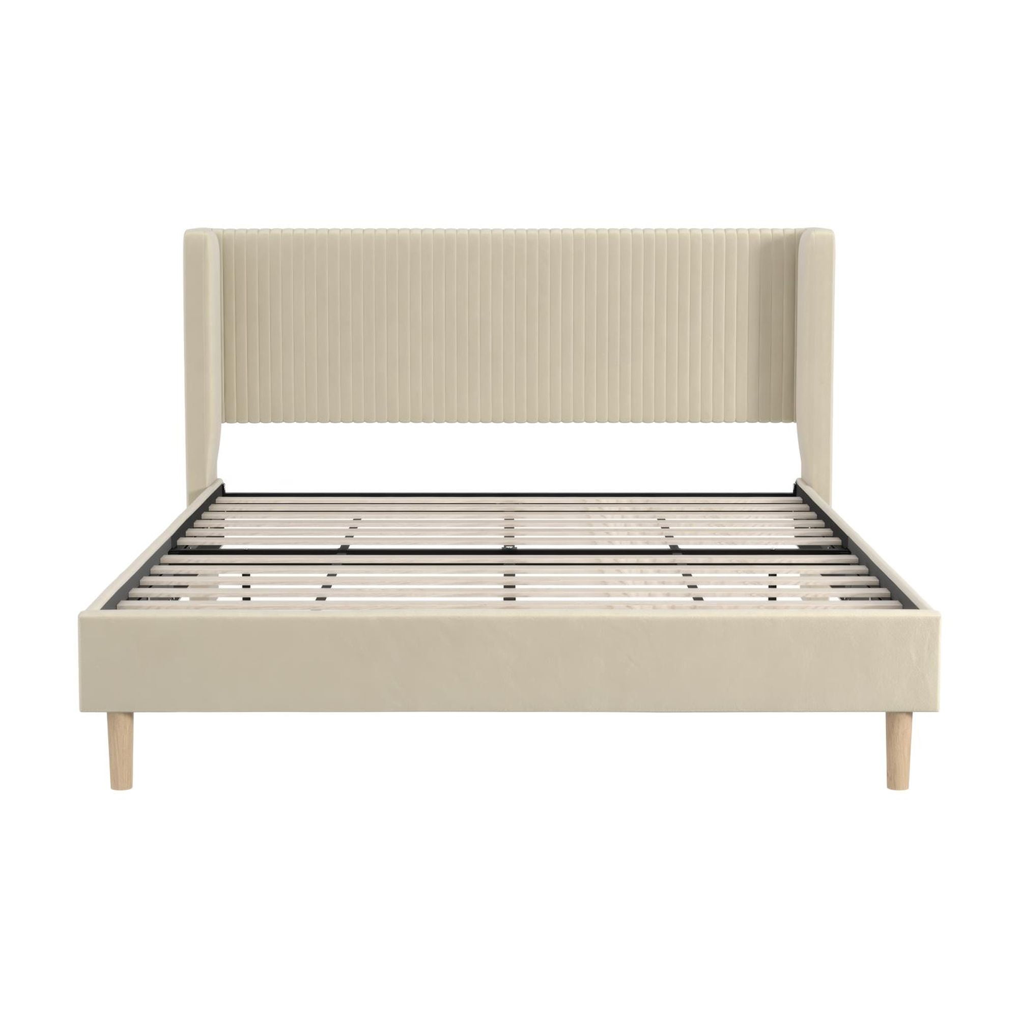Mainstays Kelsey Upholstered Platform Bed Frame with Tufted Wingback Headboard, No Box Spring Required, Queen, Cream Velvet