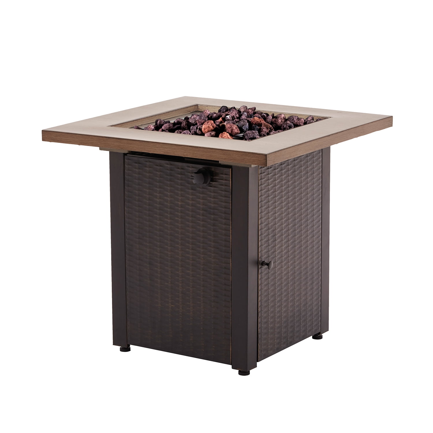 Mainstays Laurel 28″ Square 48,000 BTU Propane Gas Fire Pit Table with Lava Rocks and Metal Lid