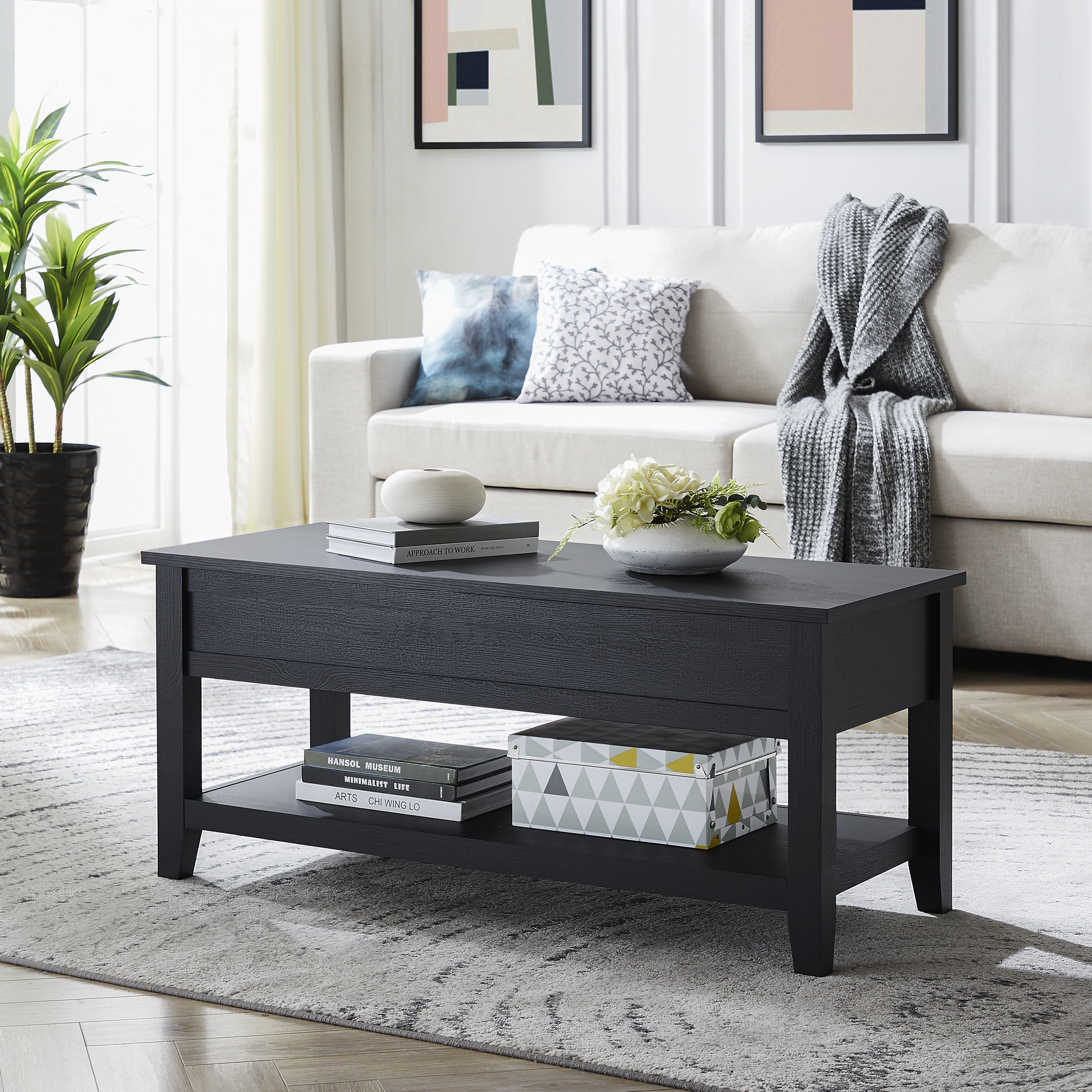Mainstays Lift Top Coffee Table with Storage Shelf, Black wood finish