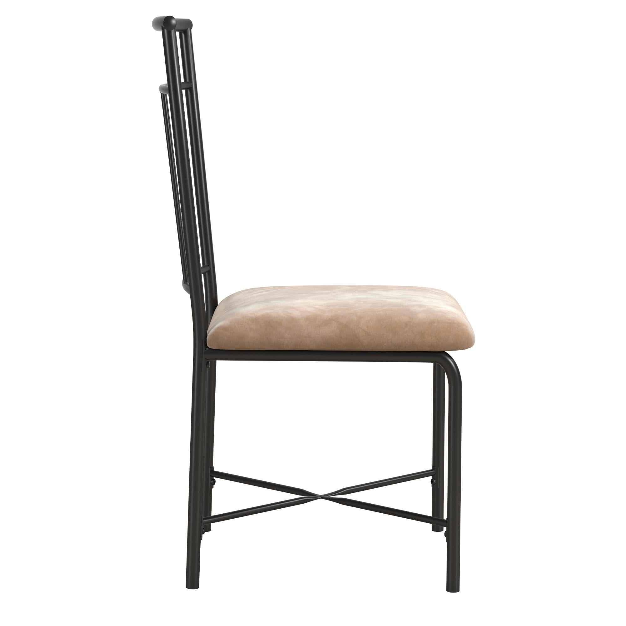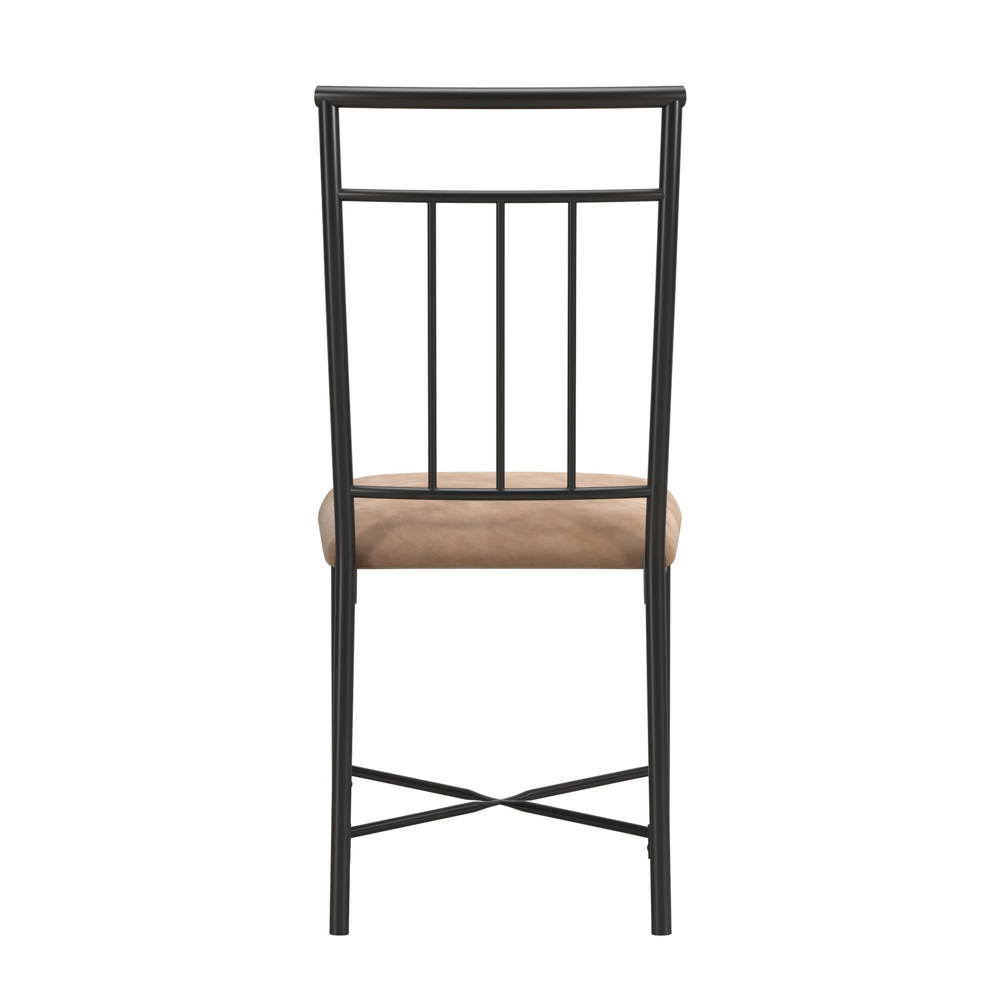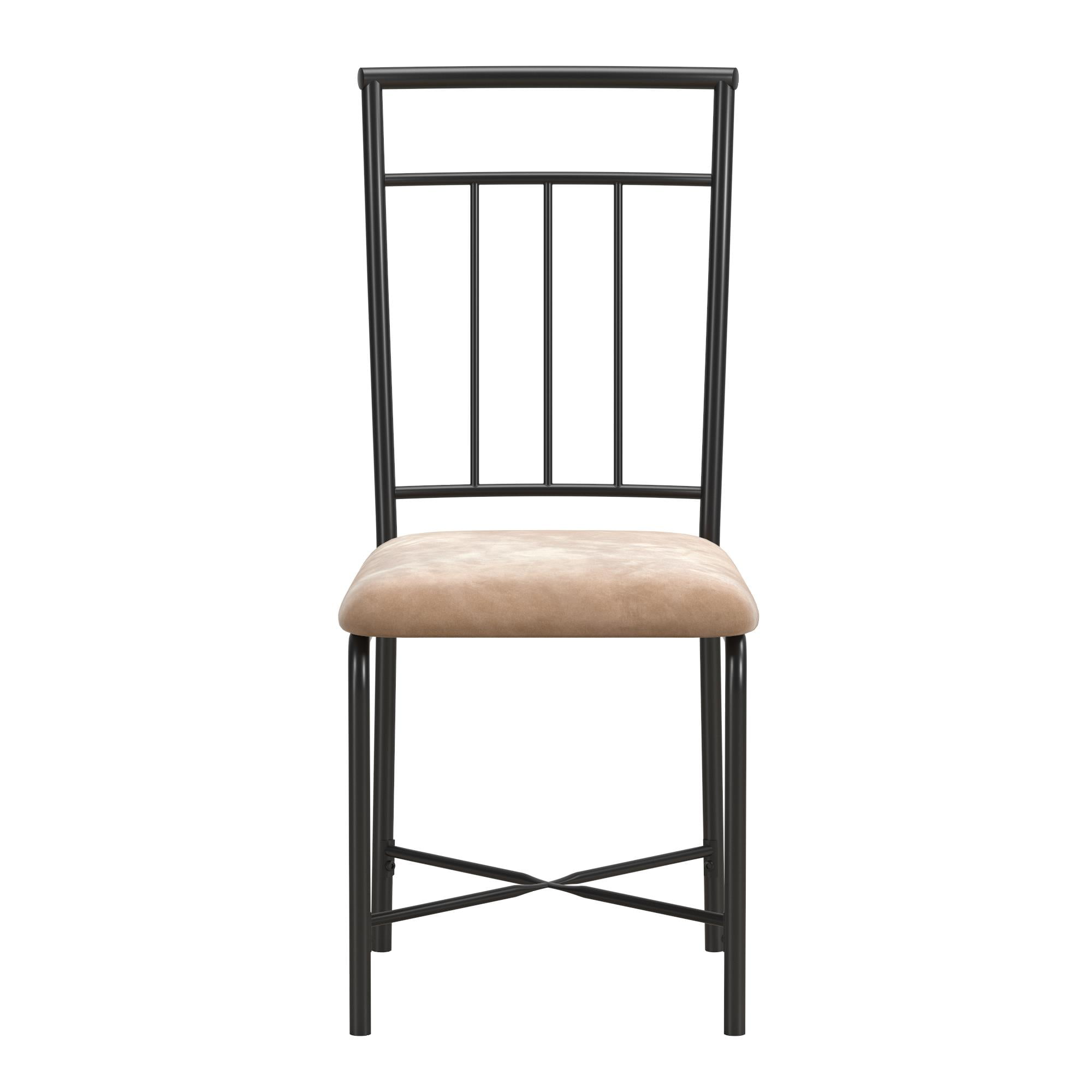 Sturdy steel table with wood top Mainstays 5-piece dining set is available in multiple colors Set includes 1 table and 4 chairs 4 chairs with upholstered seats Hardware is individually sorted to reduce assembly time for this wood and metal dining set Table is rugged enough to withstand years of use Seat height: 35.75″ Seat depth: 19.25″ Seat width: 16.75 Assembled table dimensions: 46″ W x 32″ D x 30″ H Assembled chair dimensions: 16.75 W x 19.25″ D x 35.75″ H
