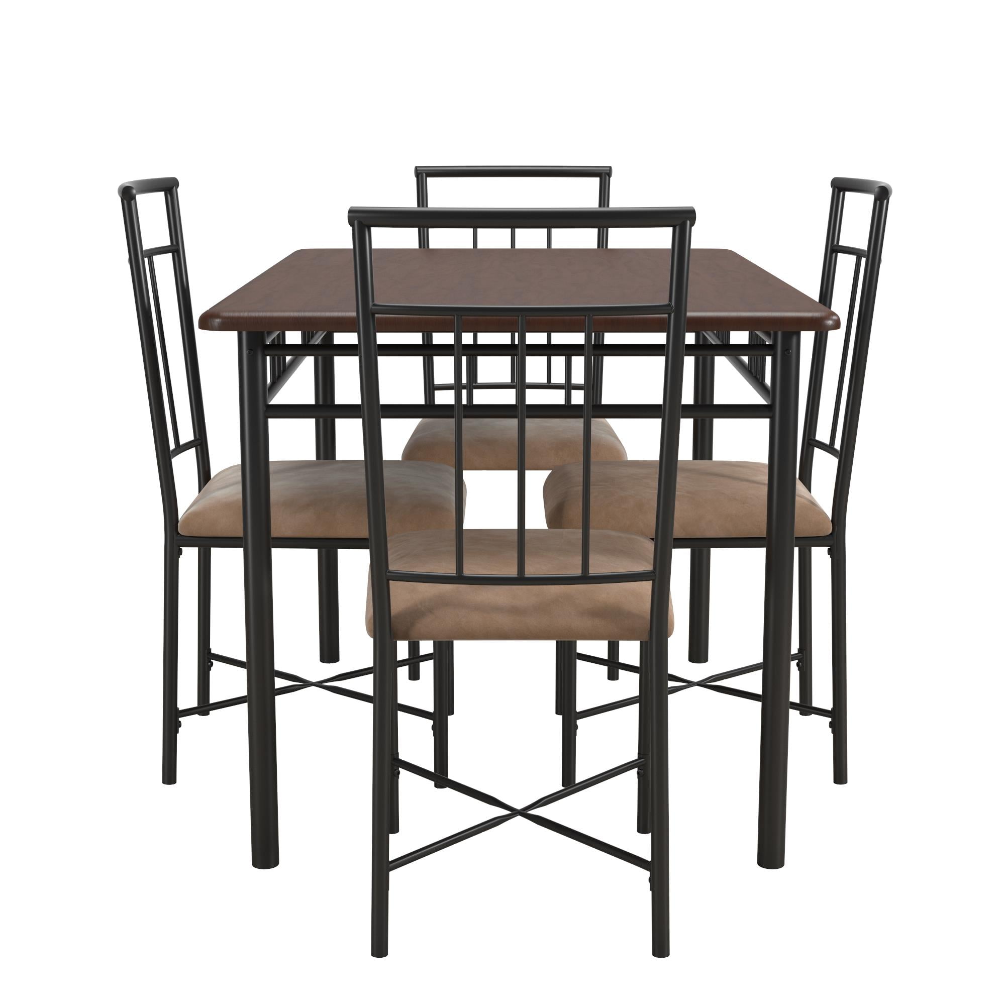 Mainstays Louise Traditional 5-Piece Wood & Metal Dining Set, Deep Walnut
