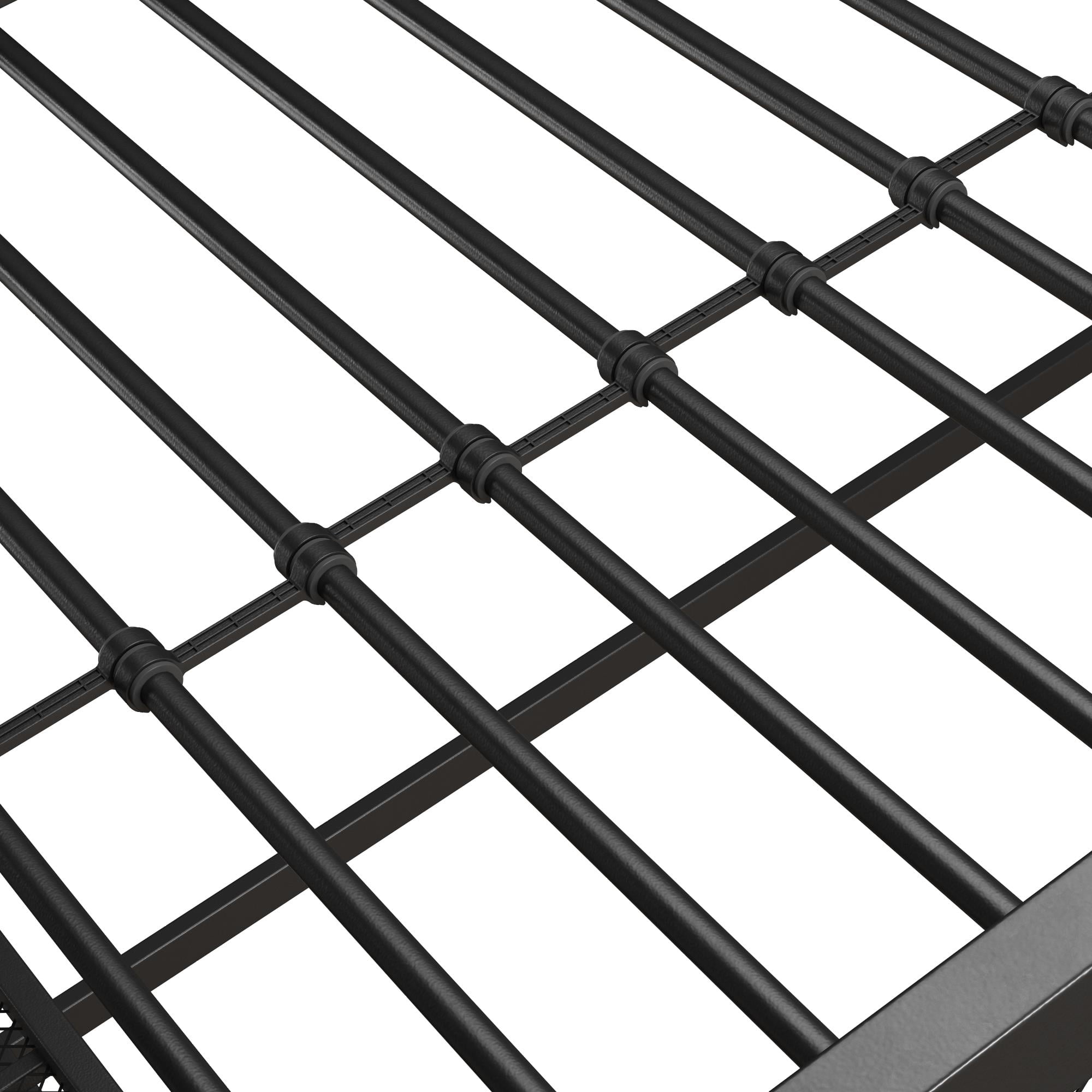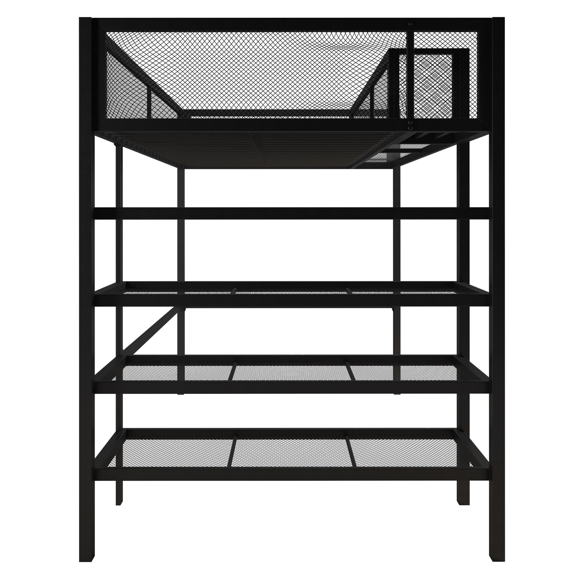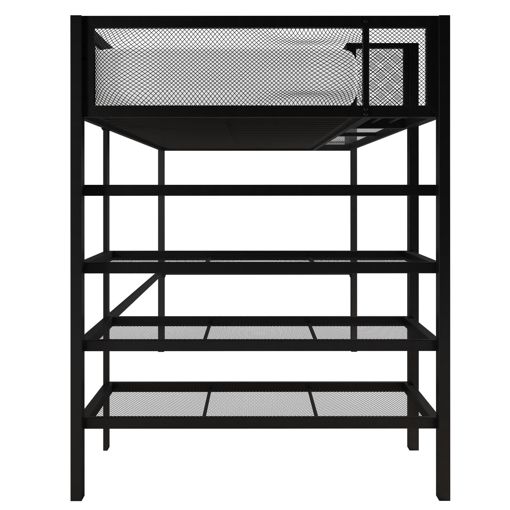Multi-functional design: it comes with 4 shelves on the side and an additional one on the top, perfect to store books and toys This bunk bed is designed shorter than an average, making it ideal for small spaces. It has an under-bed clearance of 52.5 inches Made with sturdy metal, it includes 12-inch full-length guardrails, an integrated ladder and secured metal slats. No foundation required Accommodates one standard twin size mattress of maximum height 6 inches (sold separately) Bunk bed dimensions: 77.5″L x 52″W x 66.5″H. Bed weight limit: 200 lb. Shelf weight limit: 50 lb. Carton dimensions: 78″L x 19″W x 12″H. Net weight: 112 lb. Gross weight: 143 lb.