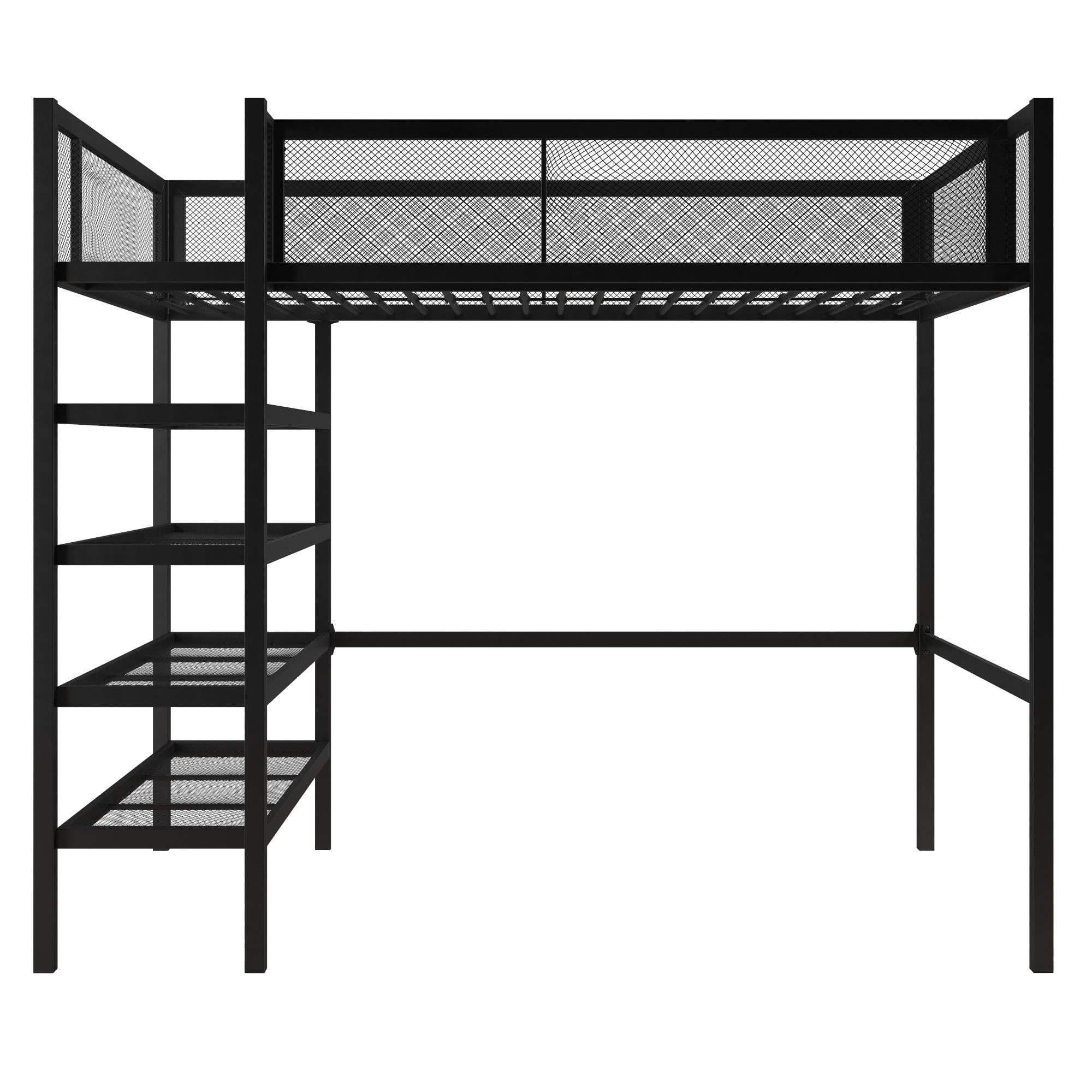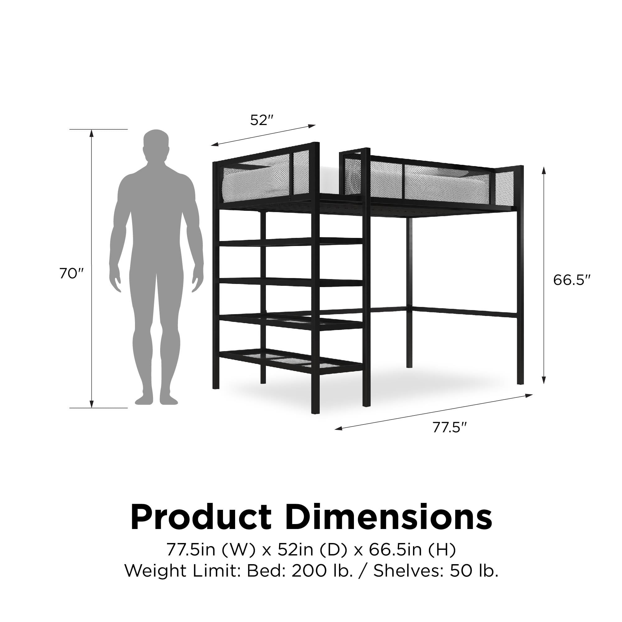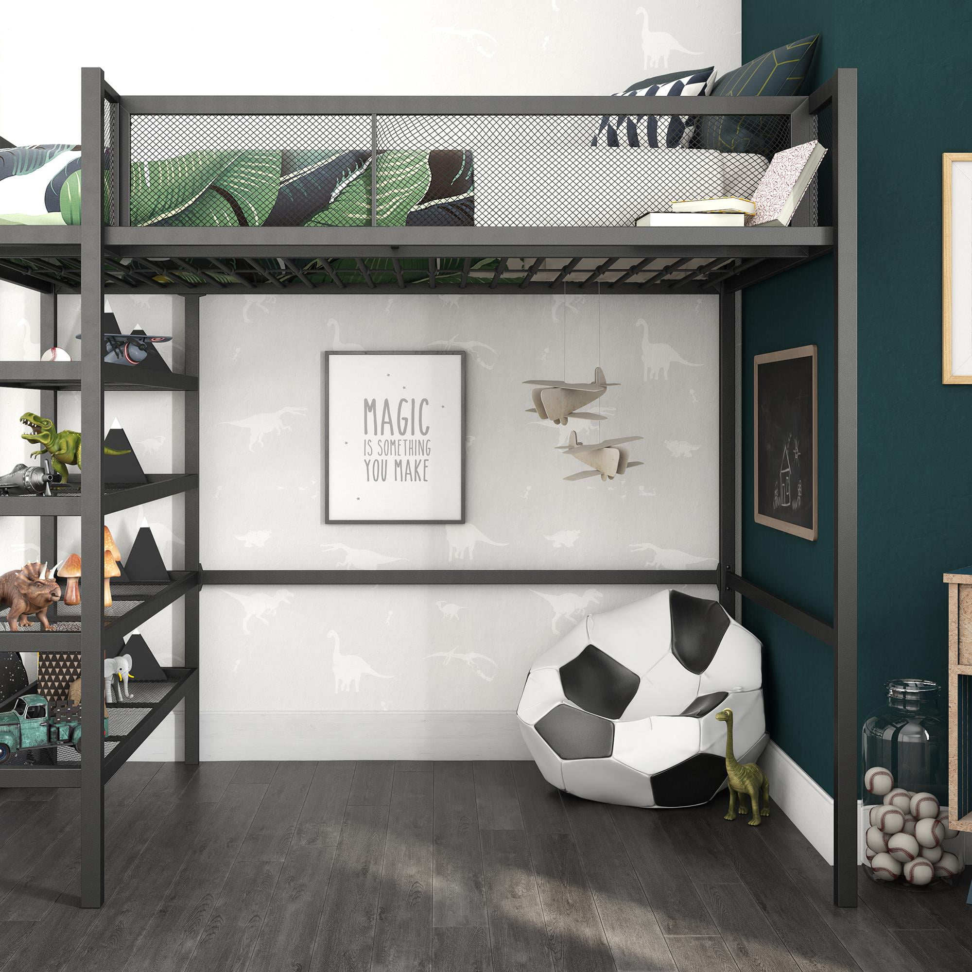Mainstays Metal Storage Loft Bed with Book Case, Black, Twin