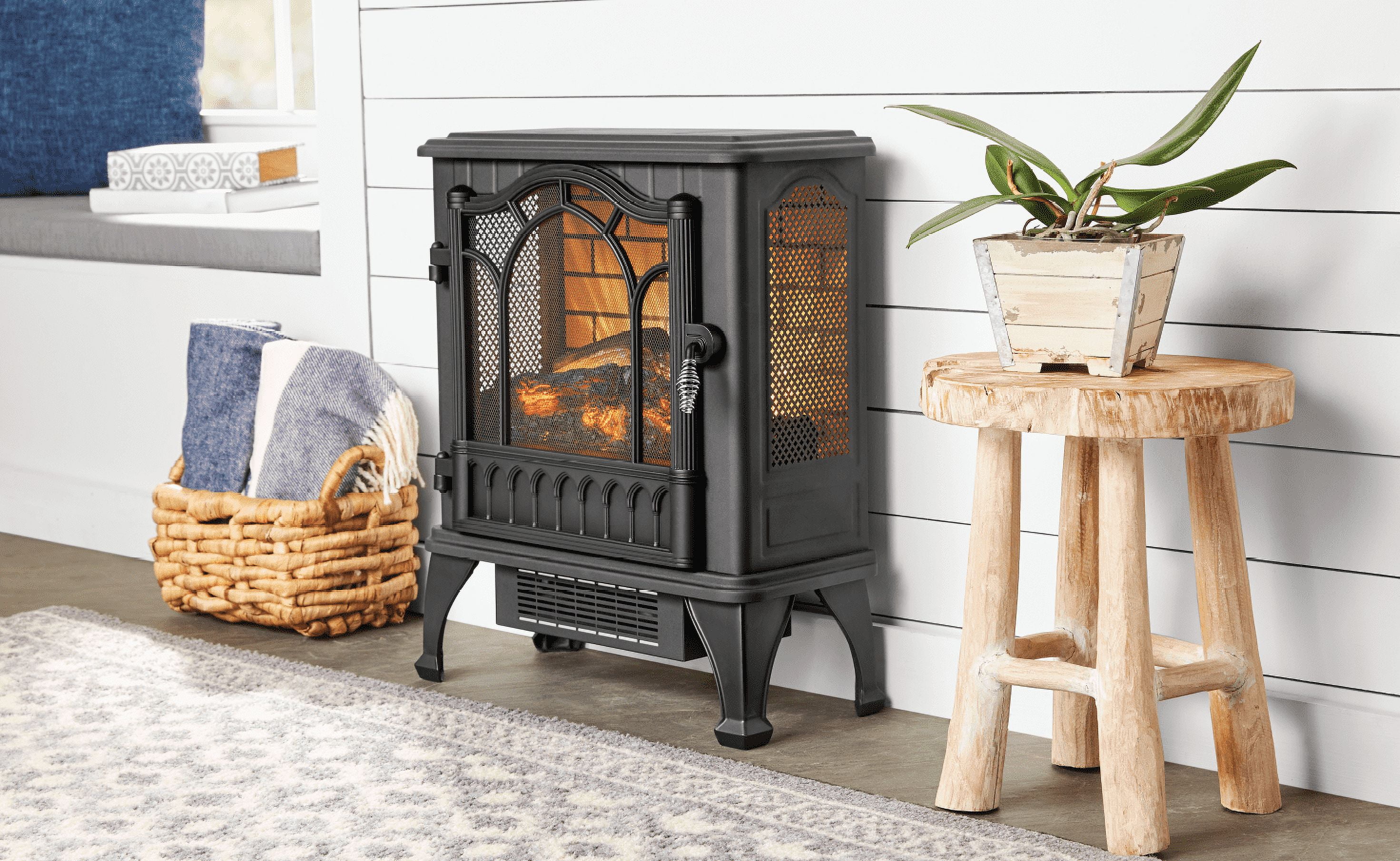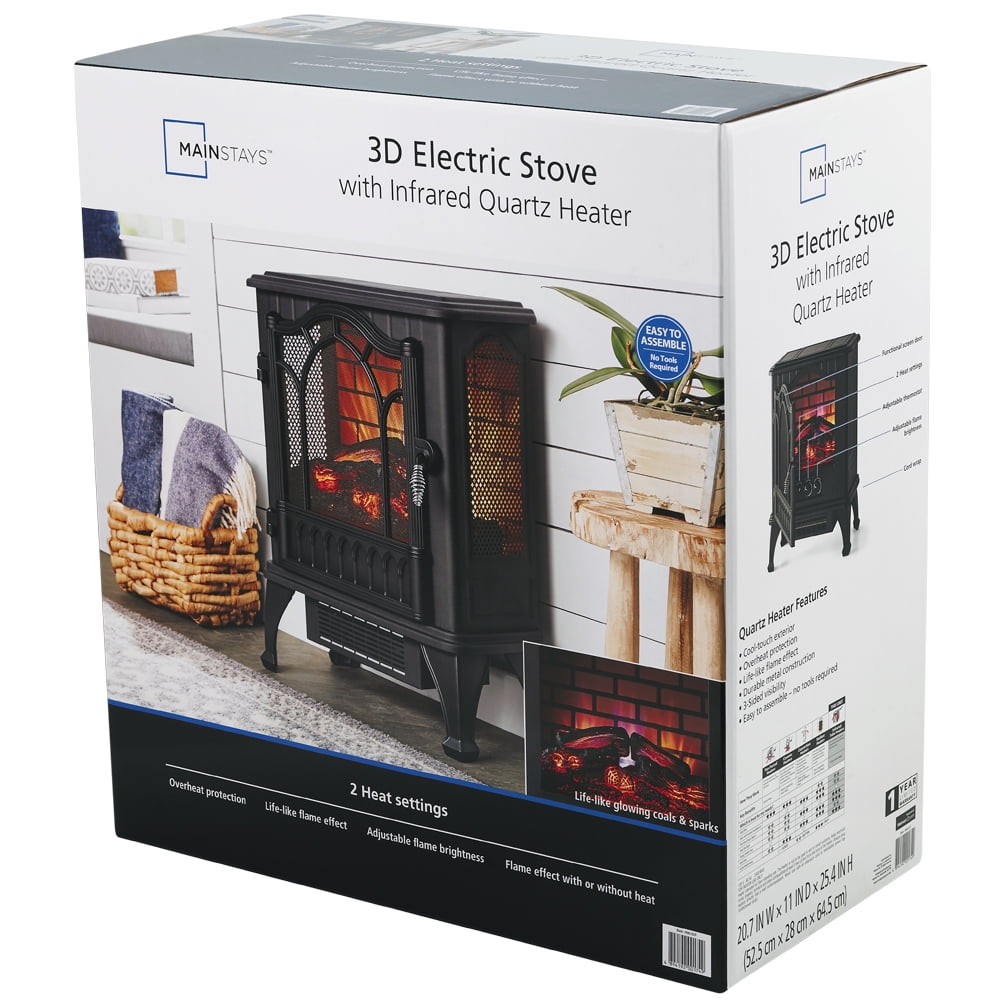 Mainstays New 2-Setting 3D Electric Stove Heater with Life-like Flame, Black
