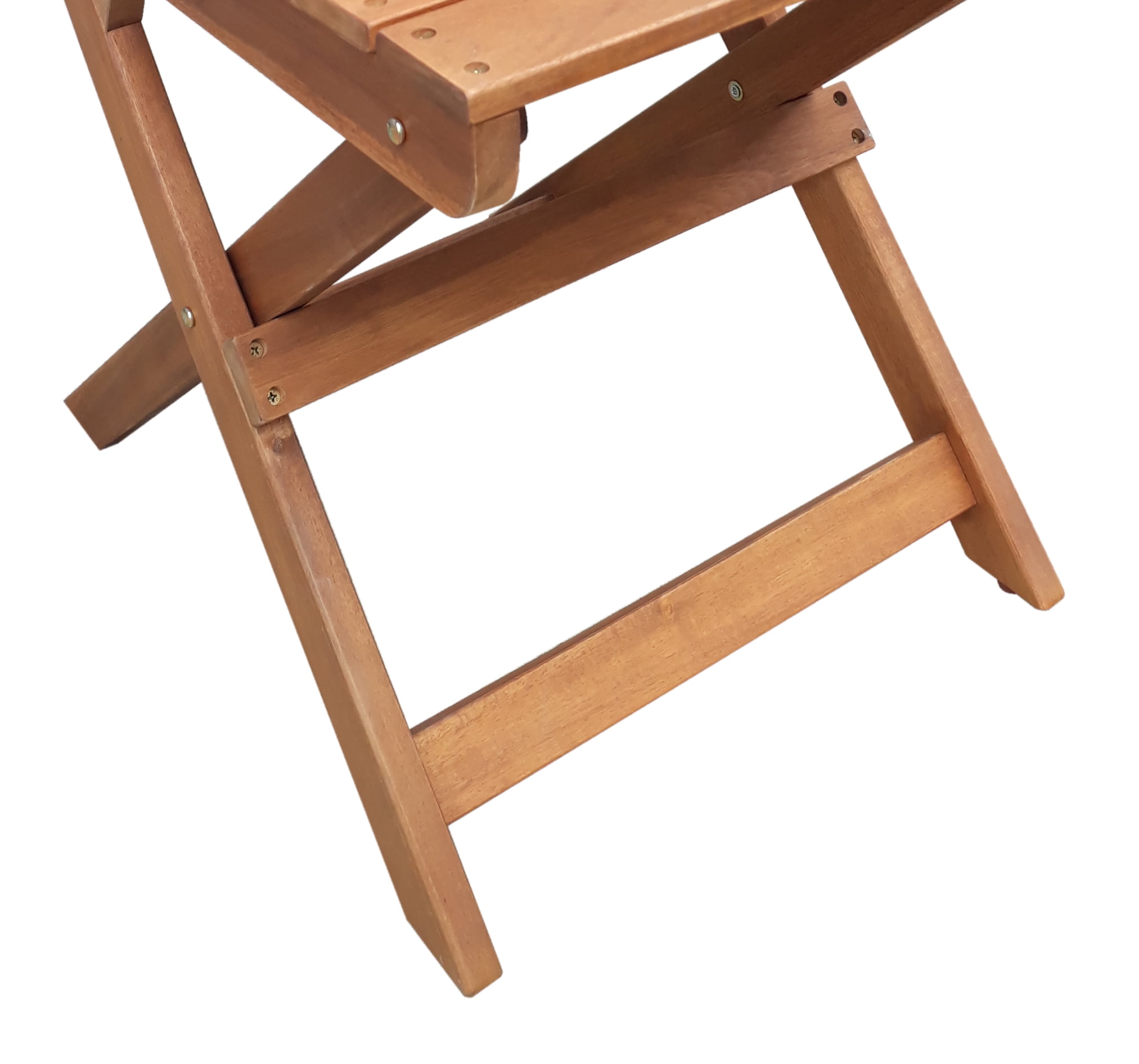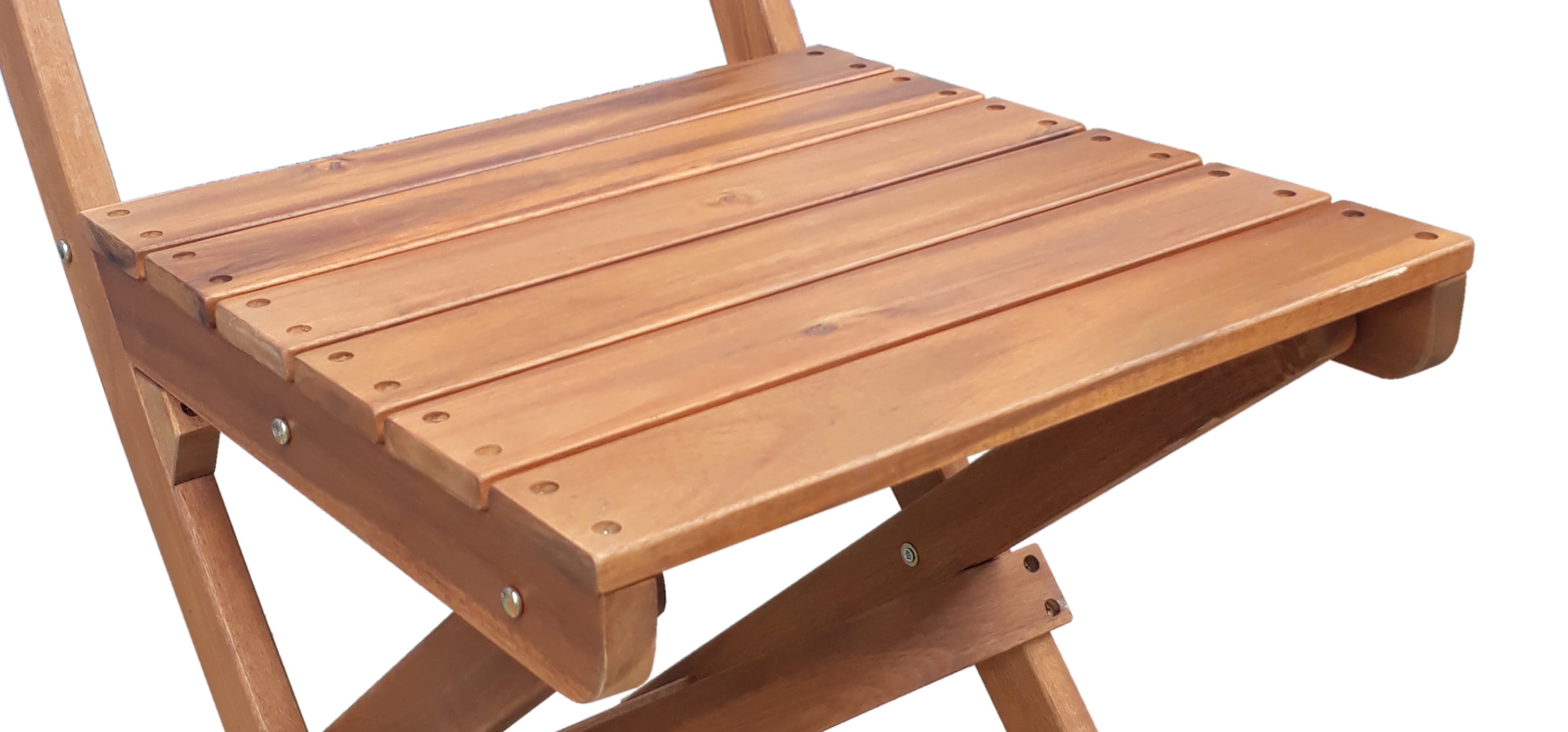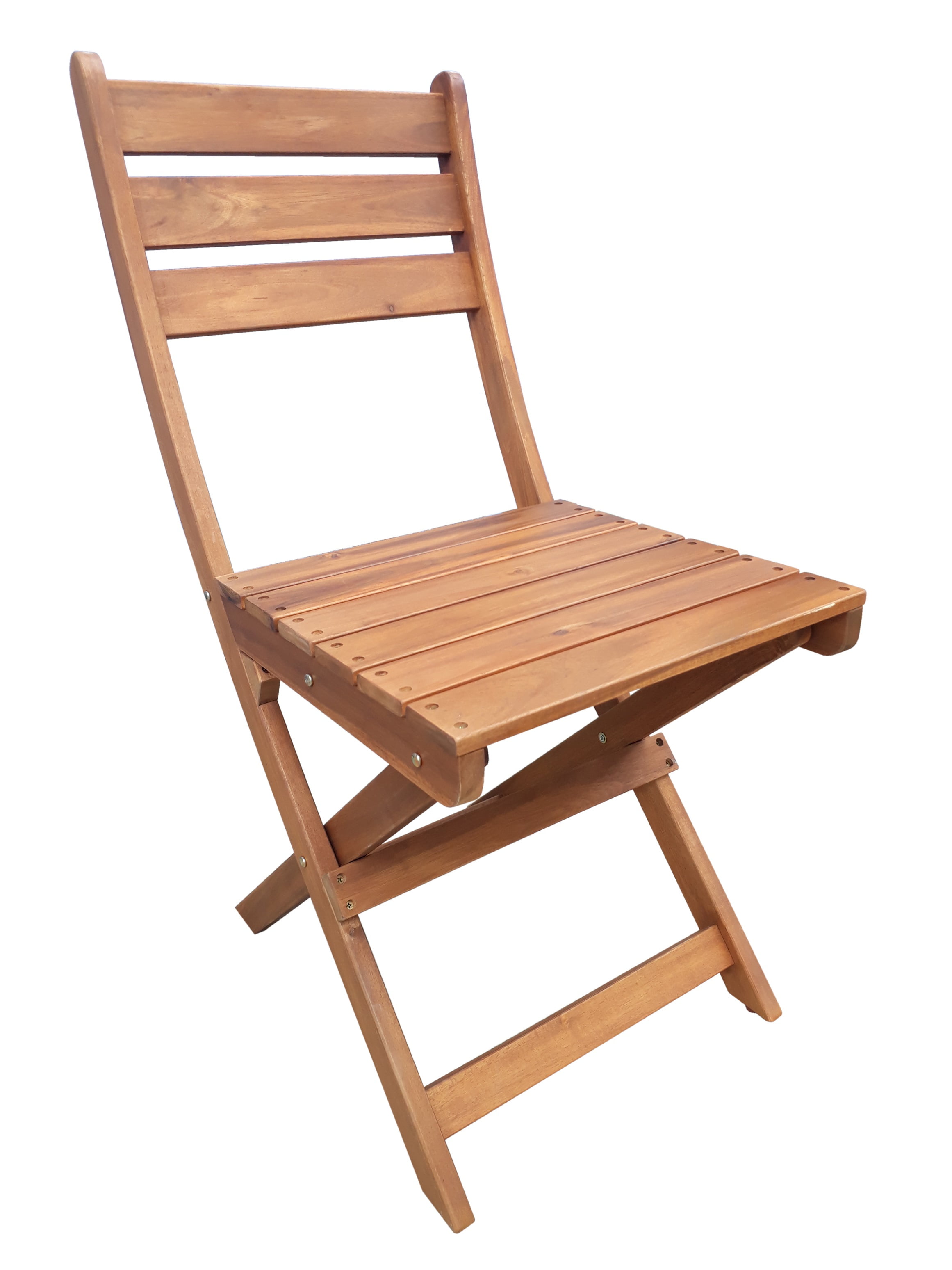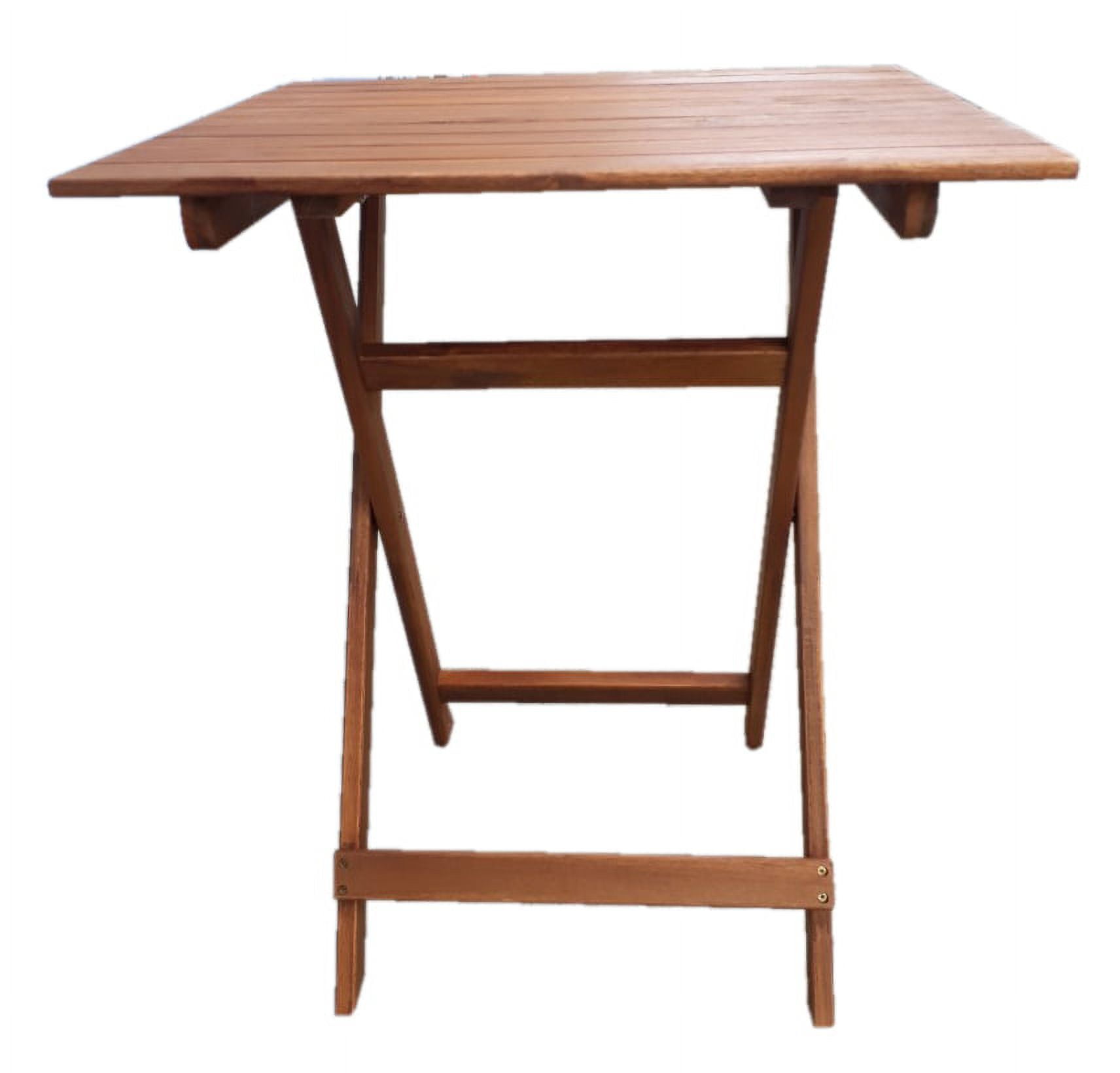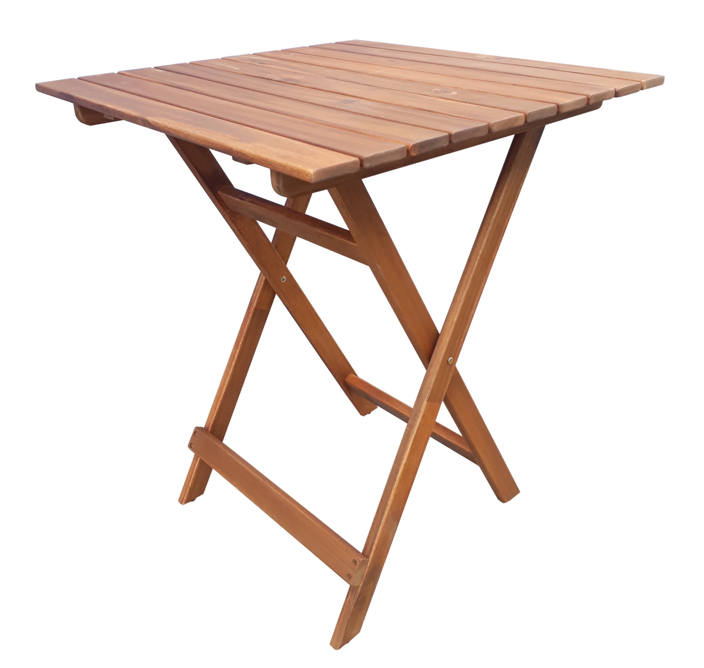 Table dimension: 24.4 in (D) x 29.1 in (H) Chair dimension: 15.1 in (W) x 22.2 in (D) x 34.25 in (H), with a 250lb-weight capacity Table and Chairs fold flat for easy storage and portability No Assembly required FSC certified solid Acacia hardwood, with weather resistant finishes Ideal for use in covered outdoor areas such as porches, patios, balconies, or indoor If used in an unprotected area, constant exposure to the elements will accelerate the weathering process Tested and in compliance with CPSC requirement for lead content 1 Year limited frame warranty