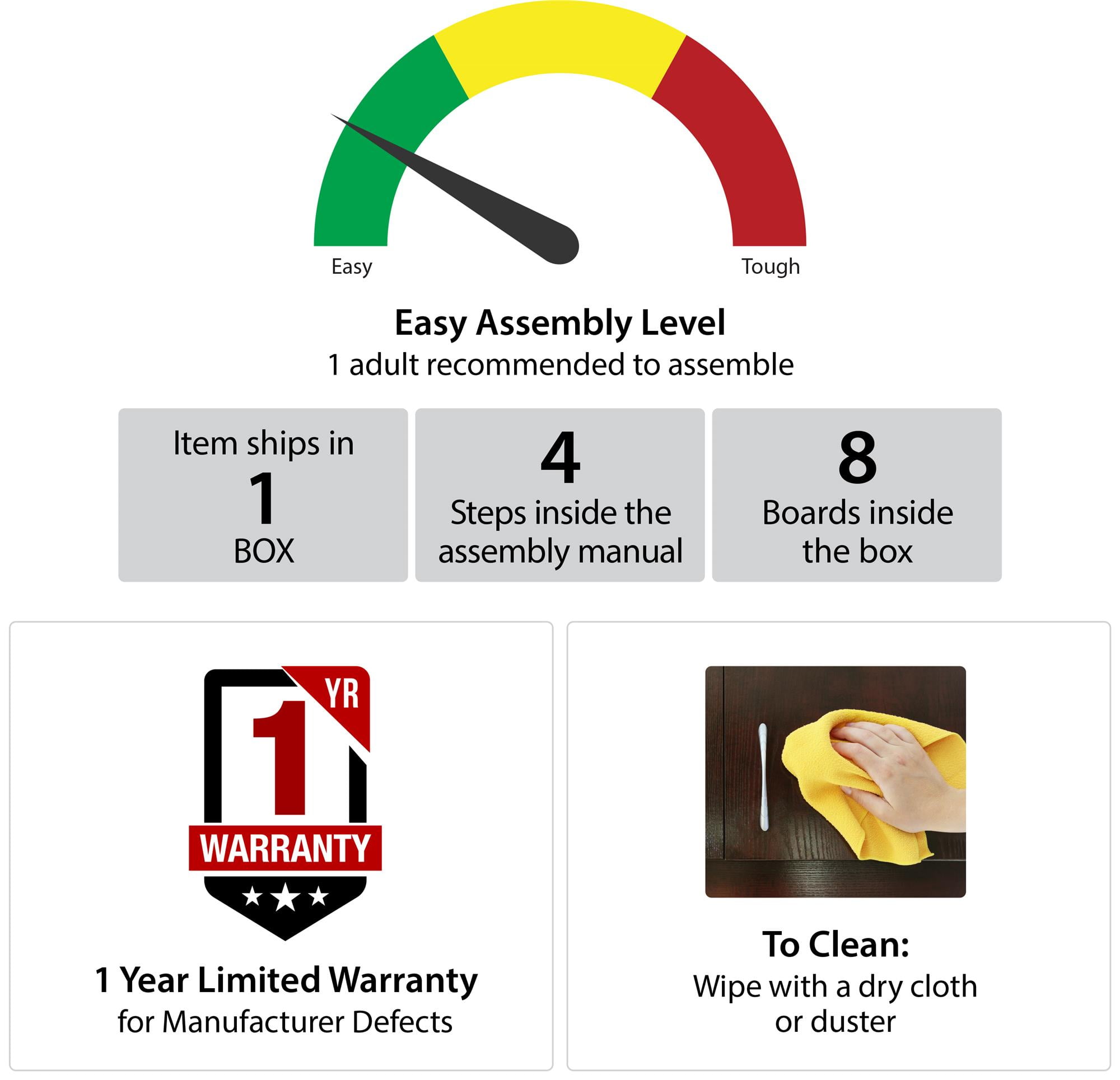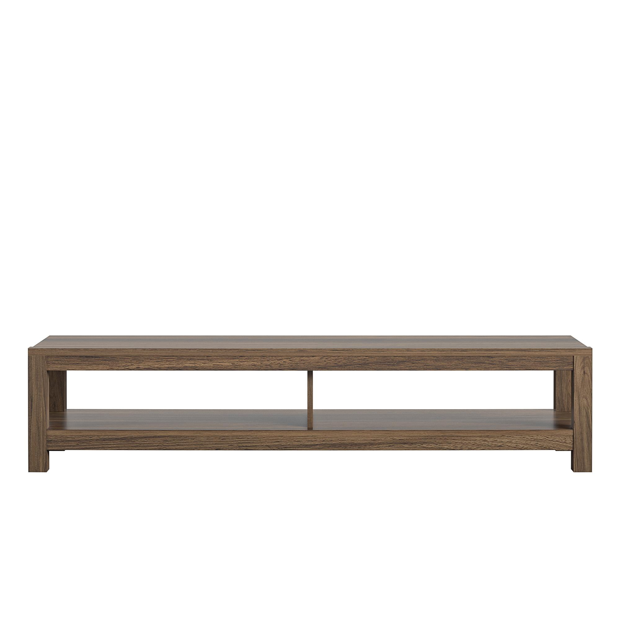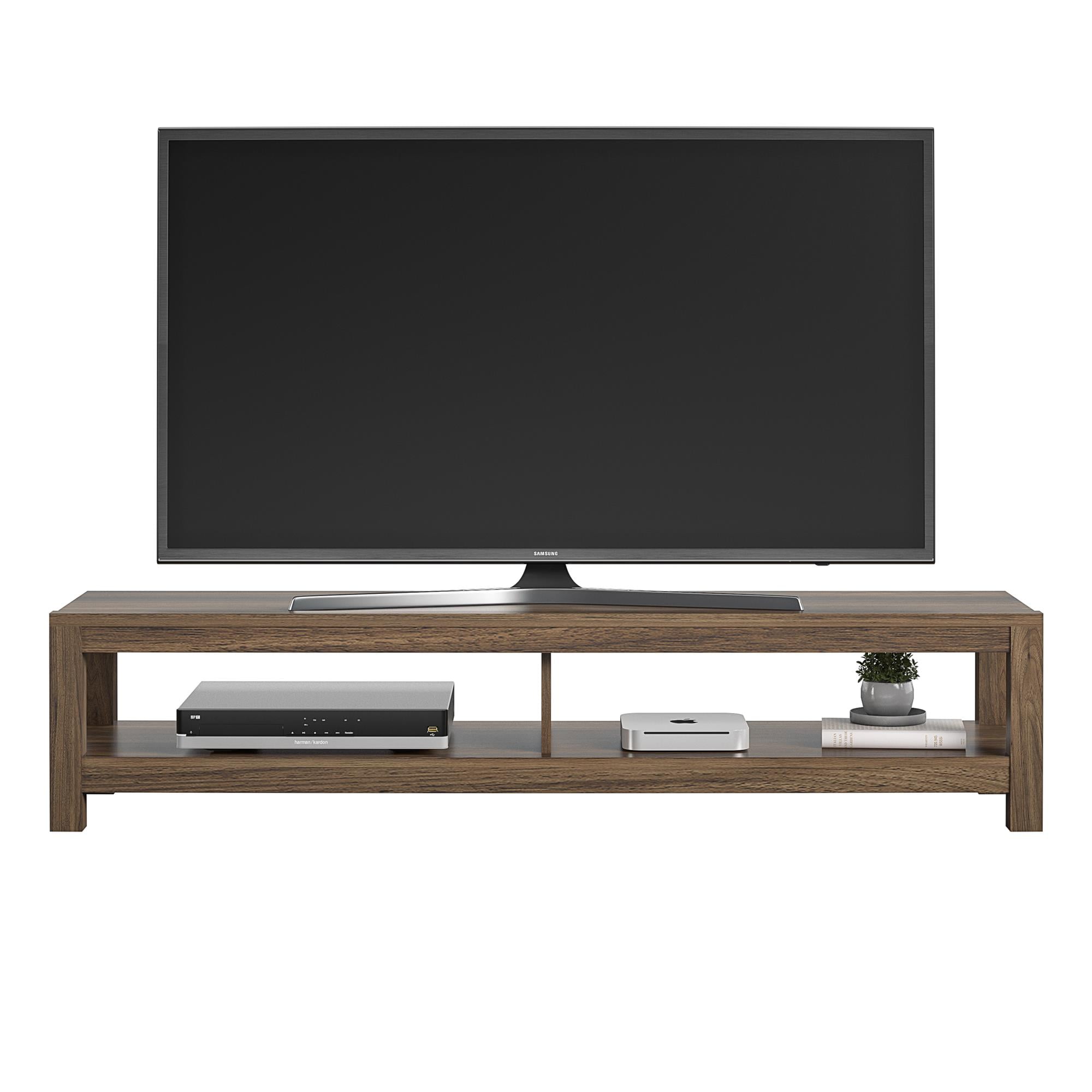 The low profile of the Mainstays Easy Assembly TV Stand is perfect for small spaces Made of laminated hollow core and particleboard, the black oak woodgrain finish pairs with any style and decor Large open shelf can organize all of your video components such as a DVD player, cable box, and audio equipment. The open concept allows proper air flow and gives easy access to outlets Coordinate your space with other items from Mainstays (each sold separately) The TV Stand ships flat to your door and 2 adults are recommended to assemble. The Stand can hold a TV up to 65″ wide or 120 lbs. The lower shelf can hold up to 40 lbs. Assembled dimensions: 12.4″H x 60″W x 15.8″D