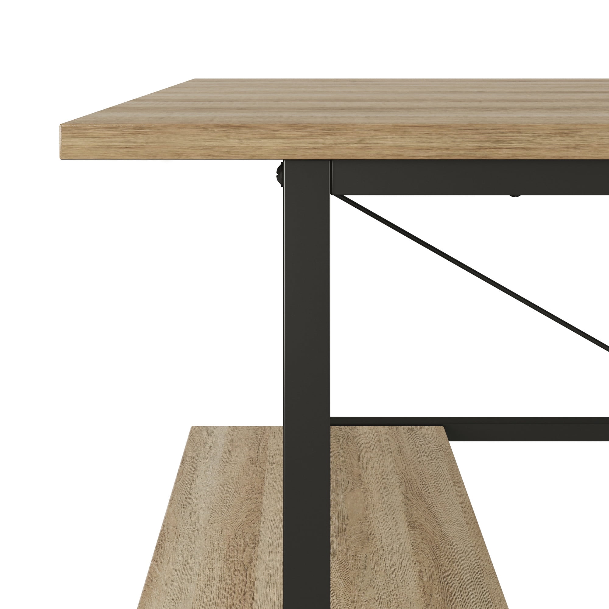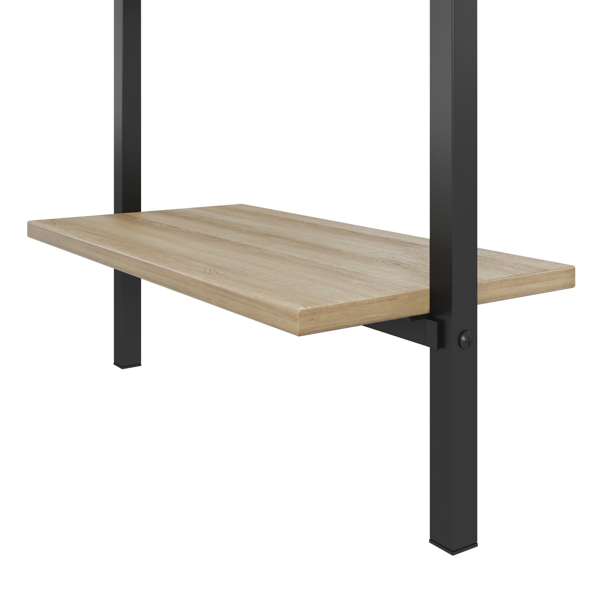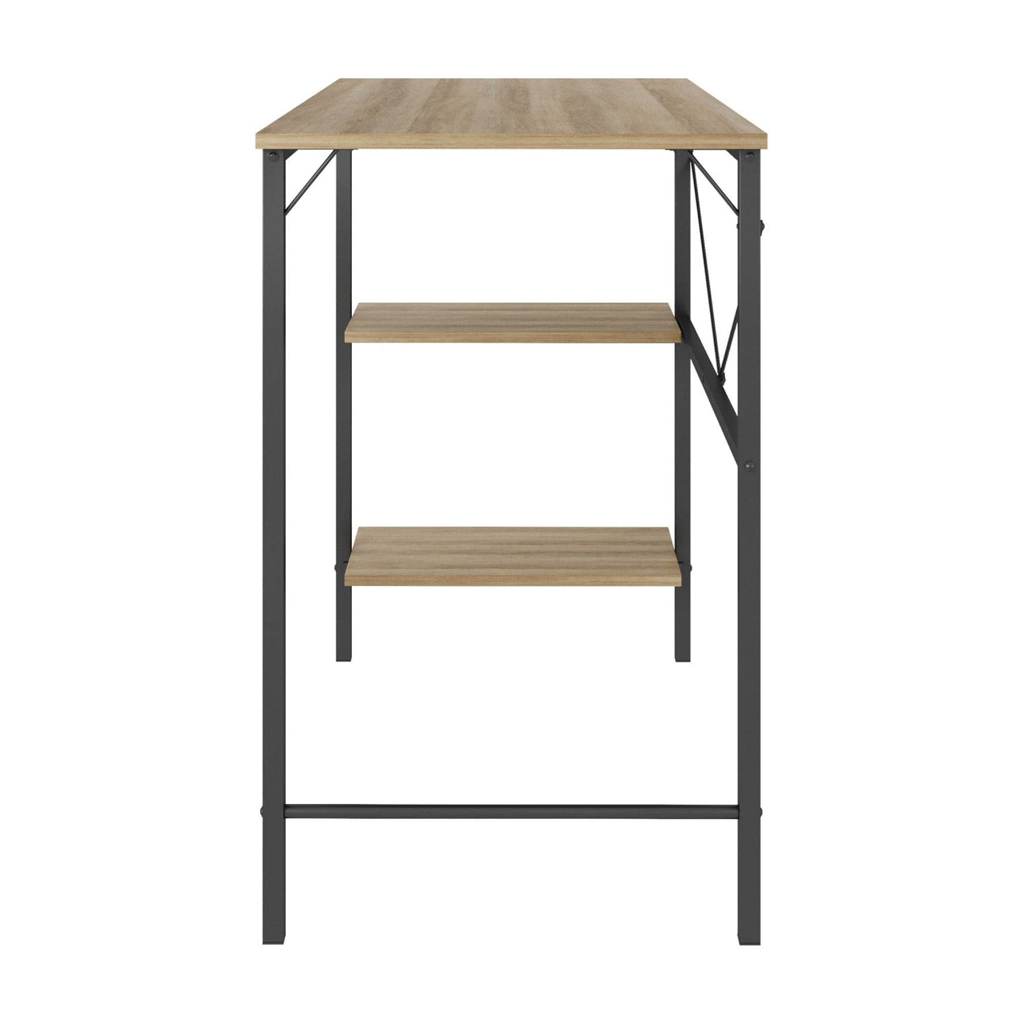 Everyone deserves a personal place that’s all their own. Carve out yours with the Mainstays Pierce storage desk. With its slim profile and narrow desktop, the Pierce will fit just about anywhere. This adult desk is versatile enough to be your home base while you work from home, pay bills, or indulge in your new artistic hobby. It would be equally at home in your student’s bedroom or anywhere else you or a loved one need to focus. With two underlying side shelves, you can store anything you may need while maximizing space. The wooden desktop and shelving units feature a natural wood grain finish, while the sturdy metal base is finished in black. Assembly required, assembled product weight is 35.98 lbs.