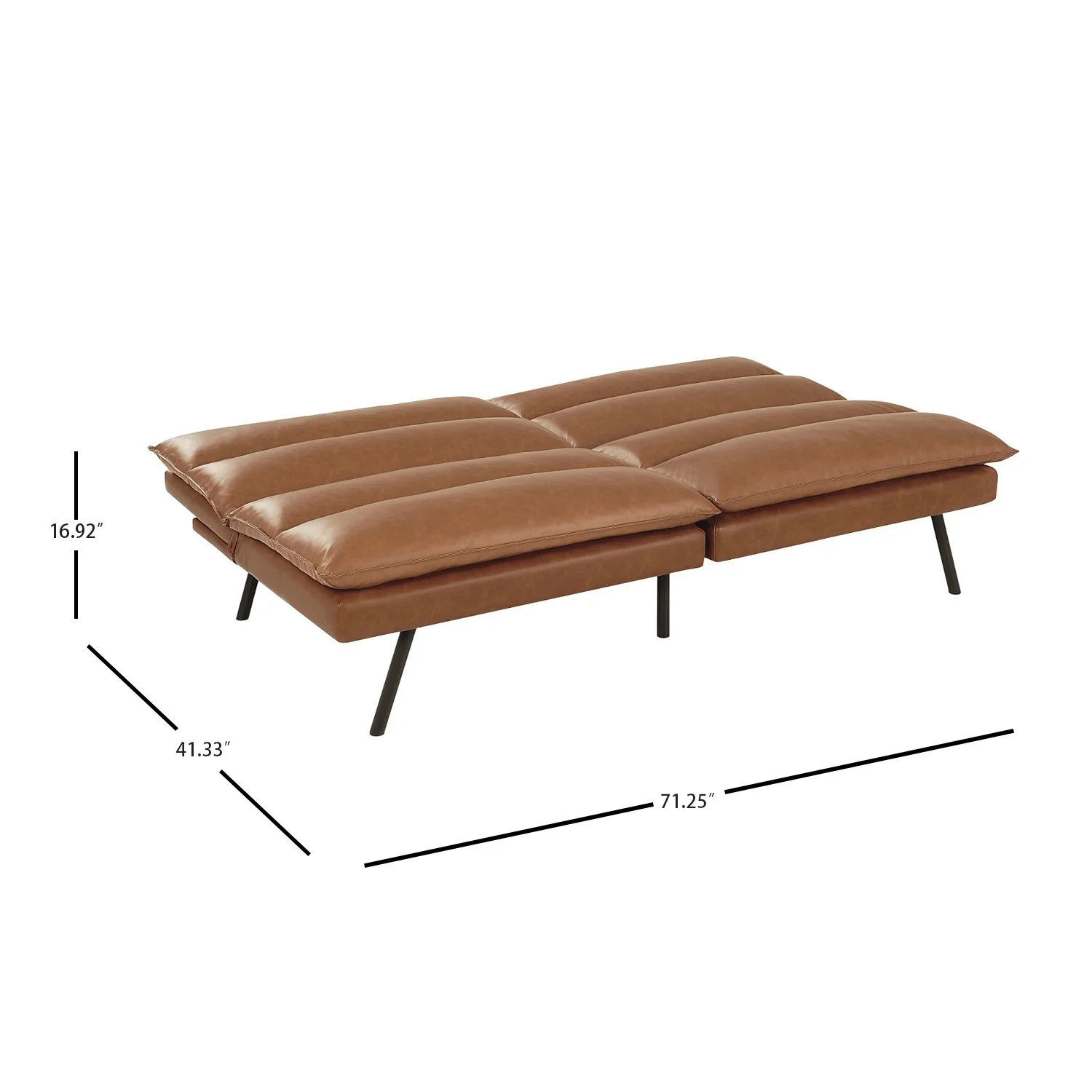 Mainstays Pillow Top 71.25″ Futon, Camel Faux Leather