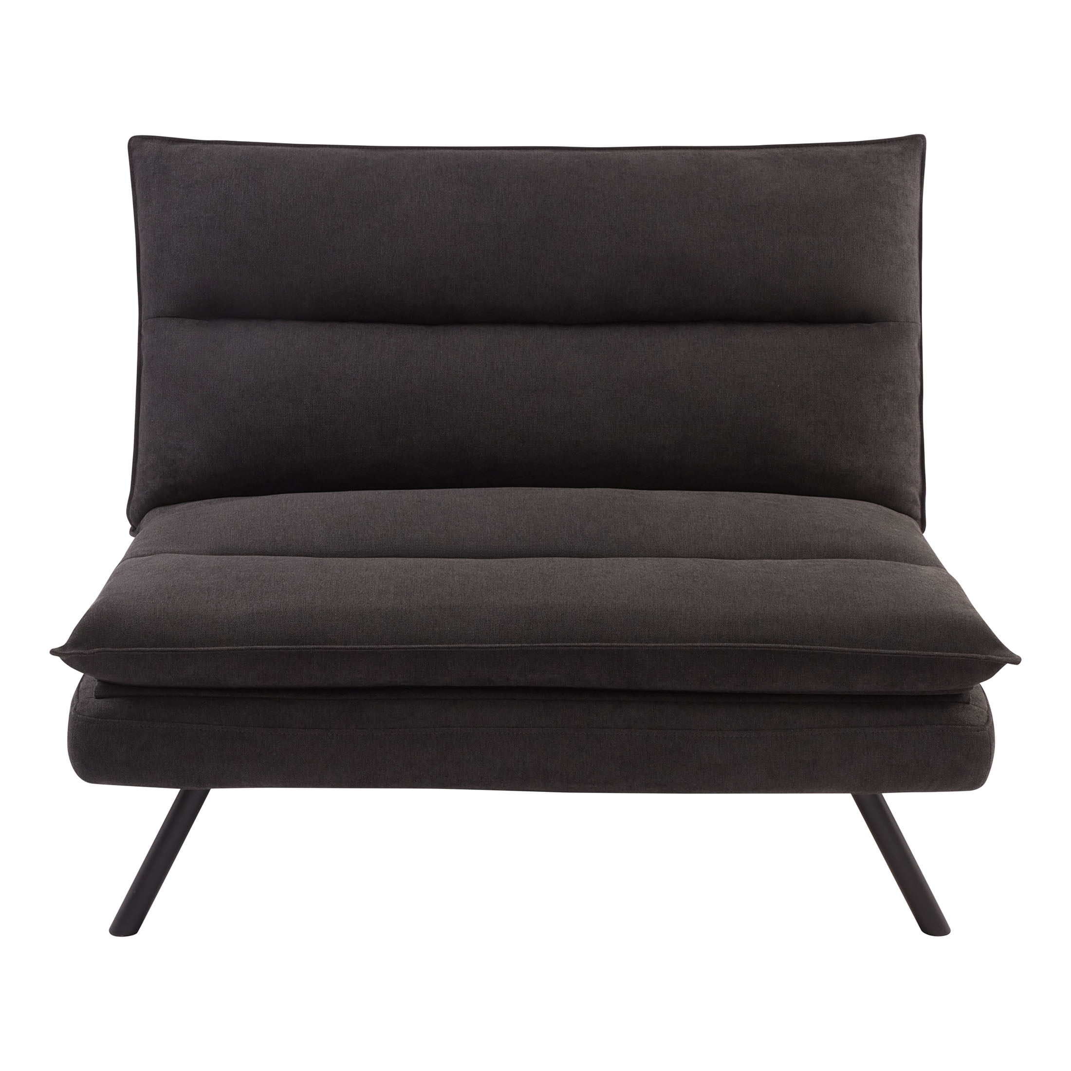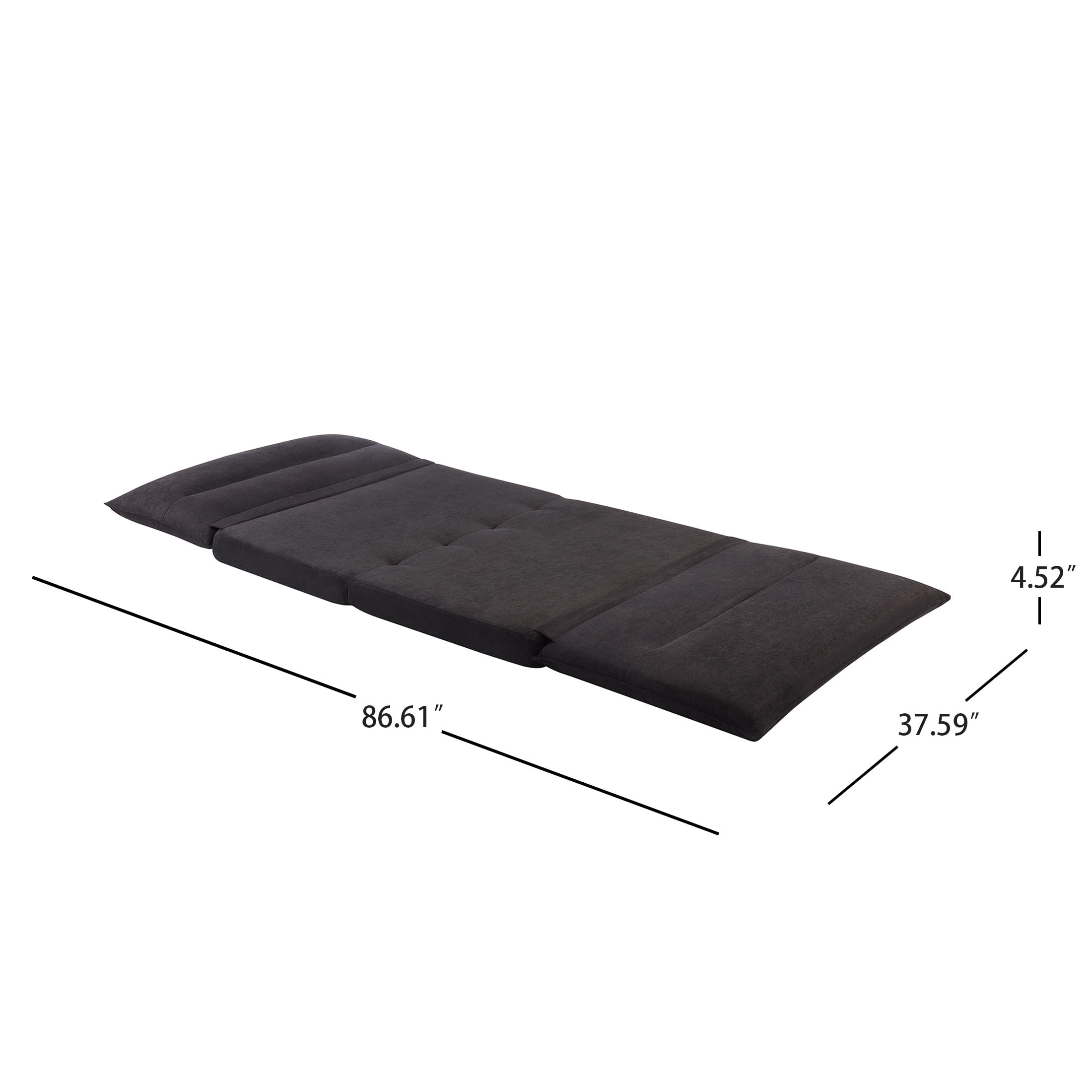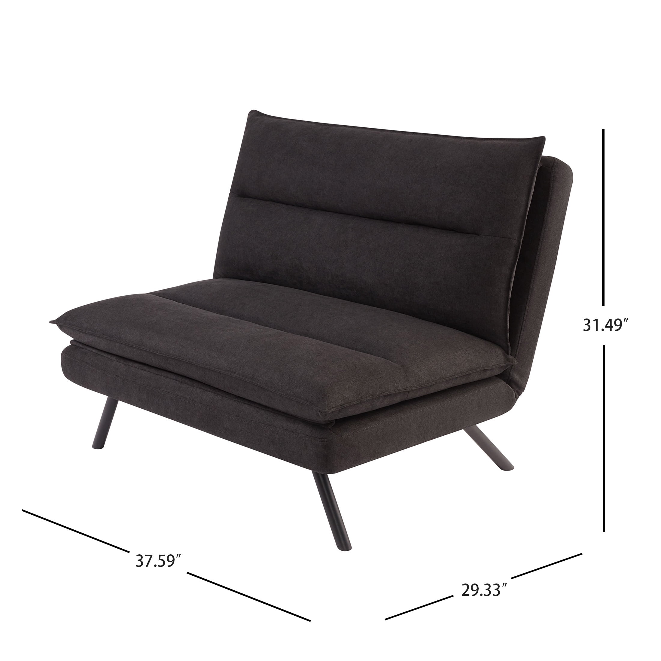 Soft polyester fabric and memory foam provide comfort Fabric: 100% polyester Finish: Charcoal Do not need to install Supporting capacity: 260 LBS Easy to Carry and Perfect for Limited Space Adjustable backrest angles to satisfy your different needs Hidden metal legs for convenient usage Sofa: 37.59in W x 29.33n D x 31.49in H Can be used as a chair, a recliner lounger or a single bed As bed:37.59in W x 45.86in D x 4.52in H Age group: Adult