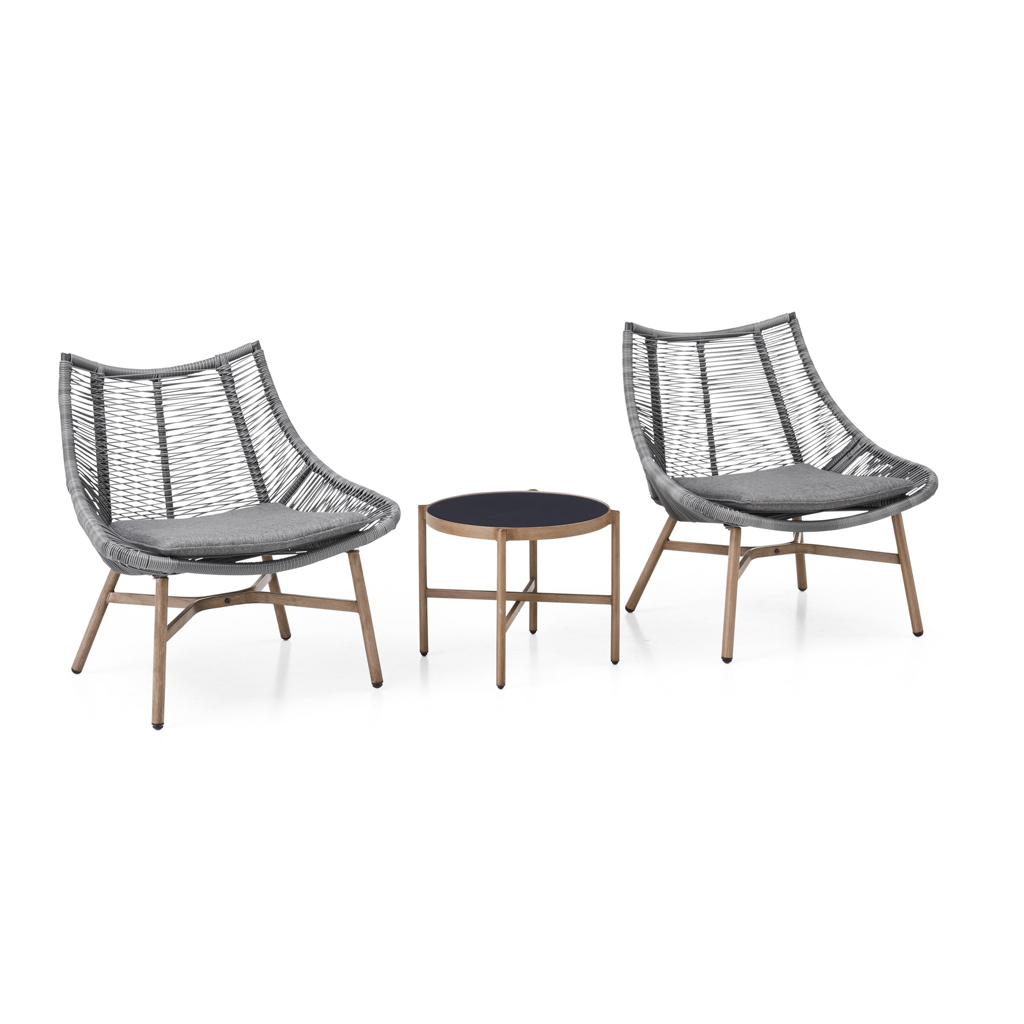 Mainstays Skyler Steel 3-Piece Wicker Rope Chat Set, Grey