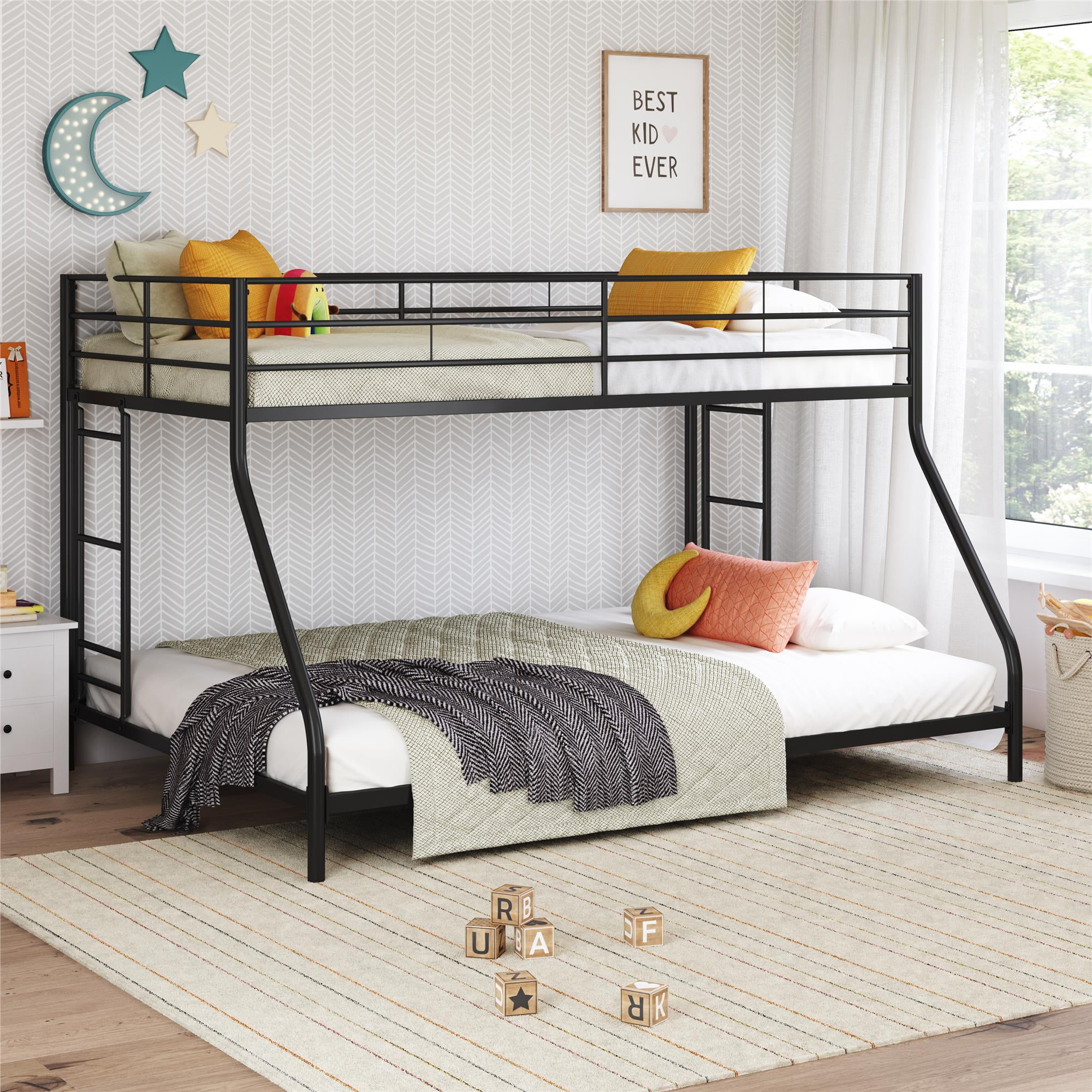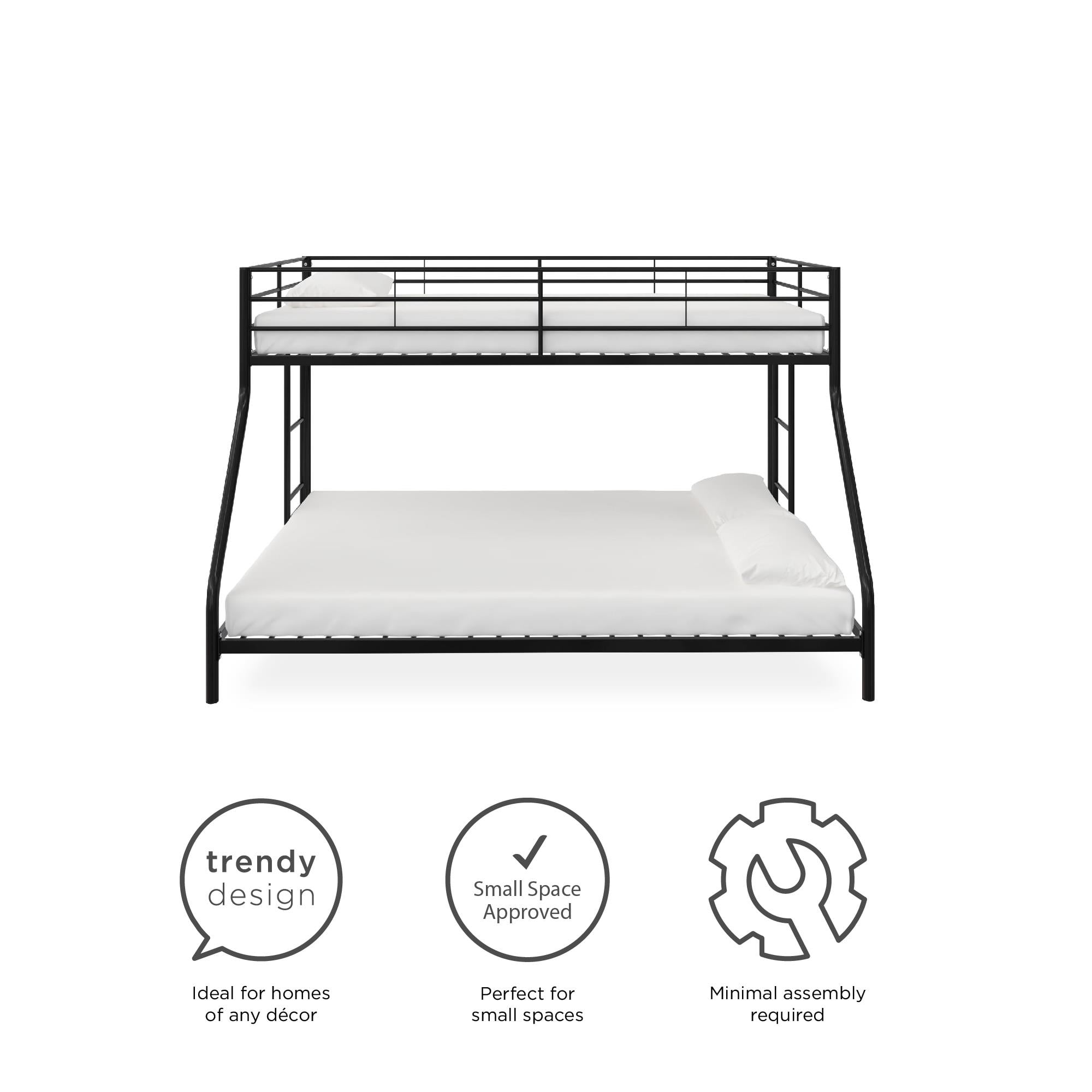 Mainstays Small Space Junior Twin over Full Low Profile Metal Bunk Bed, Black