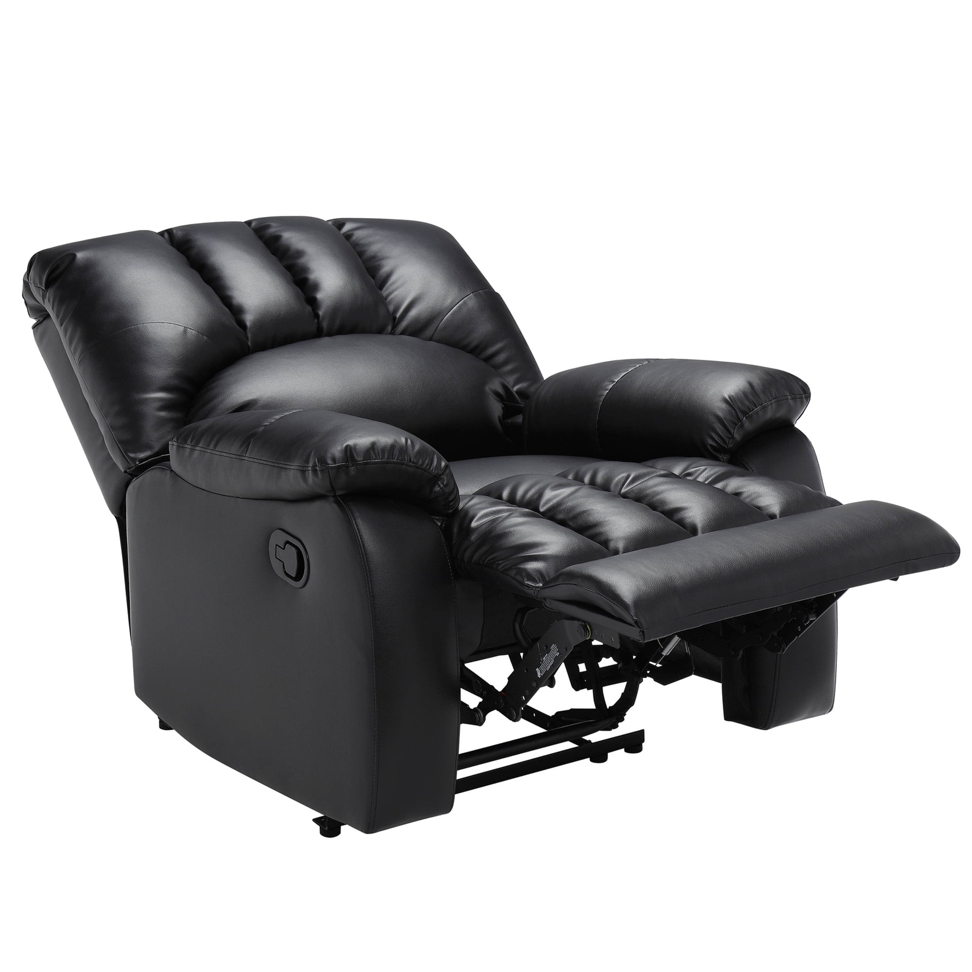 Mainstays Small Space Recliner with Pocketed Comfort Coils, Black Faux Leather