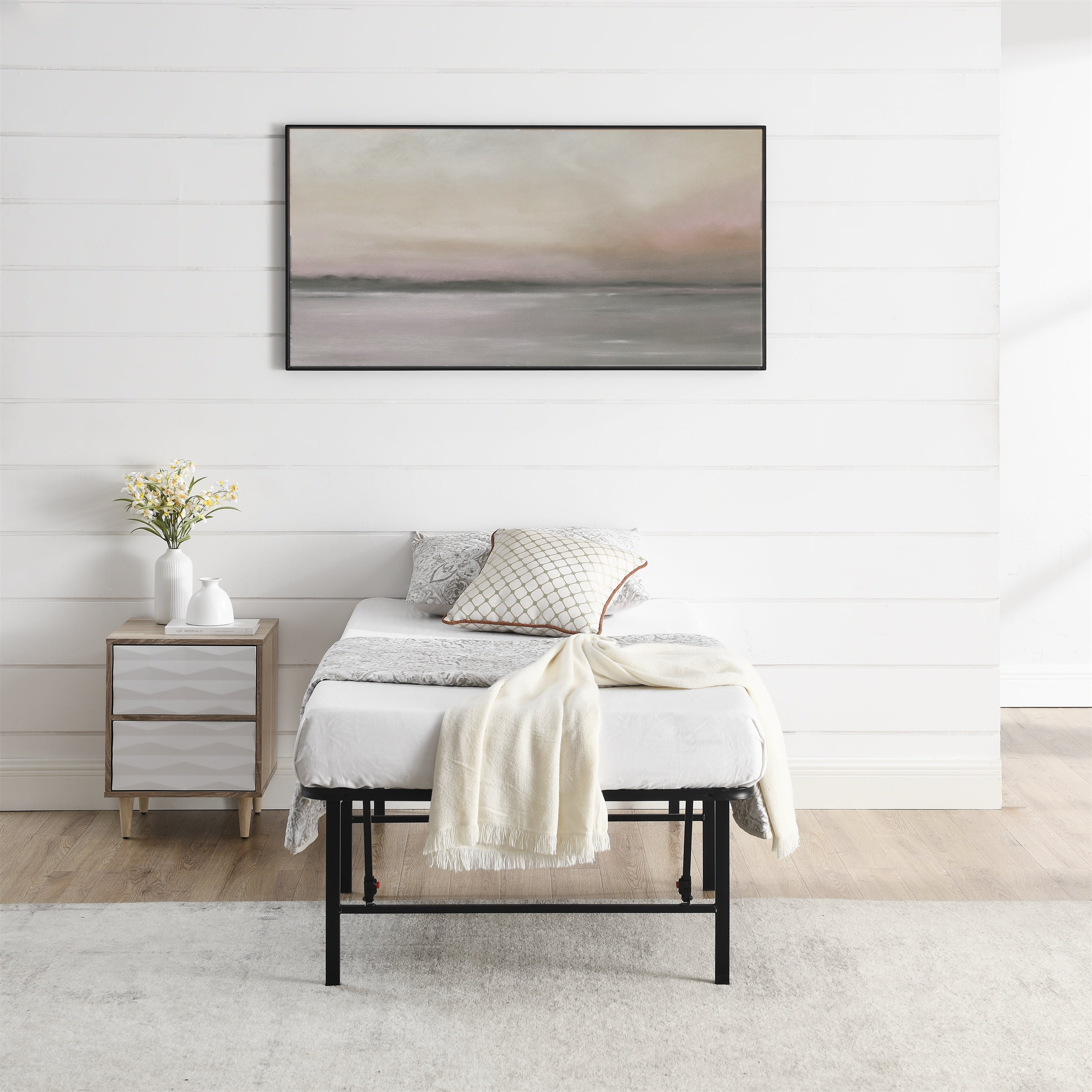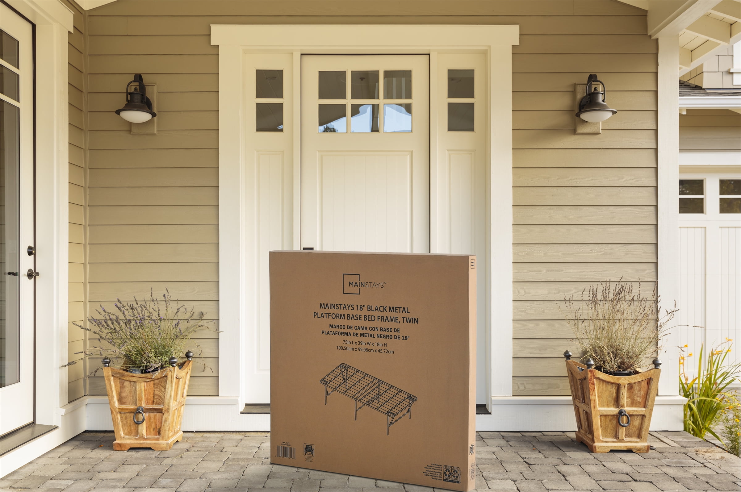 Support your mattress with the innovative and durable design of Mainstays High Profile Foldable Steel Platform Bed Frame. Durably constructed of powder-coated heavy-duty steel, the bed frame is quick and easy to assemble with no tools required. This dependable mattress platform allows you to place your mattress directly onto the frame without a box spring and folds in half for easy transport and storage. With an extra-high profile, the Mainstays 18″ High Profile Foldable Steel Bed Frame creates an ample storage opportunity under your bed, and it includes capped feet to minimize damage to floors, carpeting, and rugs. You and your family are sure to appreciate the durable and sturdy design of the Mainstays 18″ High Profile Foldable Steel Bed Frame.