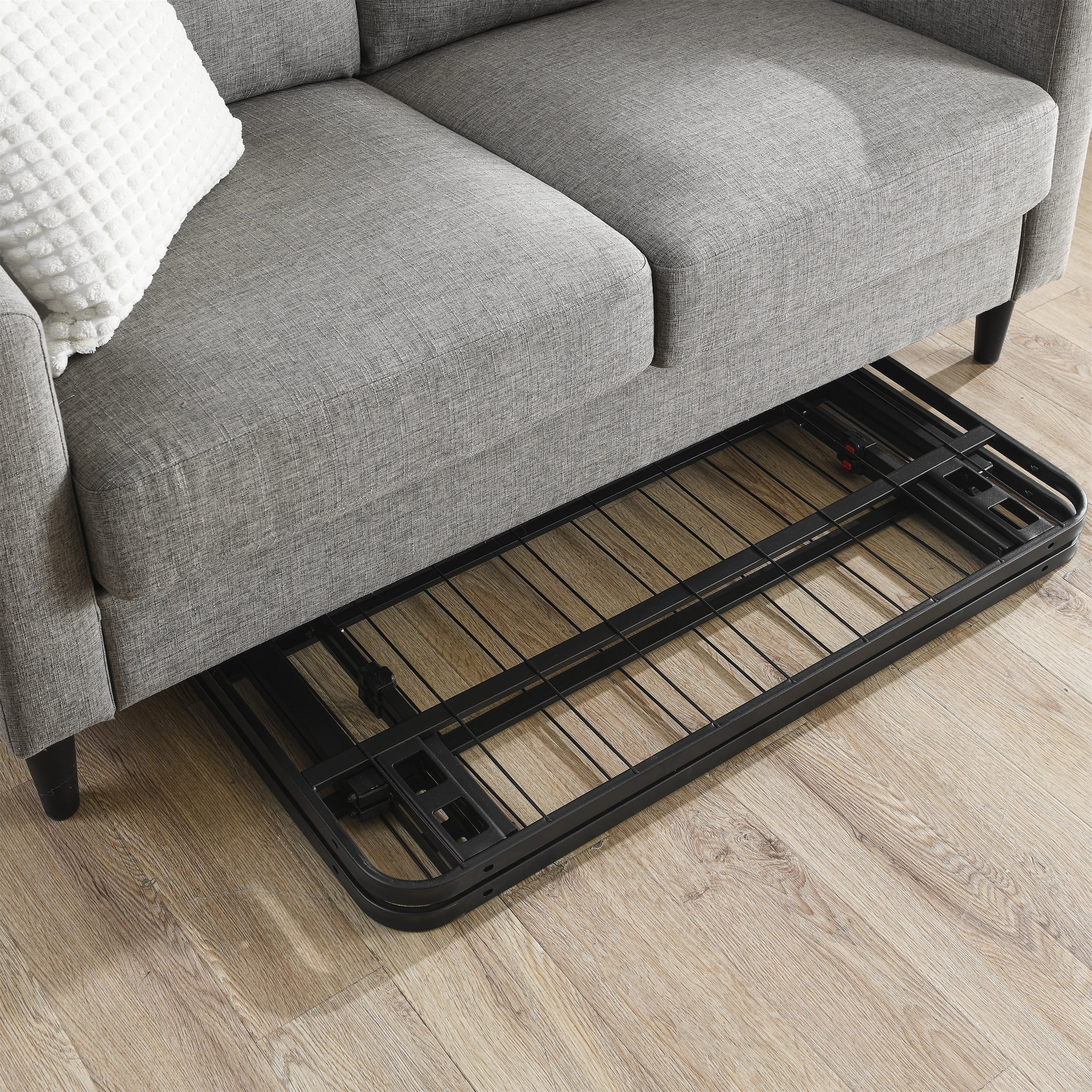 Mainstays 18″ High Profile Foldable Steel Platform Bed Frame, Powder-coated Steel with under bed storage, Easy Assembly, Multiple sizes: Sturdy, durable steel bed frame Black Powder-coated steel finish Allows you to place your mattress directly onto the platform with no box spring required Folds in half for easy transport and storage Features a button locking system that keeps the bed fully sturdy Fast and easy to assemble with no tools required for set up Extra-high 18″ profile creates an ample storage opportunity under your bed Designed with capped feet to keep your floors looking beautiful Use in bedroom, when guests come over or take on trips Available in twin, full, queen, and king Assembled Product Dimensions: Twin: 75″ L x 39″ W x 18″ H (600 lb. weight capacity) Full: 75″ L x 54″ W x 18″ H (1200 lb. weight capacity) Queen: 80″ L x 60″ W x 18″ H (1200 lb. weight capacity) King: 80″ L x 76″ W x 18″ H (1200 lb. weight capacity) Shipping Product Dimensions: Twin Shipping dimension: 40″ x 3.15″ x 38.8″ – Weight: 32.2 lbs. Full Shipping dimensions: 27.8″ x 5.7″ x 38.8″ – Weight: 45 lbs. Queen Shipping dimensions: 30.7″ x 5.7″ x 41.1″ – Weight: 50.5 lbs. King Shipping dimensions: 39″ x 5.7″ x 41.1″ – Weight: 58.86 lbs.