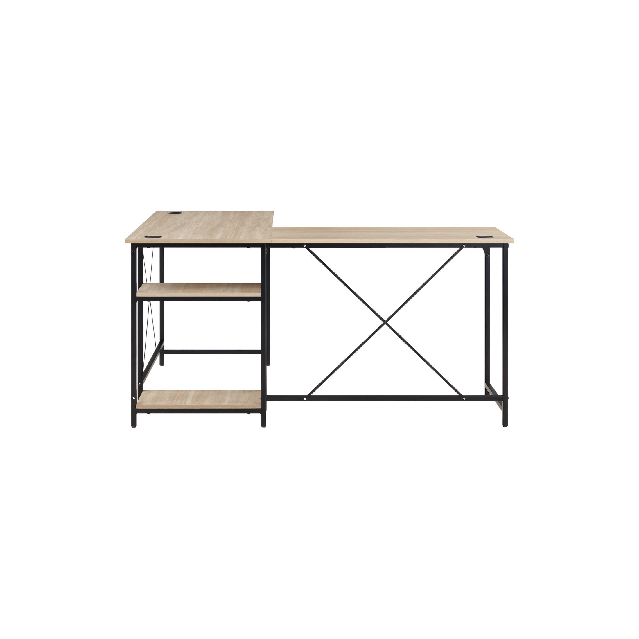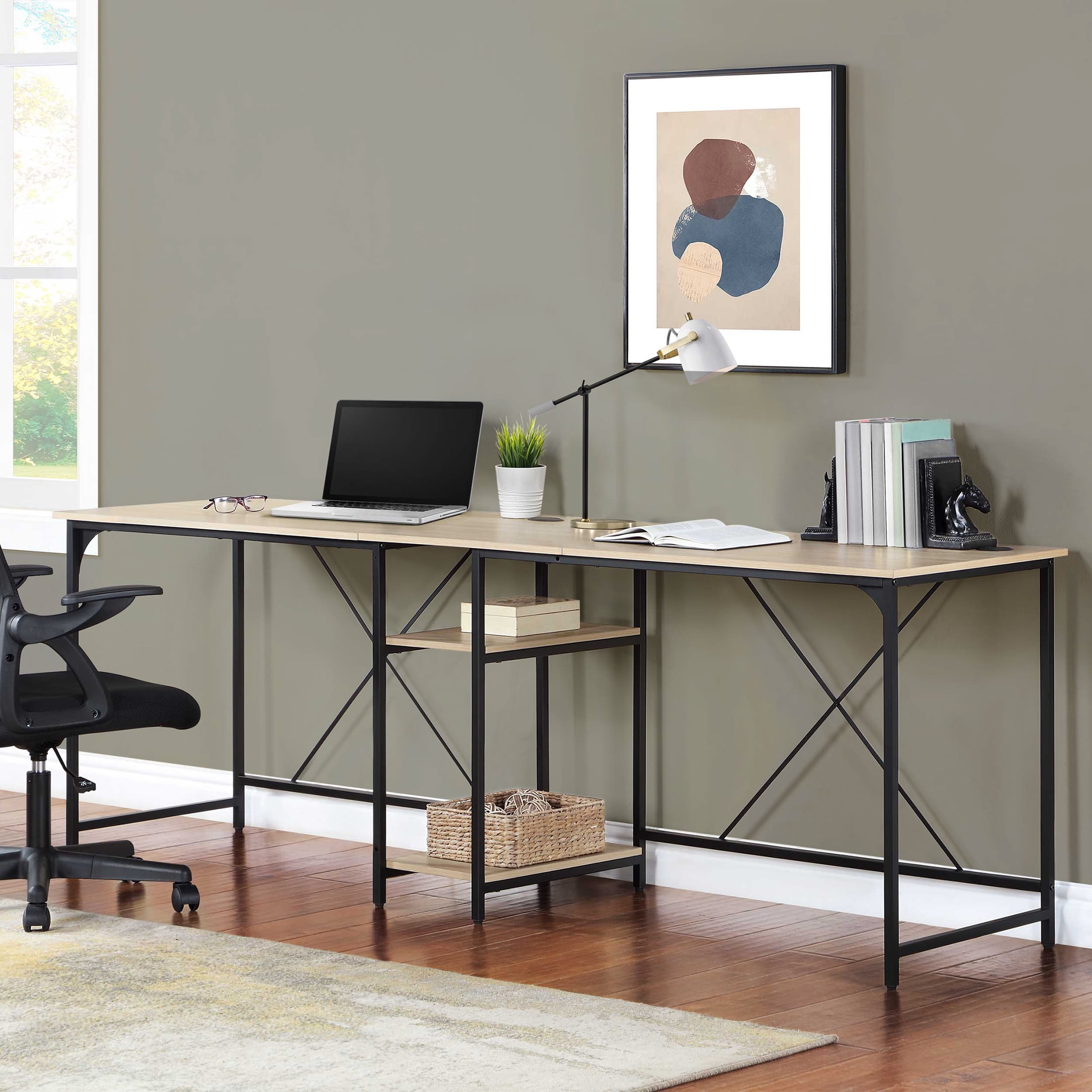 Mainstays Two-Way Convertible Desk with Lower Storage Shelf, Natural Finish and Black Metal Frame, Adult and Teen