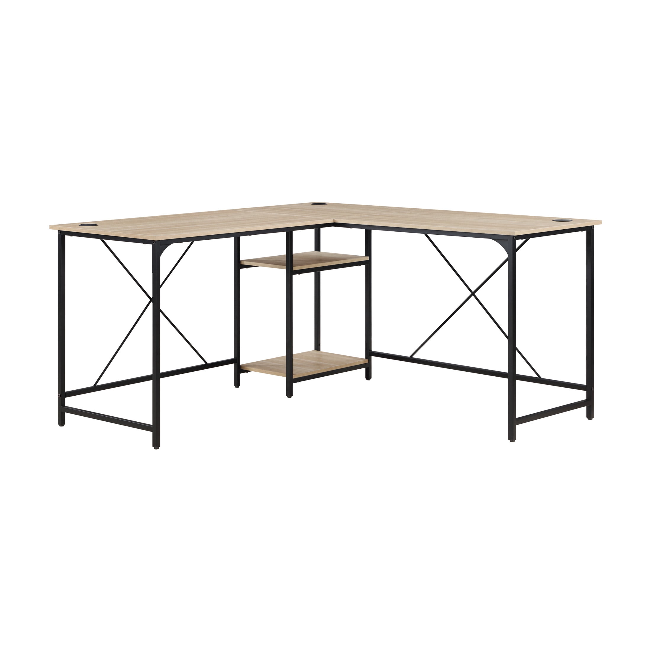 Easily converts from L space to Side-by-side desk Large desktop for working on projects, paying bills or doing homework 2 lower shelves for storing accessories, books and more Sturdy metal frame Structured with X bar for stability Wire management for organizing computer cords or charging cables The two rectangle shaped desks fit together in a corner or straight across to fit your needs Available Finishes: Black, Canyon Walnut, White, and Natural Age Group: Adult or Teen L-Desk Dimensions: 59” W x 53.7” D x 29.75” H (149.9cm x 136.4cm x 75.6cm) Extended Desk Dimensions: 90.7” W x 22” D x 29.75” H (230.4cm x 55.9cm x 75.6cm) Packaging Dimensions: 43.375 W x 24.625 D x 6.5” H Model# MS62025004001, MS3325004710003, MS3325004710002, MS3325004710001