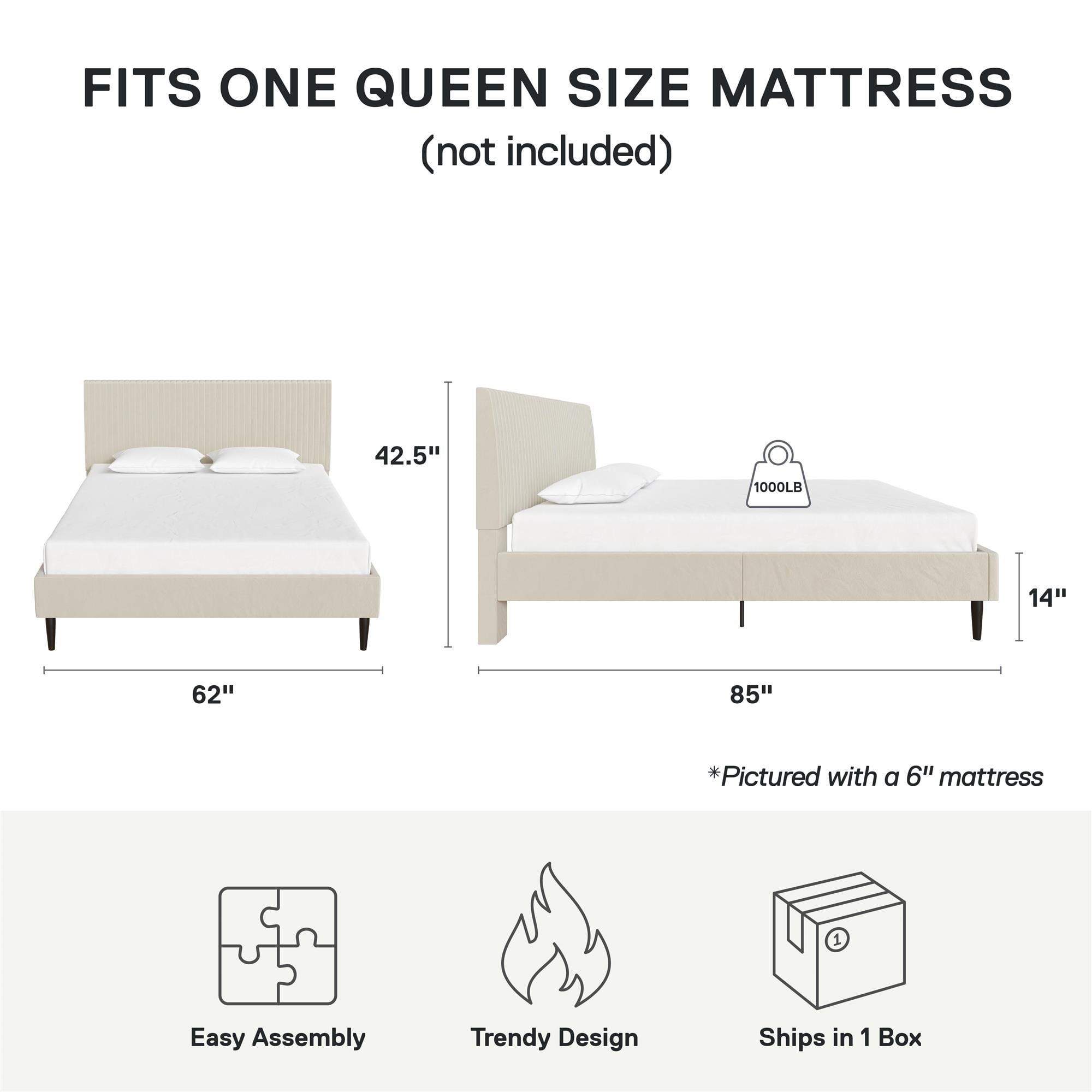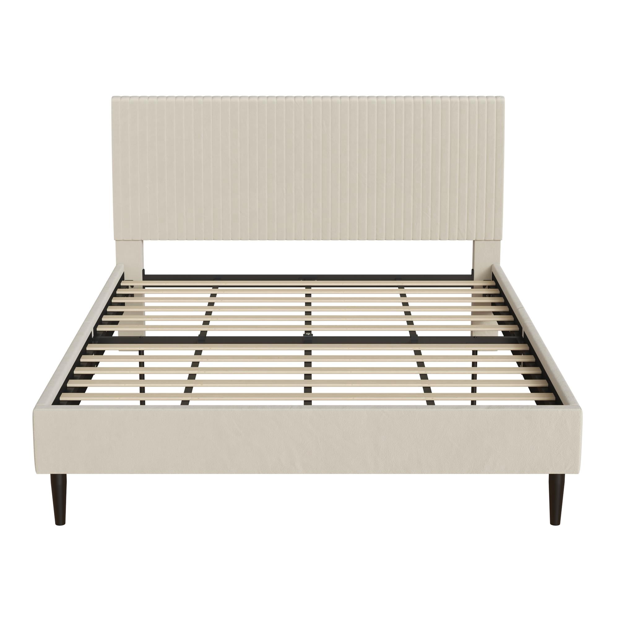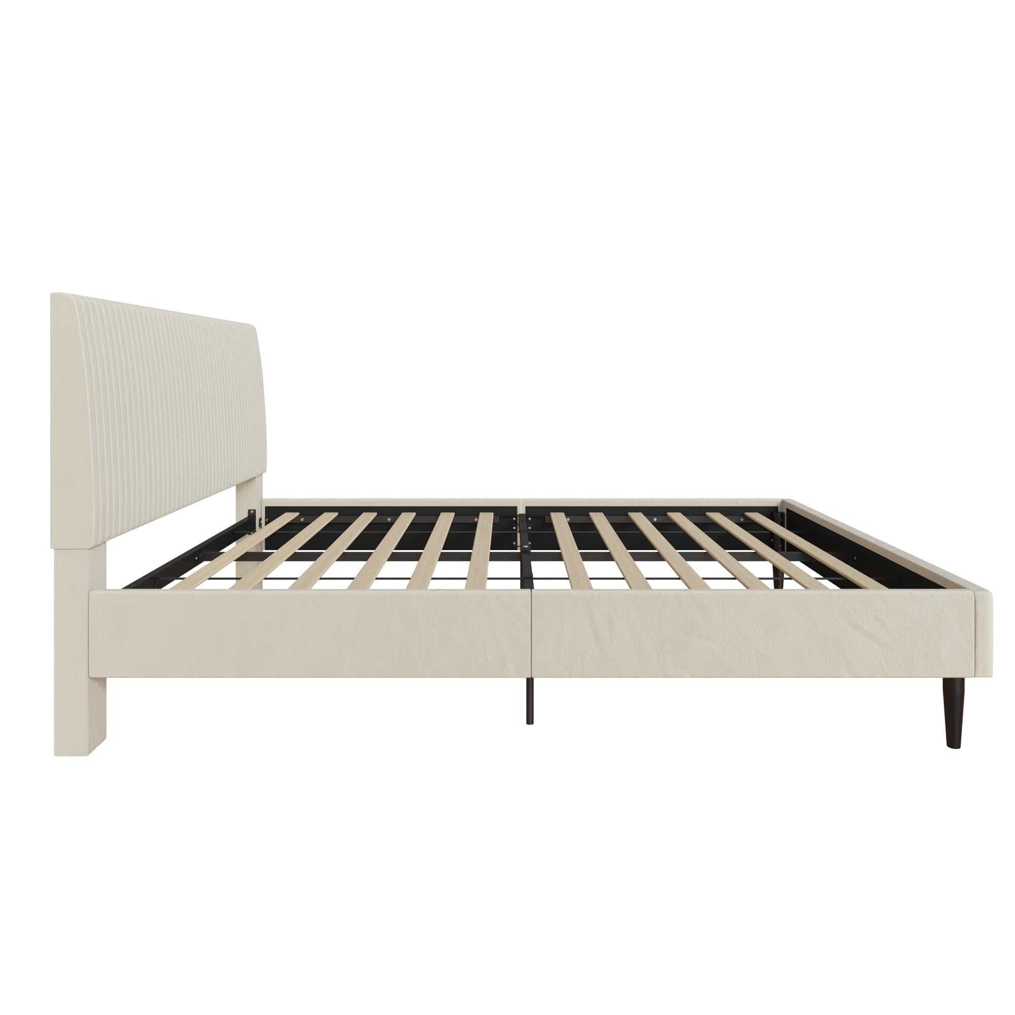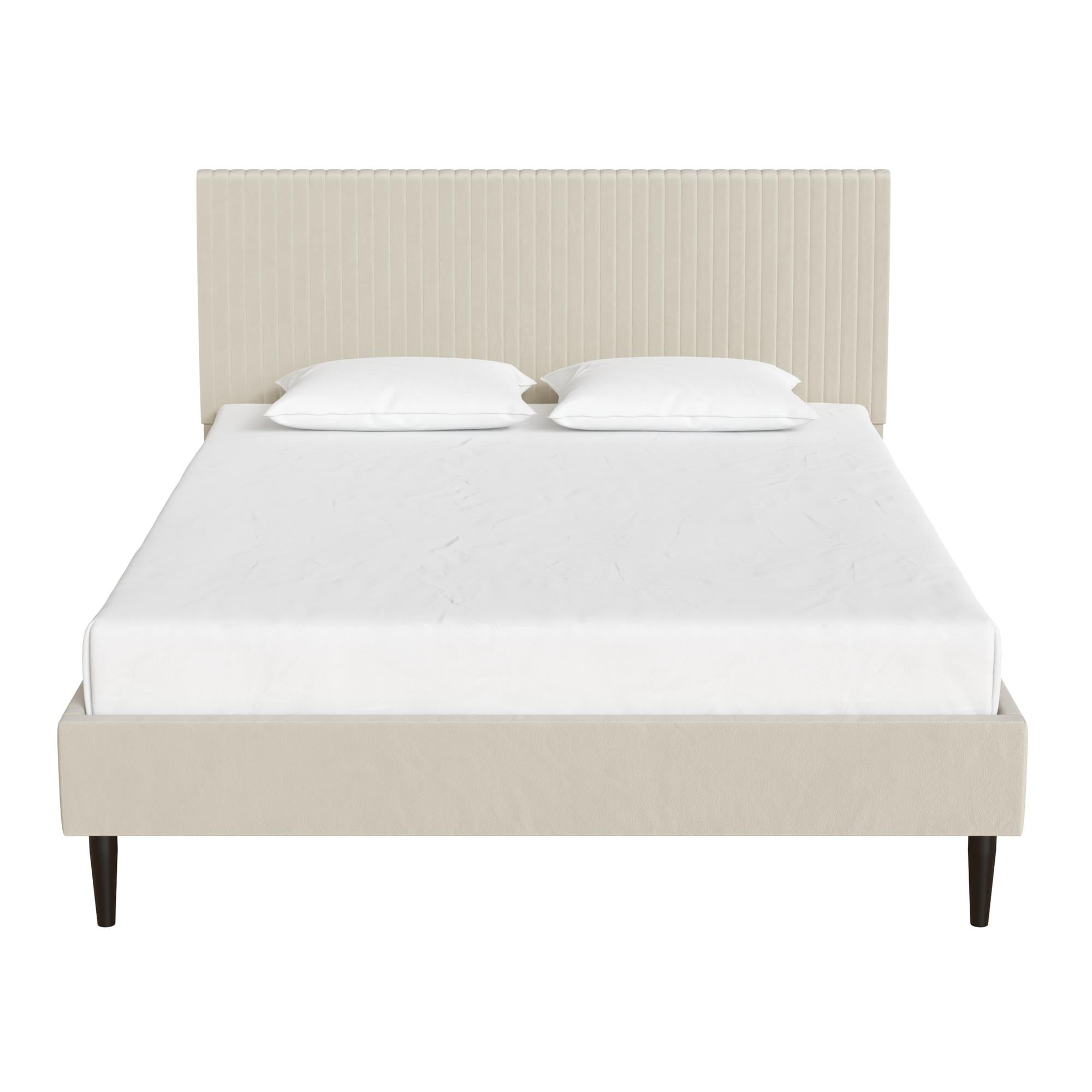Mainstays Vera Upholstered Velvet Platform Bed, No Box Spring Required, Queen, Cream