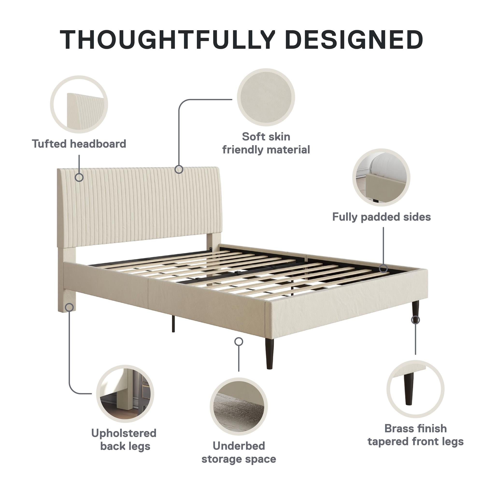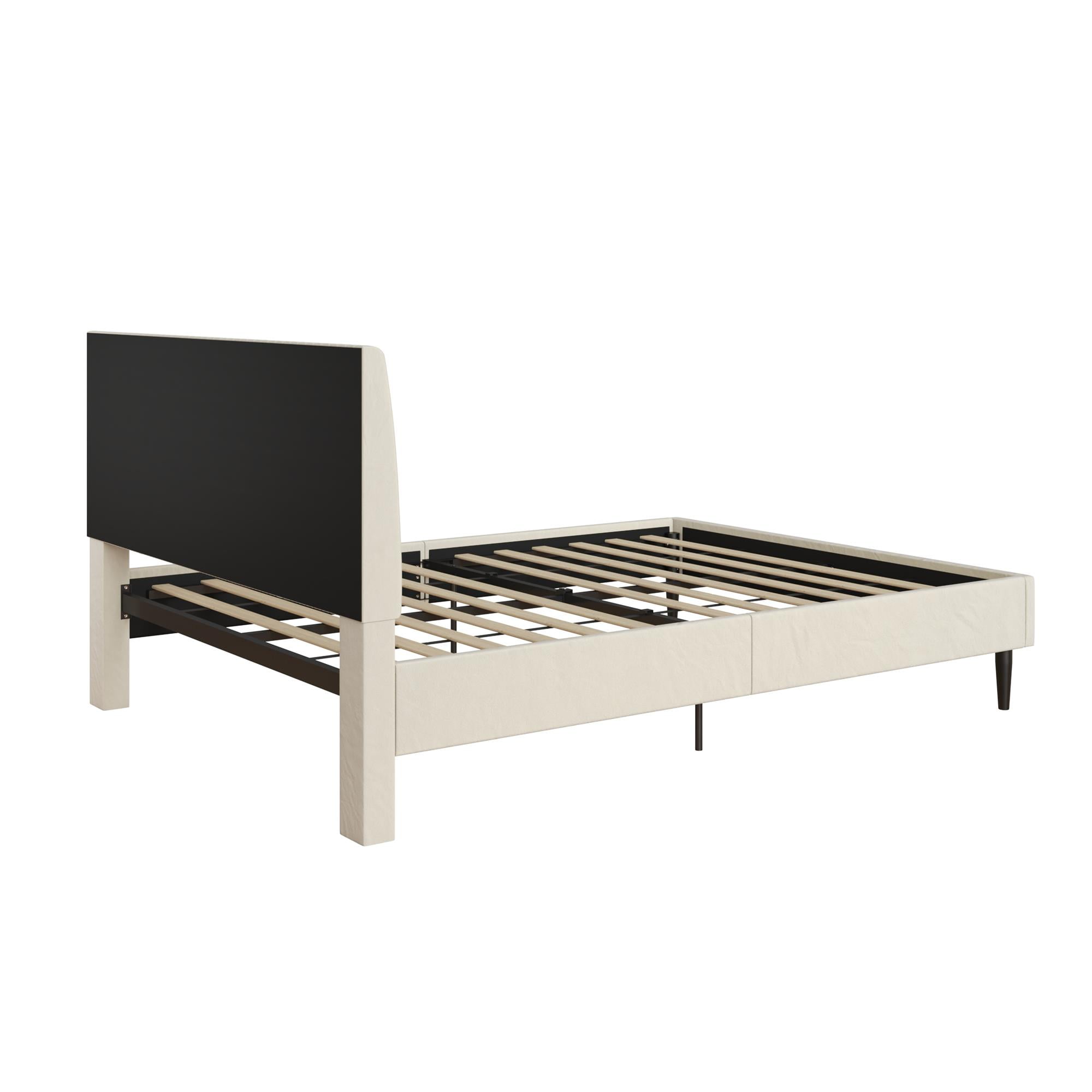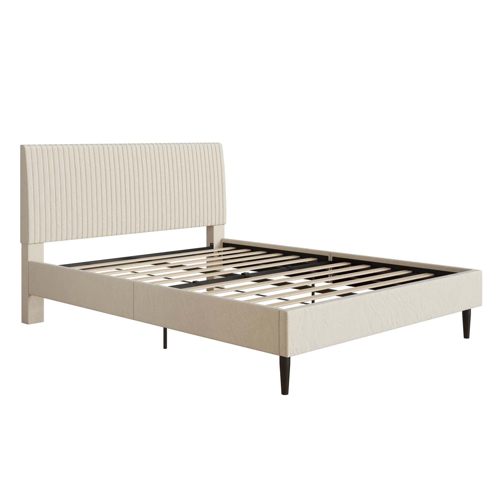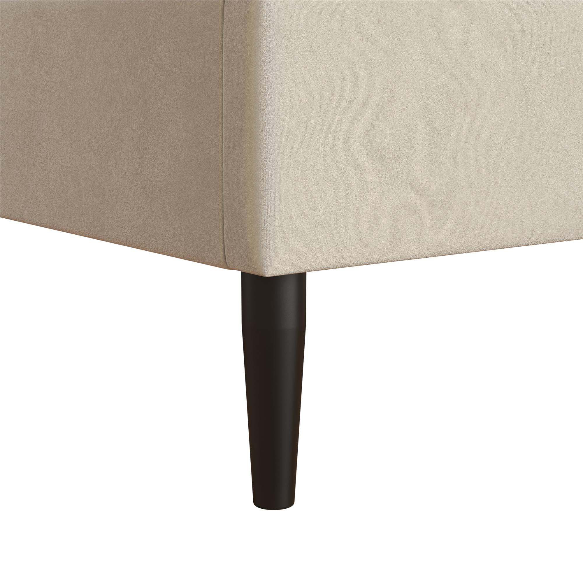 Mainstays Vera Upholstered Velvet Platform Bed, No Box Spring Required, Queen, Cream