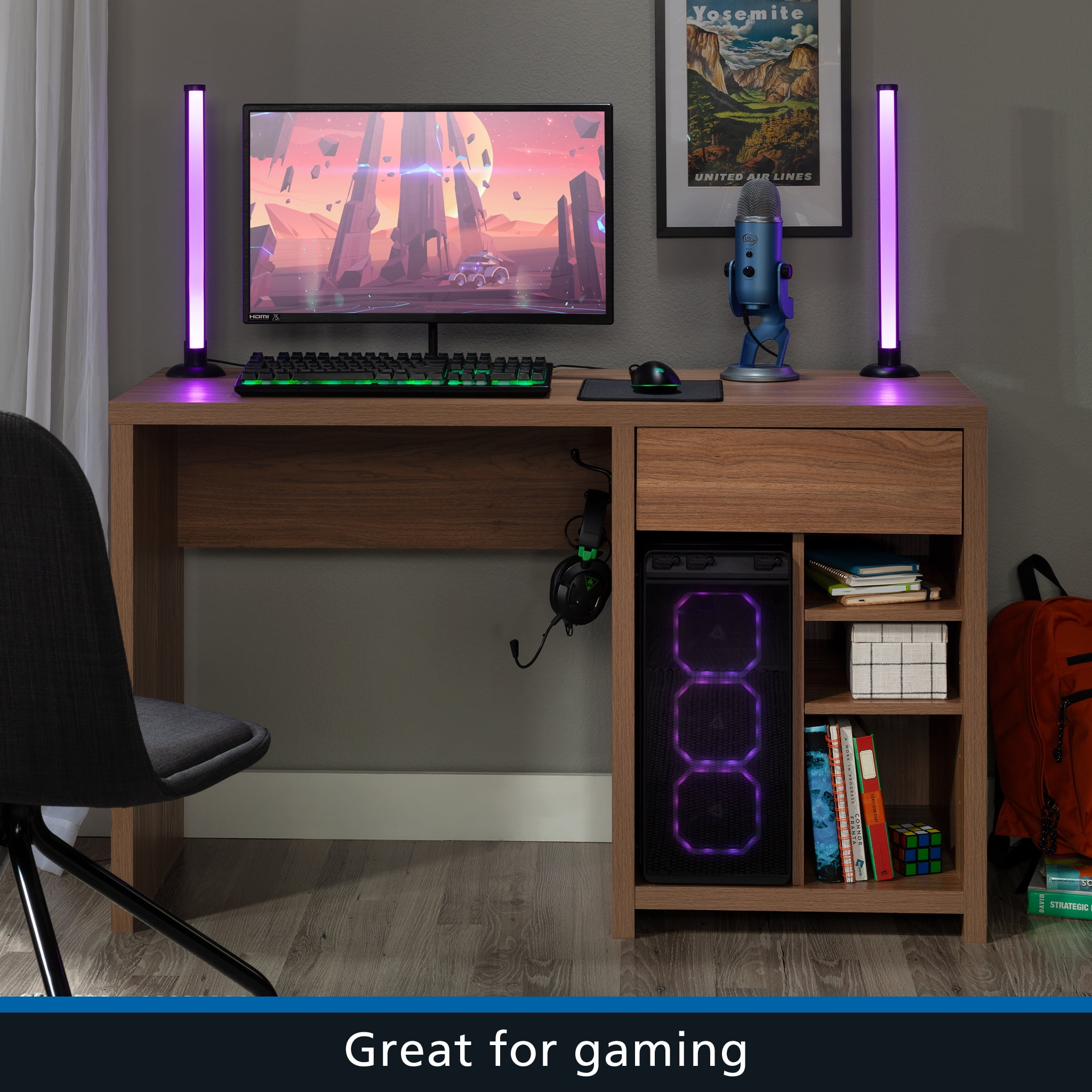 Mainstays Westley Adjustable Shelf Desk with Gaming Headphone Hook and Cable Management, Warm Walnut Finish