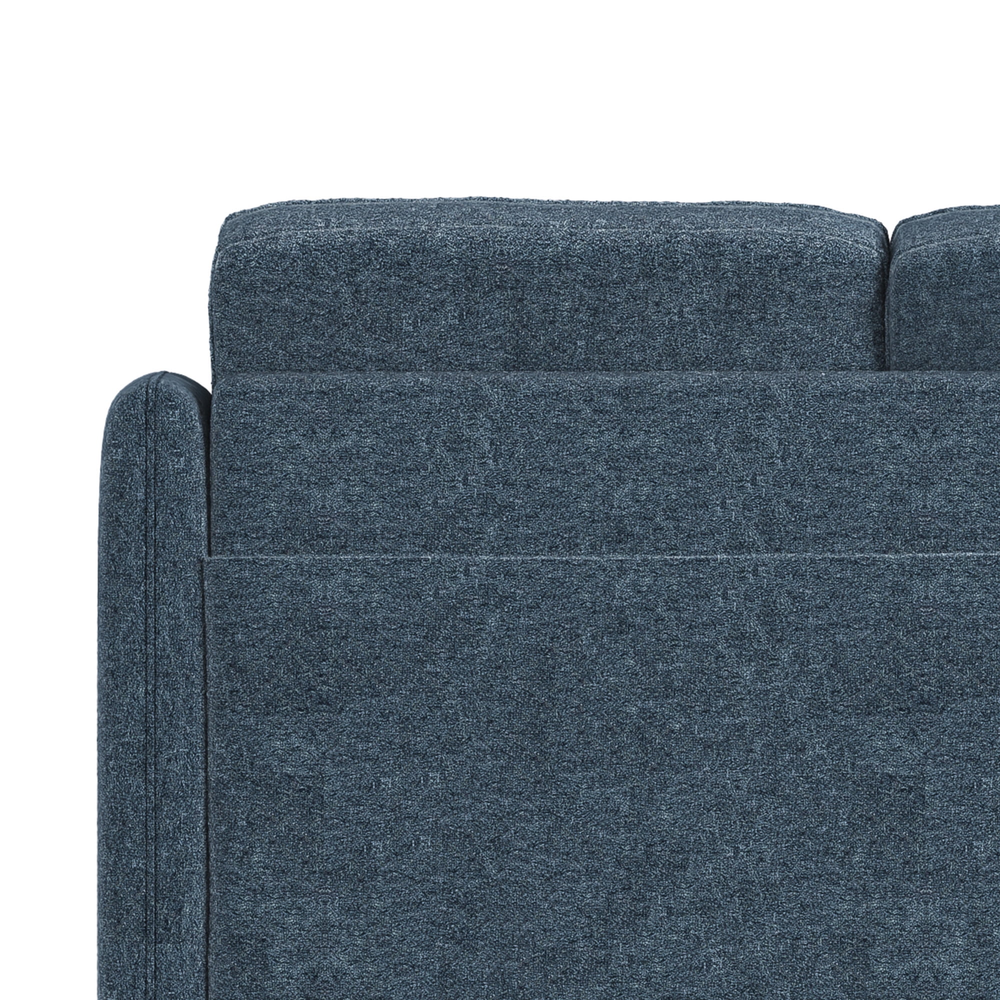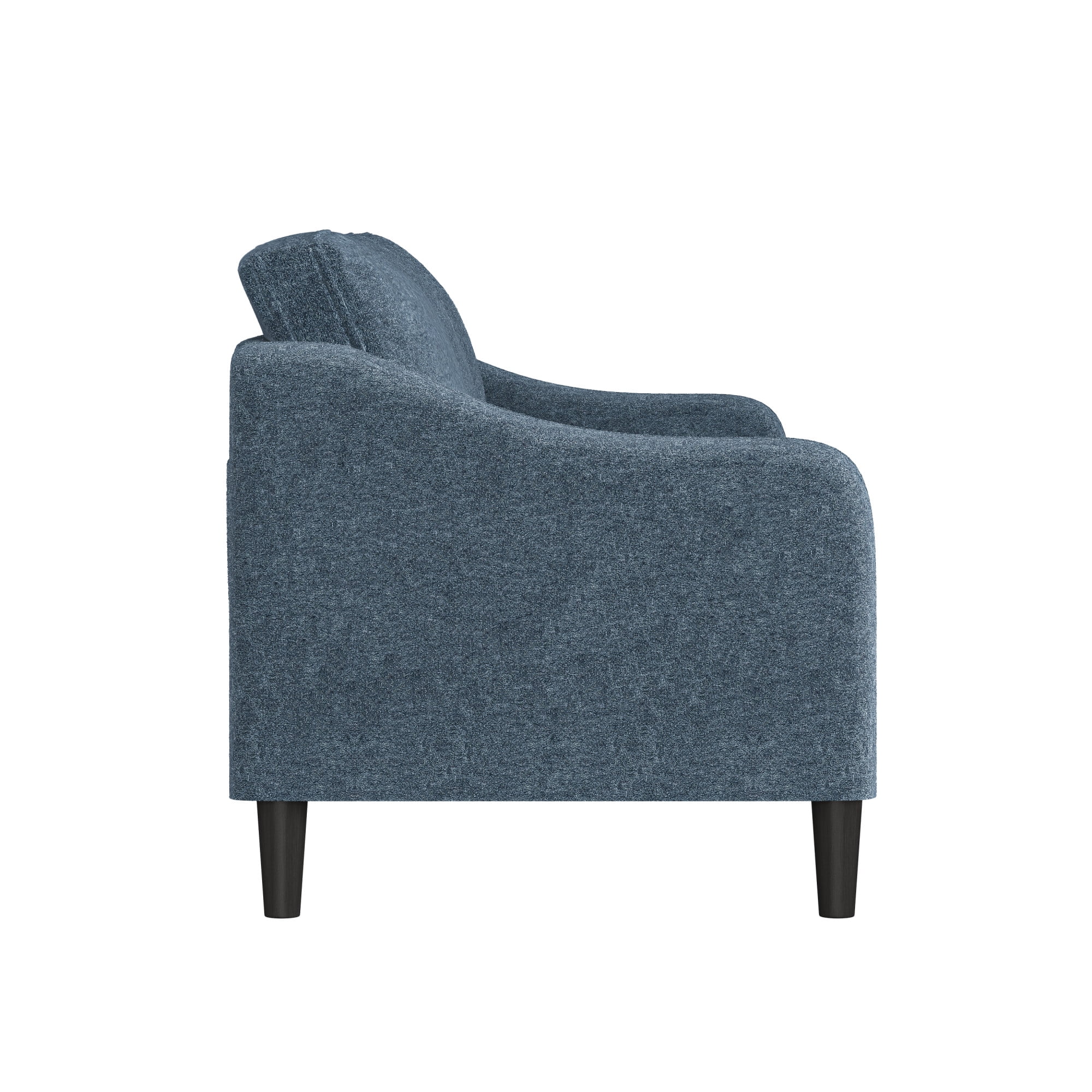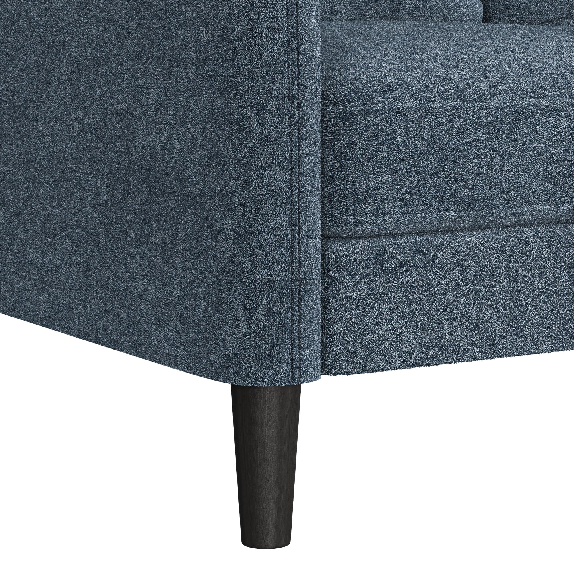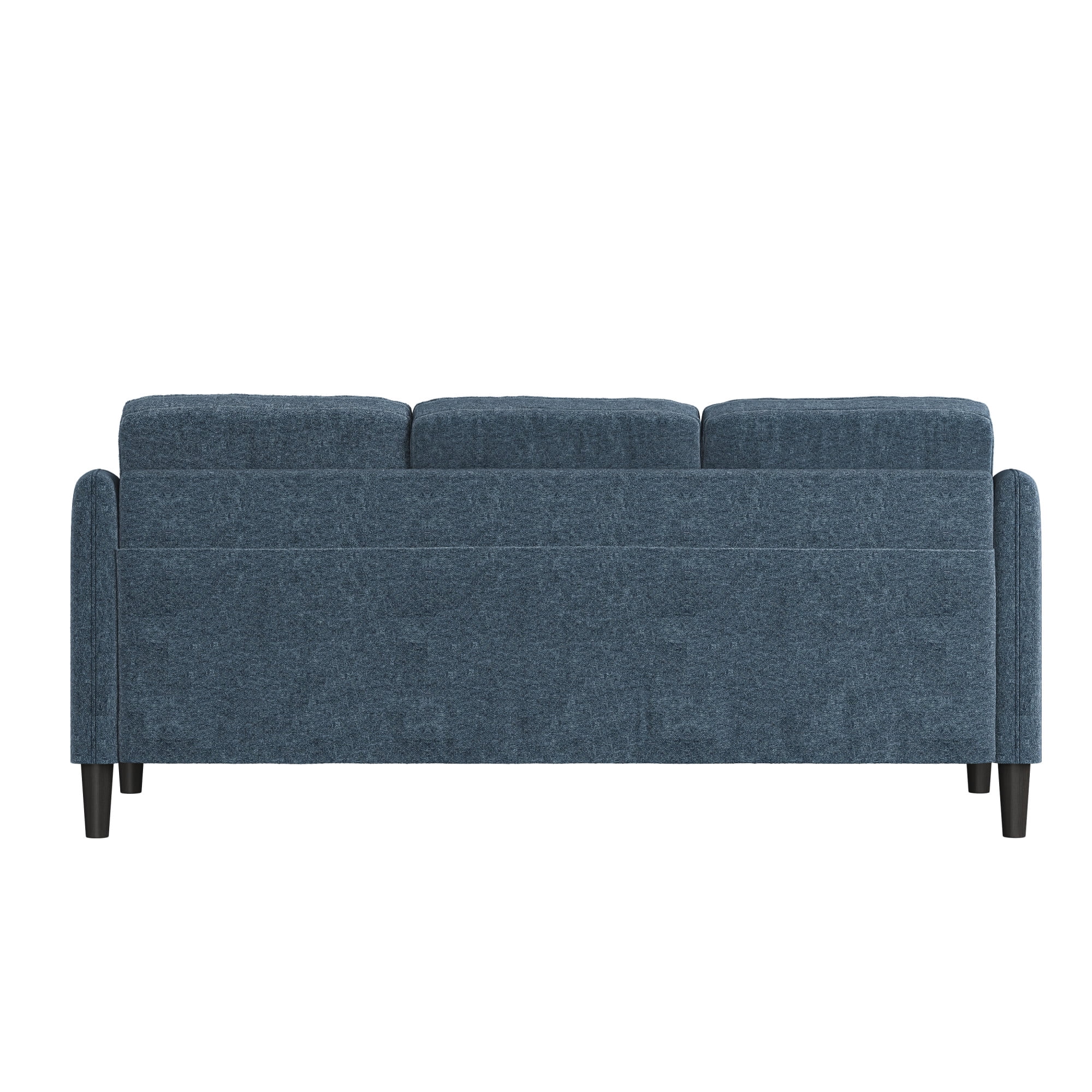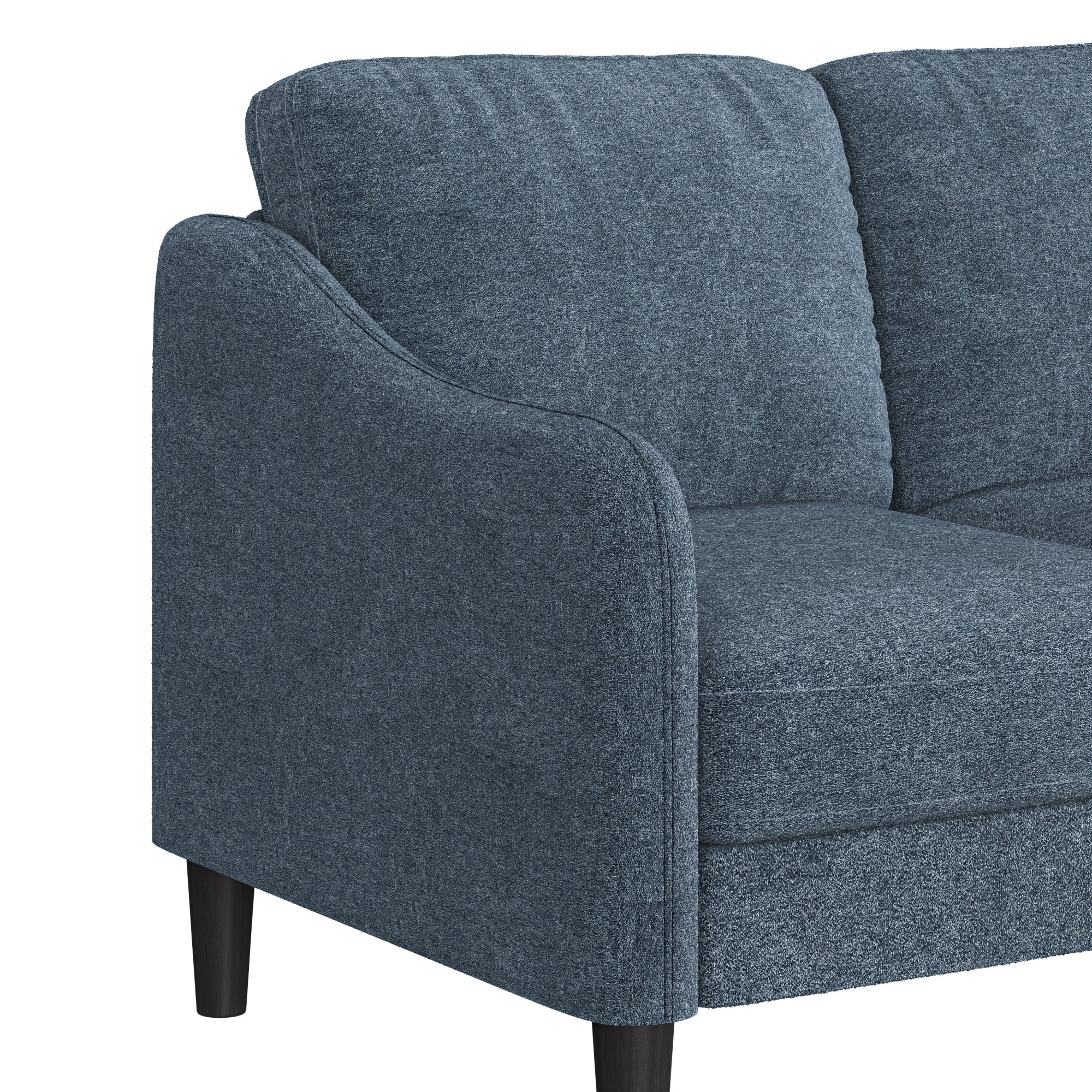 This low profile sofa gives you a reason to relax, making it the perfect modern addition to any small or medium living space. The trendy slope arms of the sofa, sturdy tapered legs and welting details provide the clean, contemporary look that will continually accommodate your evolving style. This blue adult indoor couch is perfect for those looking to ground their space with a timeless feel, and its three-cushion design makes for a great place to gather with loved ones, take a nap, or settle in for a movie night. The sturdy wood construction and soft, durable fabric cushions make this upholstered piece a classic, sustainable addition to any household. Assembly required.