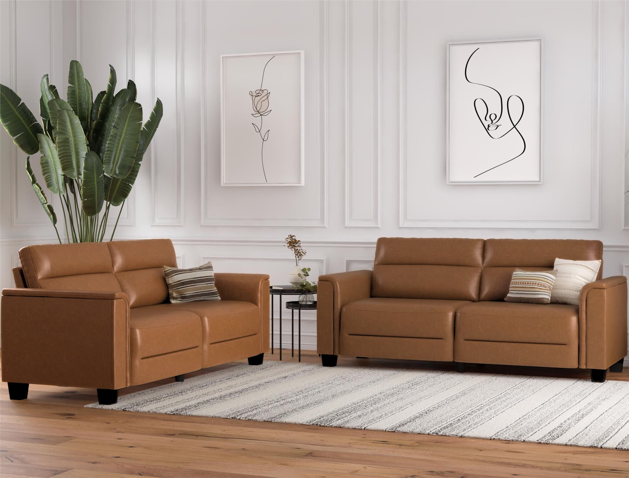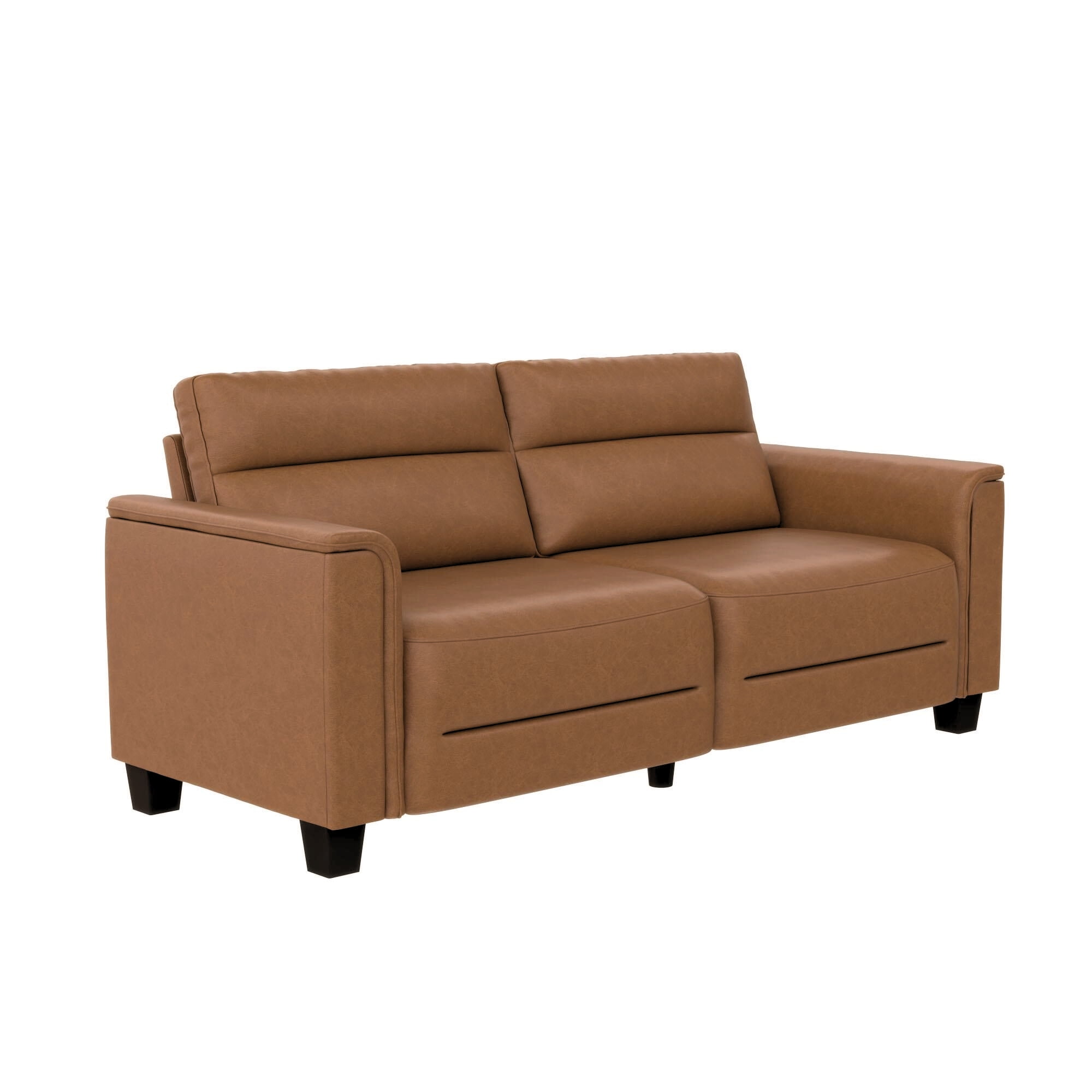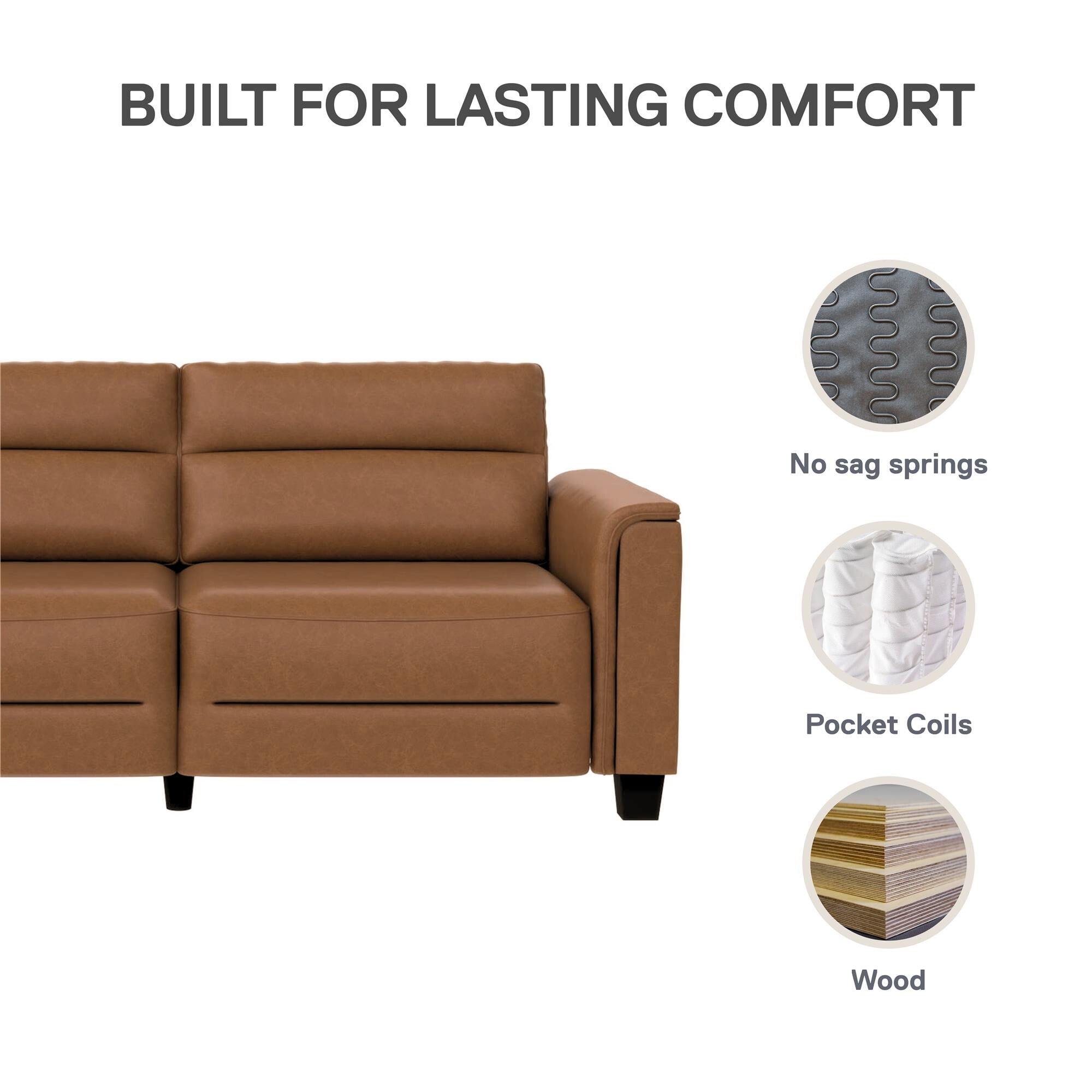 PERFECT FOR COMPACT LIVING: Our 75.5″ wide contemporary sofa fits superbly in apartment spaces. This stylish small couch, wrapped in buttery faux leather fabric and designed with an edgy boutique hotel look, delivers comfortable seating for up to 3 people. RELAX IN COMFORT: The built-in seat and back cushions contain premium high-density foam, providing dependable support for family and friends. The pocketed coil seating system ensures lasting firmness and prevents unwanted sinking with regular everyday use. NO TOOL SETUP: Get your sofa ready in under 30 minutes. Just attach the seat to back sections using the 2 provided bolts, secure the top to bottom with the attached brackets, and screw-in the 6 legs – the most convenient 75.5″ sofa for living room leisure.