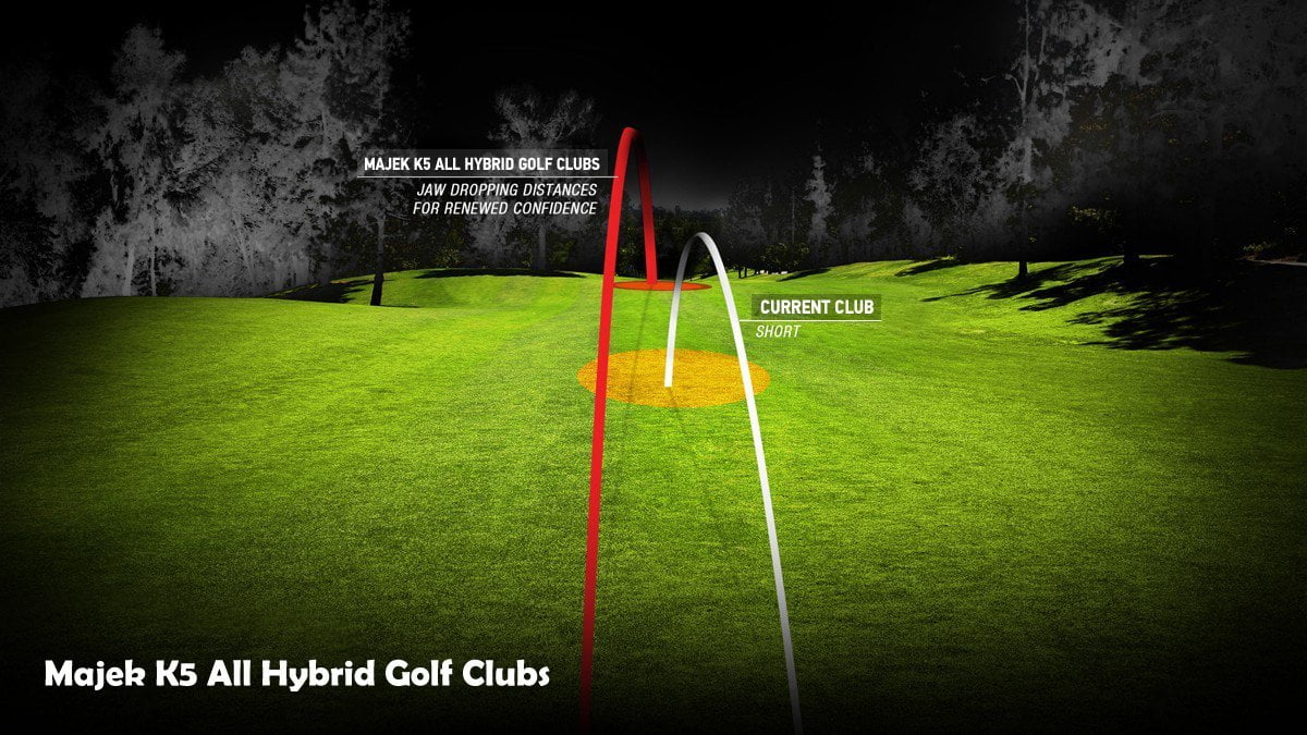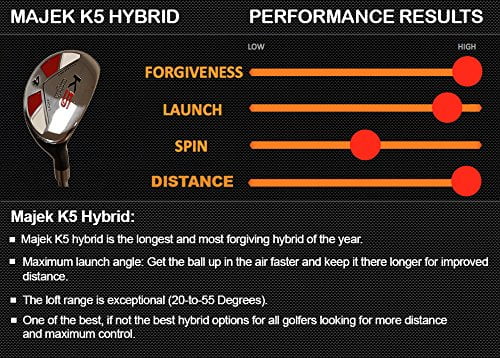 Replace Your Entire difficult to use iron set with the Majek K5 all hybrid iron set! Majekally improve your Hybrid-Iron game! Pure Golf Engineering: Majek Hybrid was Co-Engineered by members of the UCLA’s engineering department. This unique relationship and pure engineering approach created the Majek All Hybrid Iron Set. Benefits of the Majek Hybrid: -More Weight Positioned Behind The “Sweet Spot” -Deeper Cavity Back Creates A Tighter Shot Dispersion, Which Increases The Accuracy On Off Center Hits. -Aerodynamic Design Creates A Reduction In Drag, Which Leads To Higher Club Head Speeds -Wide To Thin Crown Design Creates A Lower CG To Promote Higher Launch Angle For More Distance -Lightweight Premium Graphite Shaft Promotes Faster Swing Speed For Greater Distance. -Black Crown And Arrow Markers Make Alignment Easy And Eliminates Glare. Support A Local Company: Your Custom Made Majek Golf Hybrid Is Assembled By Hand In Riverside, CA, USA And Delivered Direct To Your Door.