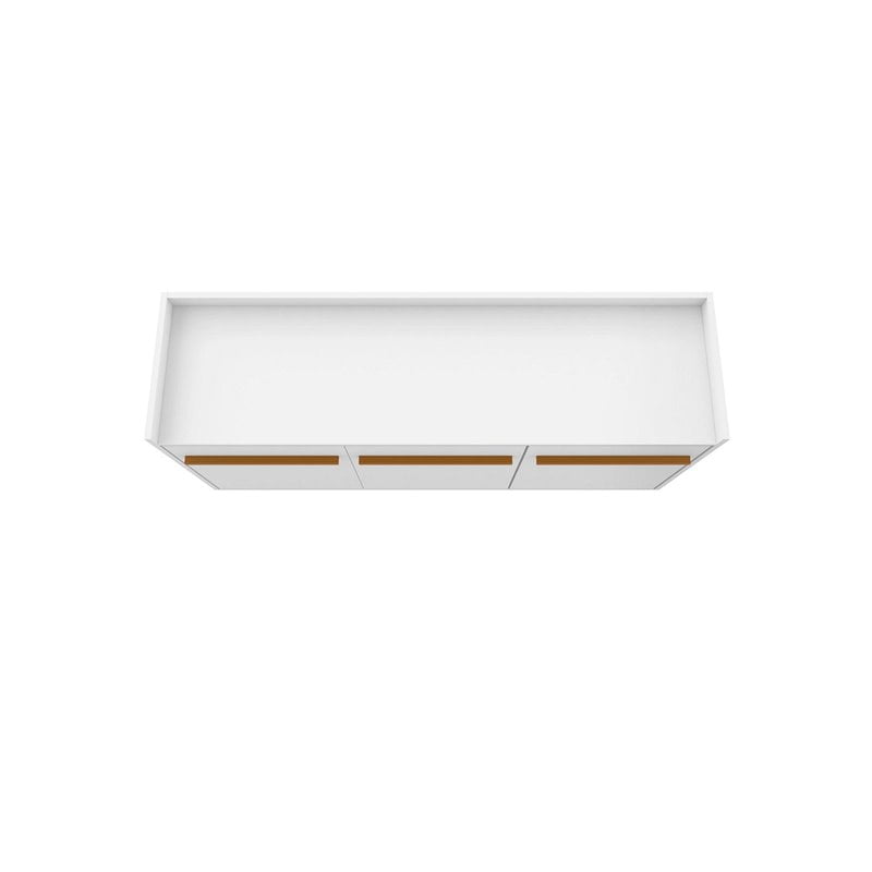 Material: Wood Finish: White, rustic brown Upon assembly Recommended for up to a 50″ TV stand. Includes 2 cabinets Features unique dip style top board adding sophistication and beauty. 90° open door style including soft close features. Home assembly required. All hardware included.