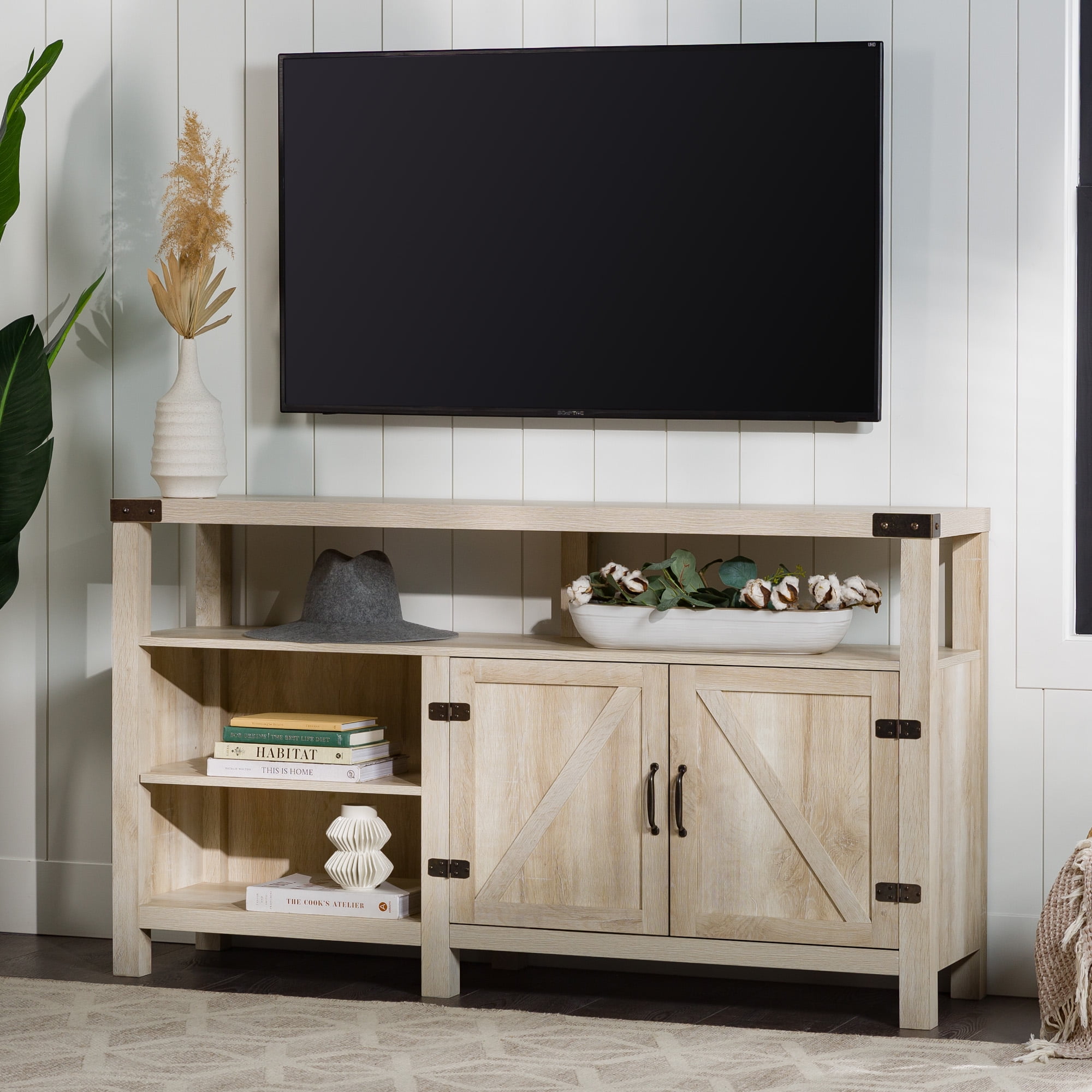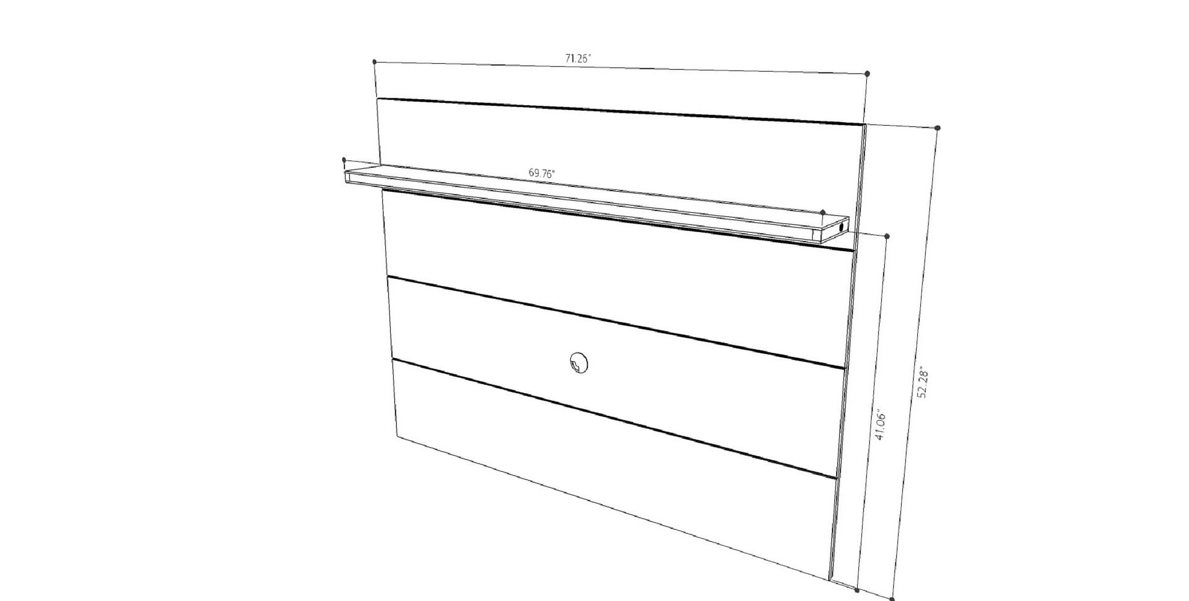 Wall Mounted TV Panel for Living Room and Bedroom use. * Upon Assembly, measures: 71.25 inches in Length, 52.28 inches in Height, 8.46 inches in Depth. * Recommended for a 60″ Flat Screen TV. * Includes Brackets to Mount TV on Panel * Media Hole for TV Wire to be Concealed. * Features 1 Overhead Shelf for Picture Frames and Collectable Items * Sophisticated Overhead Shelf Includes LED Lights * Home Assembly Required. All Hardware Included. Recommended for Brick and Concrete Walls.