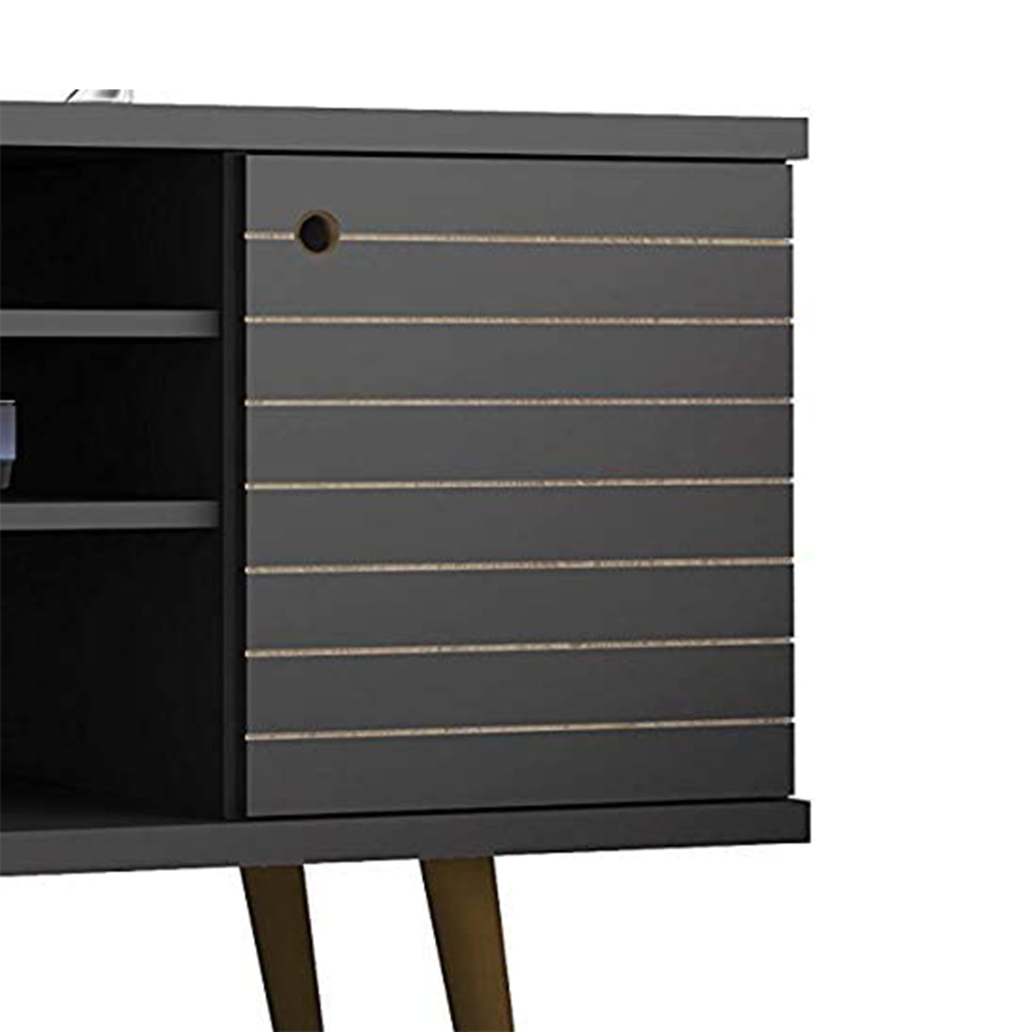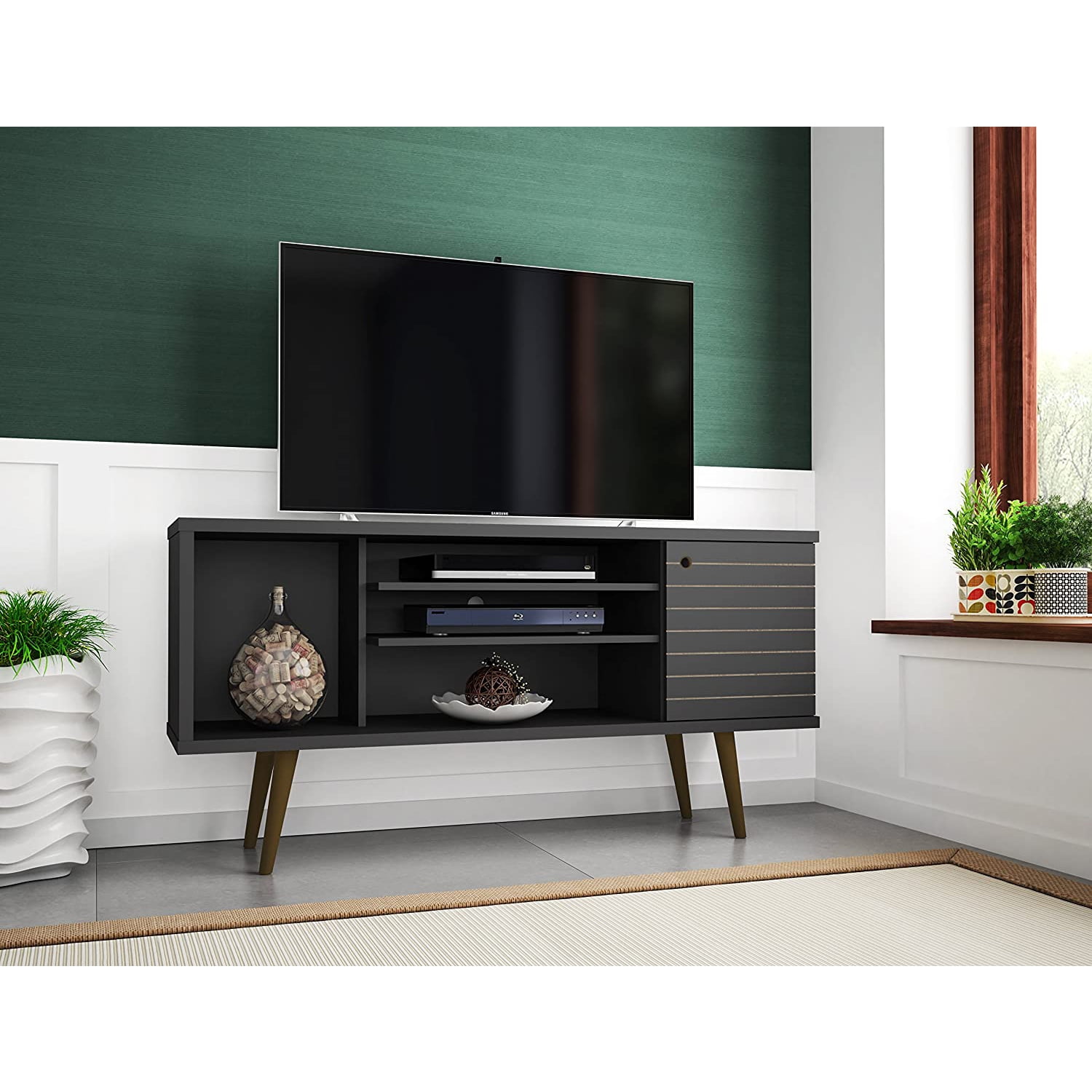 Manhattan Comfort Liberty 53 Inch Mid Century Modern TV Stand Table, Black