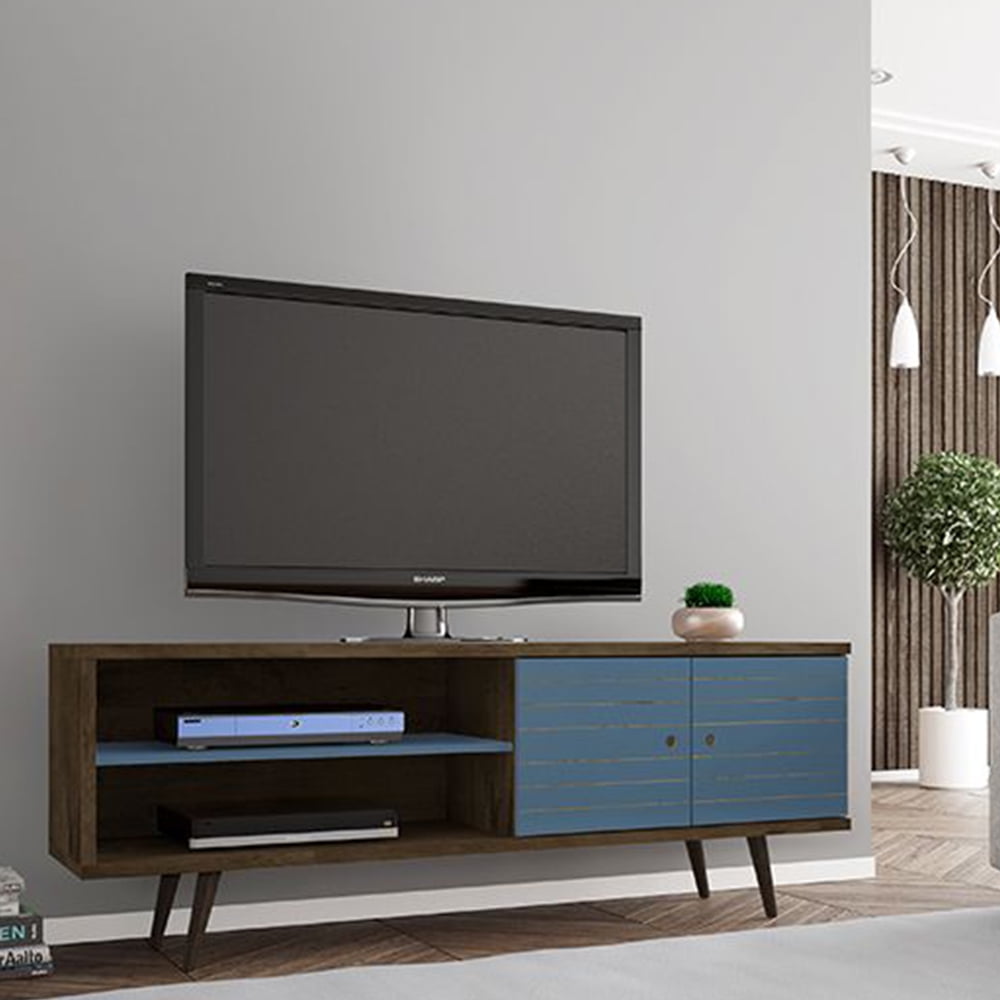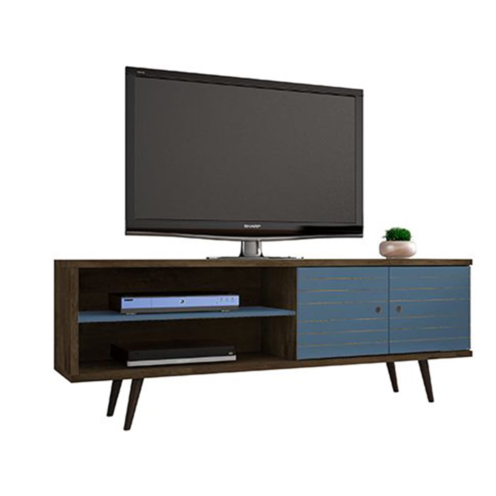Manhattan Comfort Liberty 63″ TV Stand in Rustic Brown and Aqua Blue