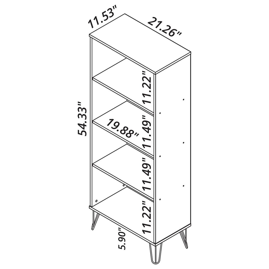 The Manhattan Comfort Rockefeller Standard Bookcase features ample shelving space to show off your favorite reads and most impressive collection of books. Change it up with decorative accents and add framed family photos to the mix, to keep it artful and fresh. Mid-century modern clean lines and splayed metal legs keep this piece on trend, easily blending from space to space with functionality and style in mind.