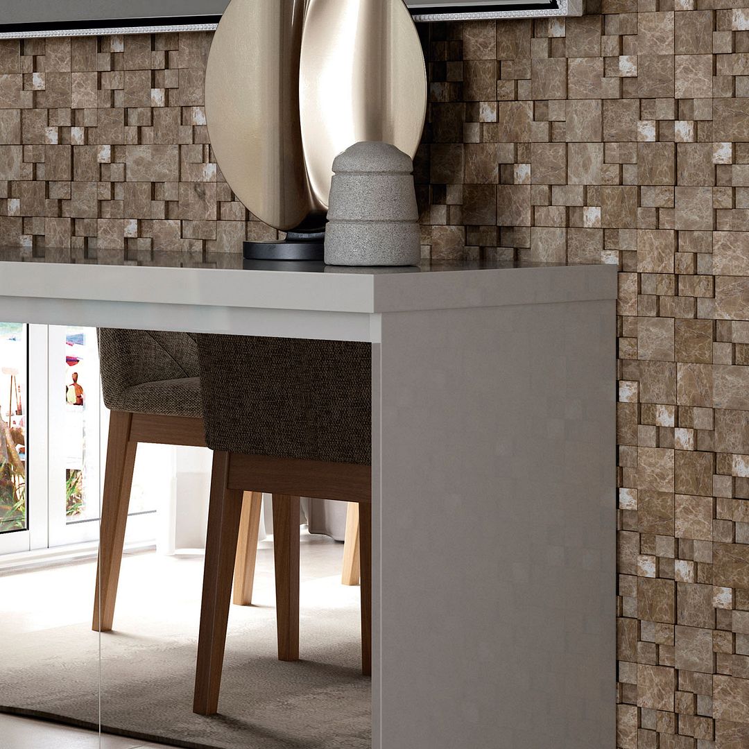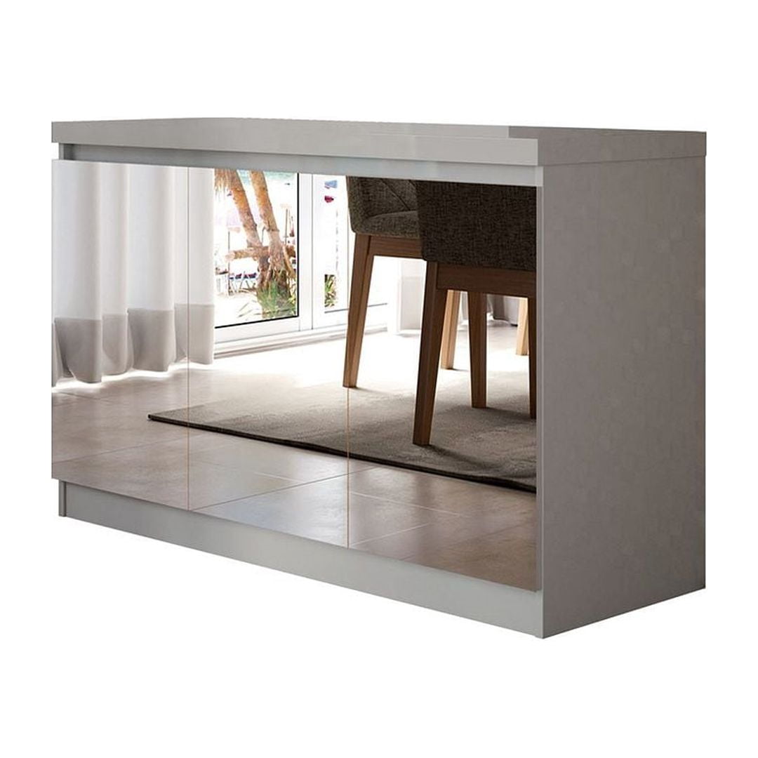 Contemporary modern buffet/ sideboard for dining room use. Upon assembly, measures: 46.81 in. Length, 29.84 in. Height, 17.48 in. Depth Recommended for up to 45″ tv. Includes ample storage spaces: 5 shelves and 3 mirror doors. Can be used in the hallway and entryways as consoles or cabinet space in the dining room. No legs. Closed mop base. Concealed and ample storage for chinaware. Home assembly required. All hardware included.