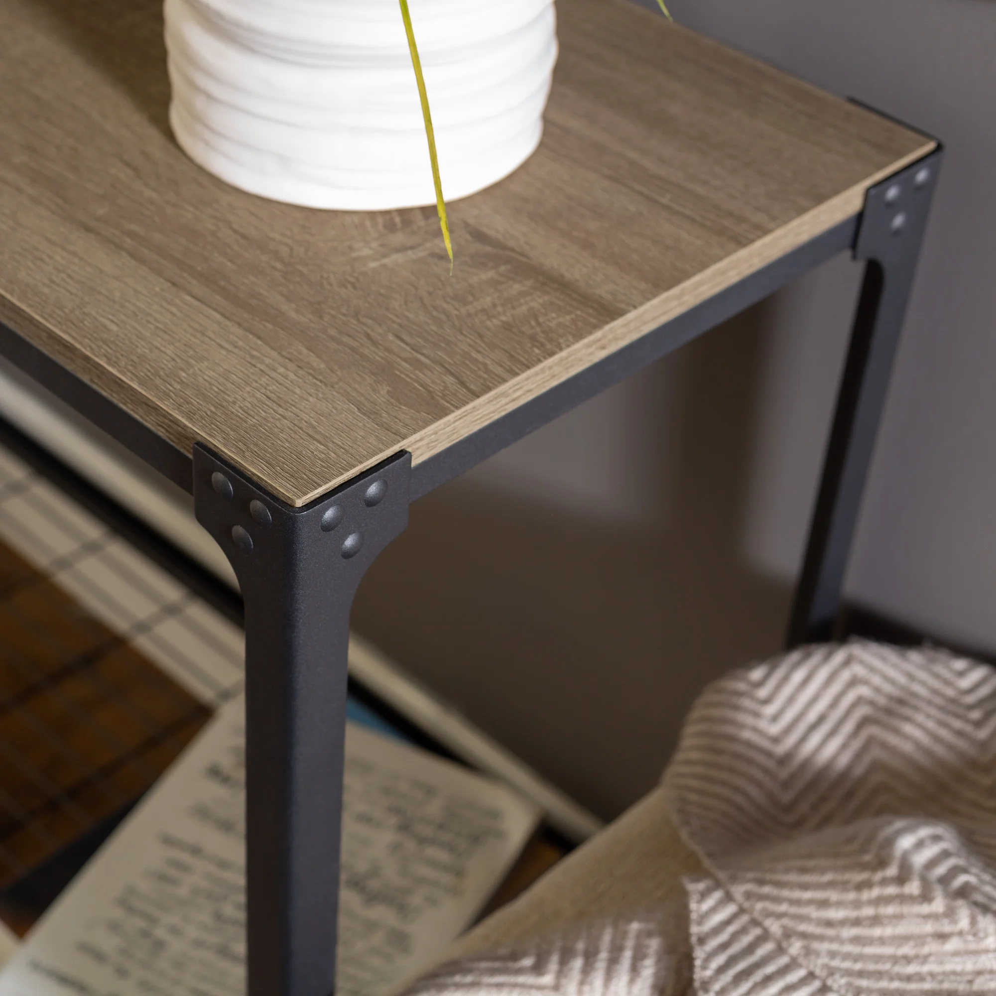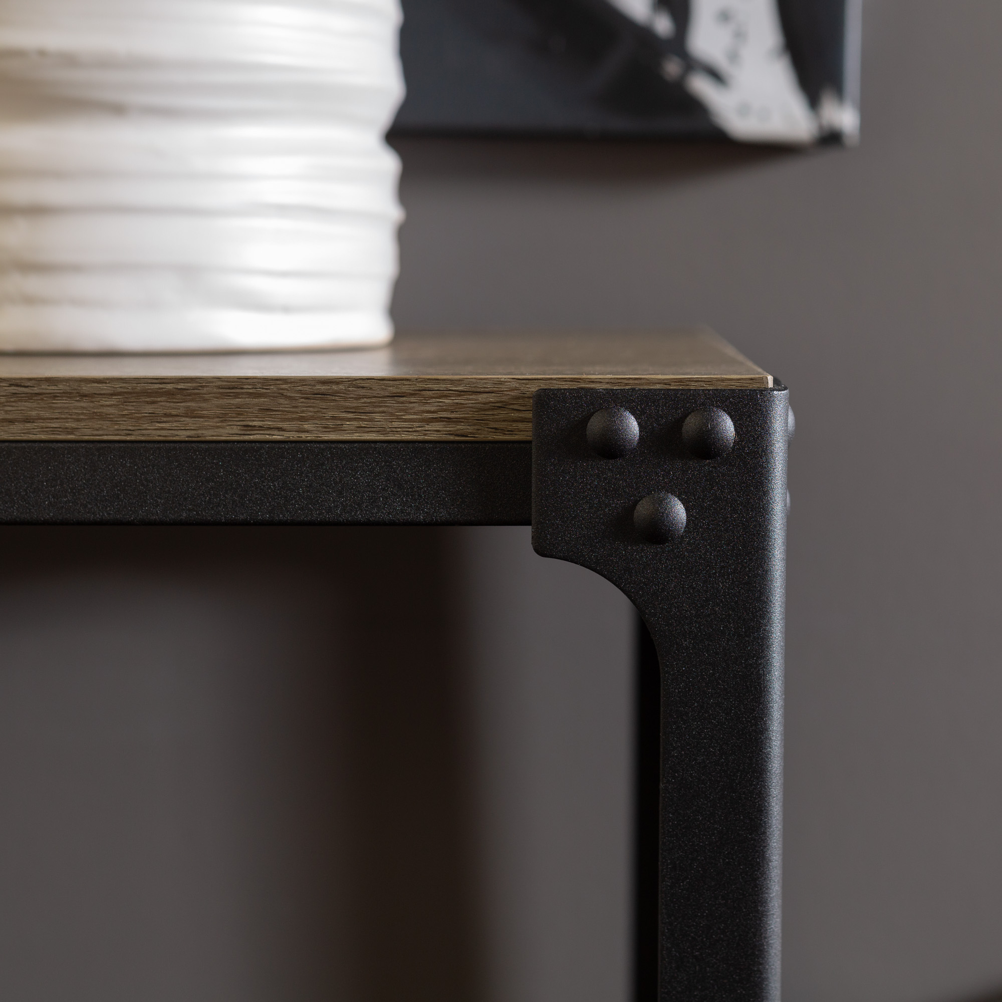 Add rustic flair to any room in your home with this angle-ironed accent table. Showcase your accessories, decor, or media with this durably constructed table. Crafted of powder-coated metal and wood, you can rely on this piece to complement your home for years to come. It is perfect for your front entry, living room, bedroom, and even kitchen.