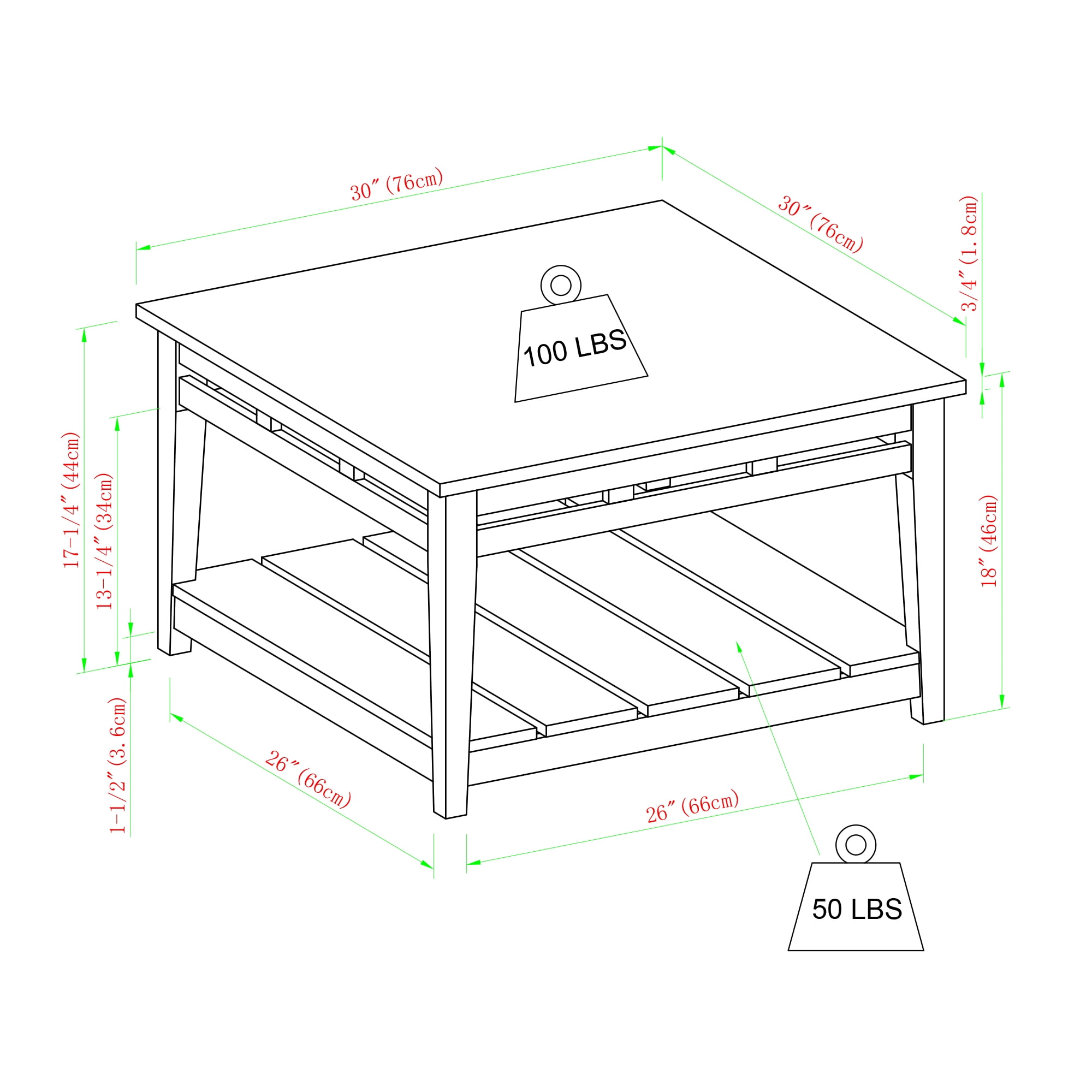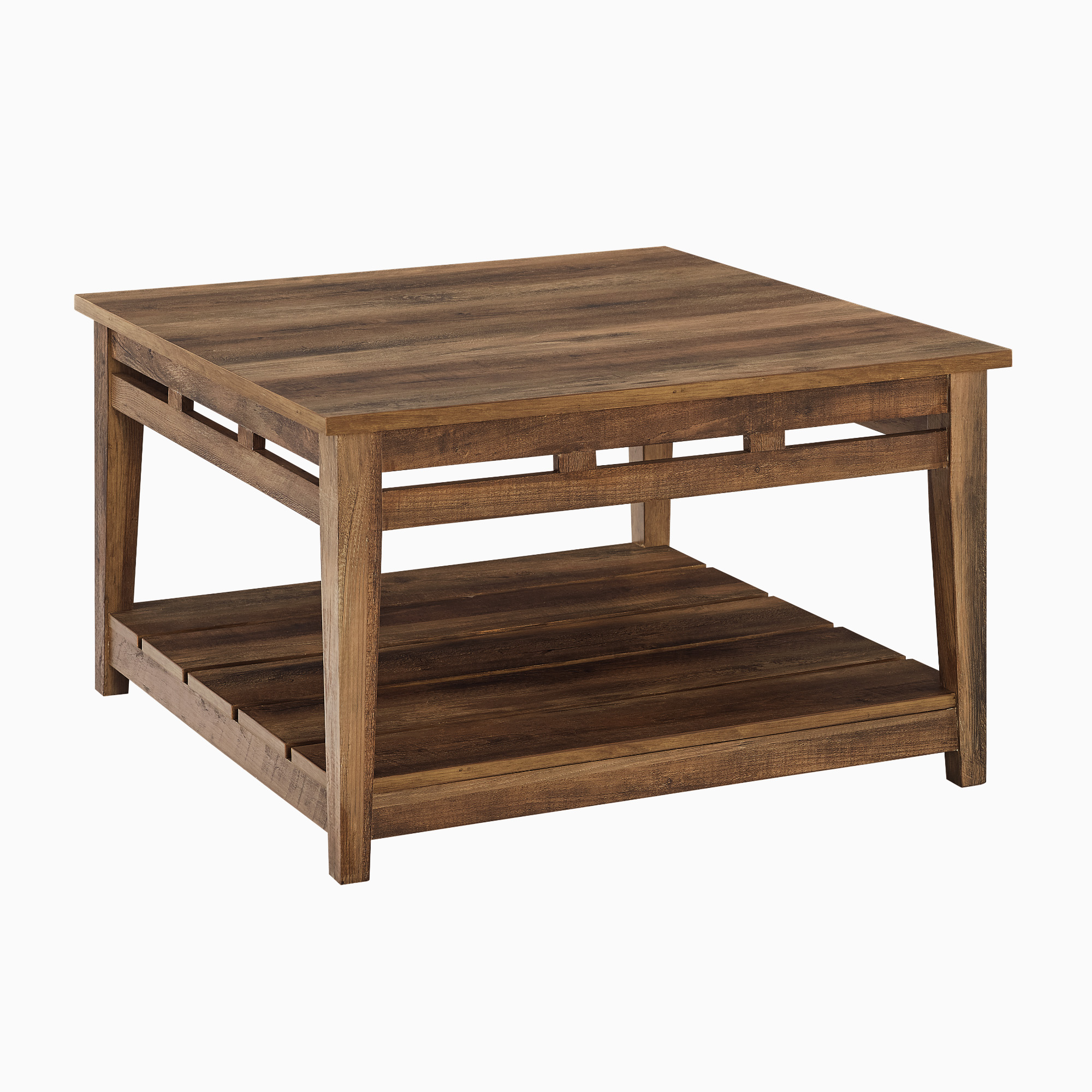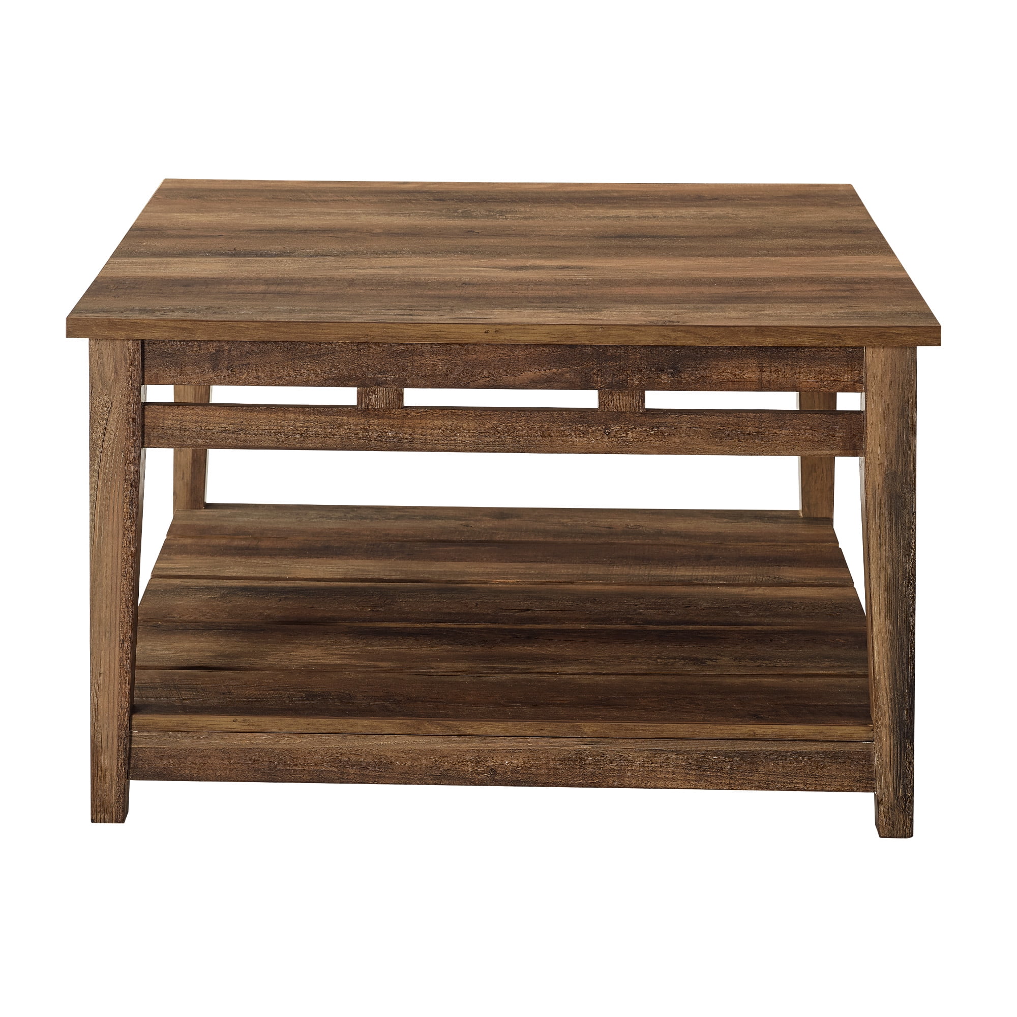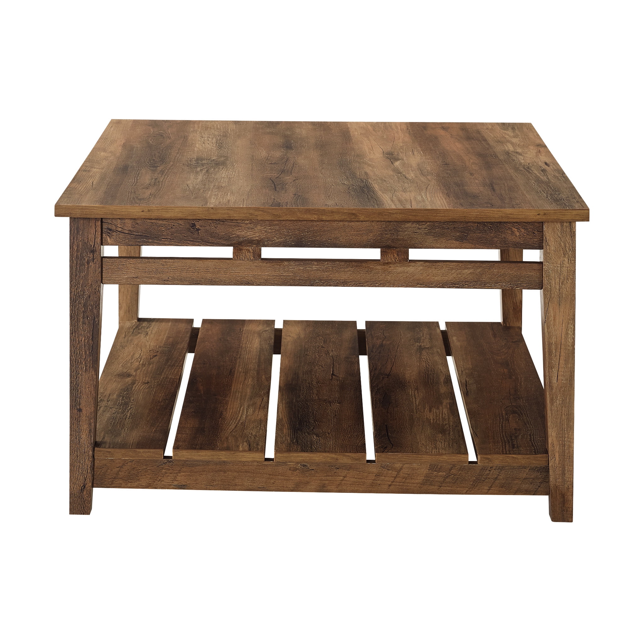 Manor Park Farmhouse Plank Style Coffee Table, Barnwood: Modern farmhouse style Reclaimed Barnwood finish Square tabletop for a beautiful centerpiece Attractive slat accents Lower open storage plank shelf Made from warp-resistant MDF wood and durable laminate Ships ready-to-assemble with step-by-step instructions Assembled Dimensions: 19″ H x 30″ L x 30″ W Packaged Dimensions: 7″ H x 35″ L x 34″ W