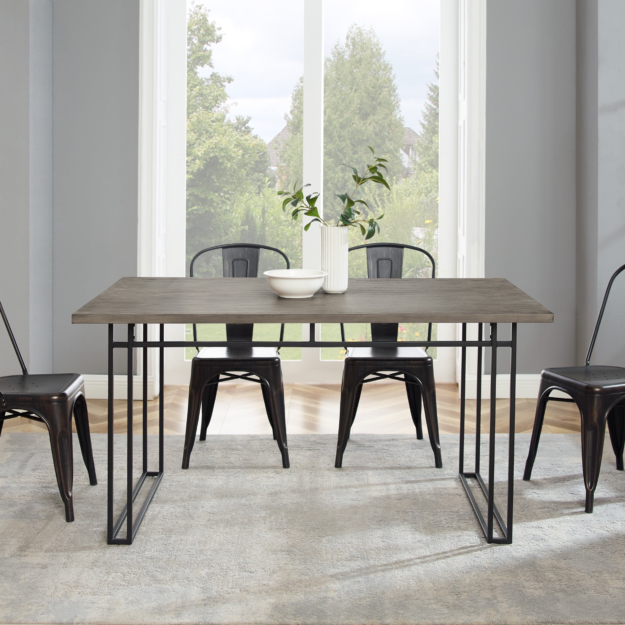 Manor Park Modern Double Metal Leg Wood Dining Table, Grey Hickory