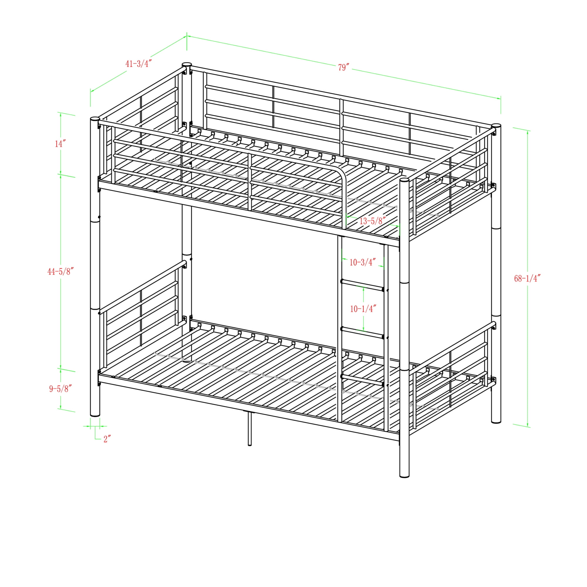 Manor Park Premium Twin Over Twin Metal Bunk Bed, Silver