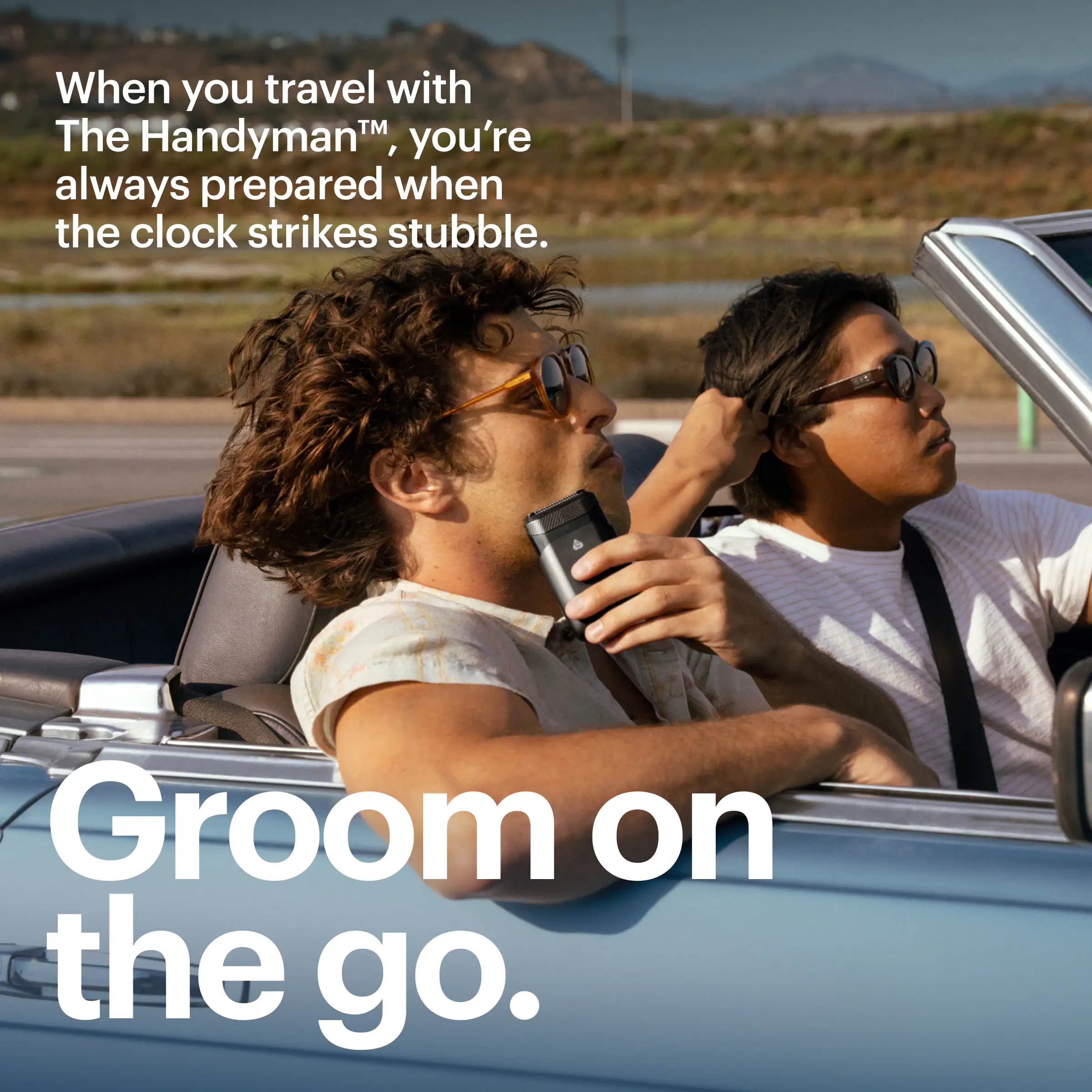 Need a touch-up away from home? Your chiseled jawline won’t lose its luster thanks to our dual-action foil shaver, The Handyman. Its compact design means you can toss it in your bag for easy grooming on the go.