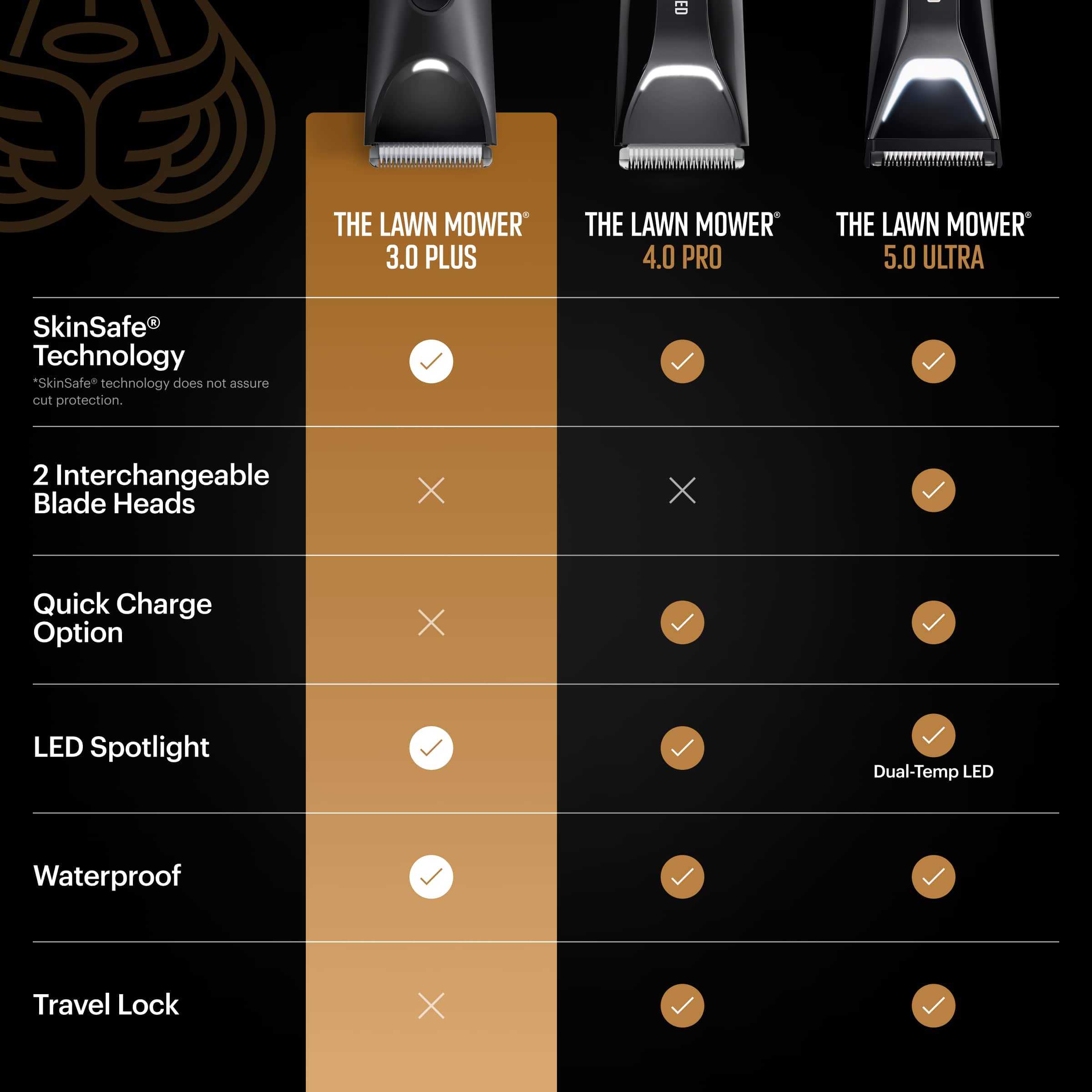 - Product Name: The Lawn Mower 3.0 Plus Essentials Kit, SkinSafe Rechargeable Wet/Dry Groin and Body Hair Trimmer, Grooming Gift Set