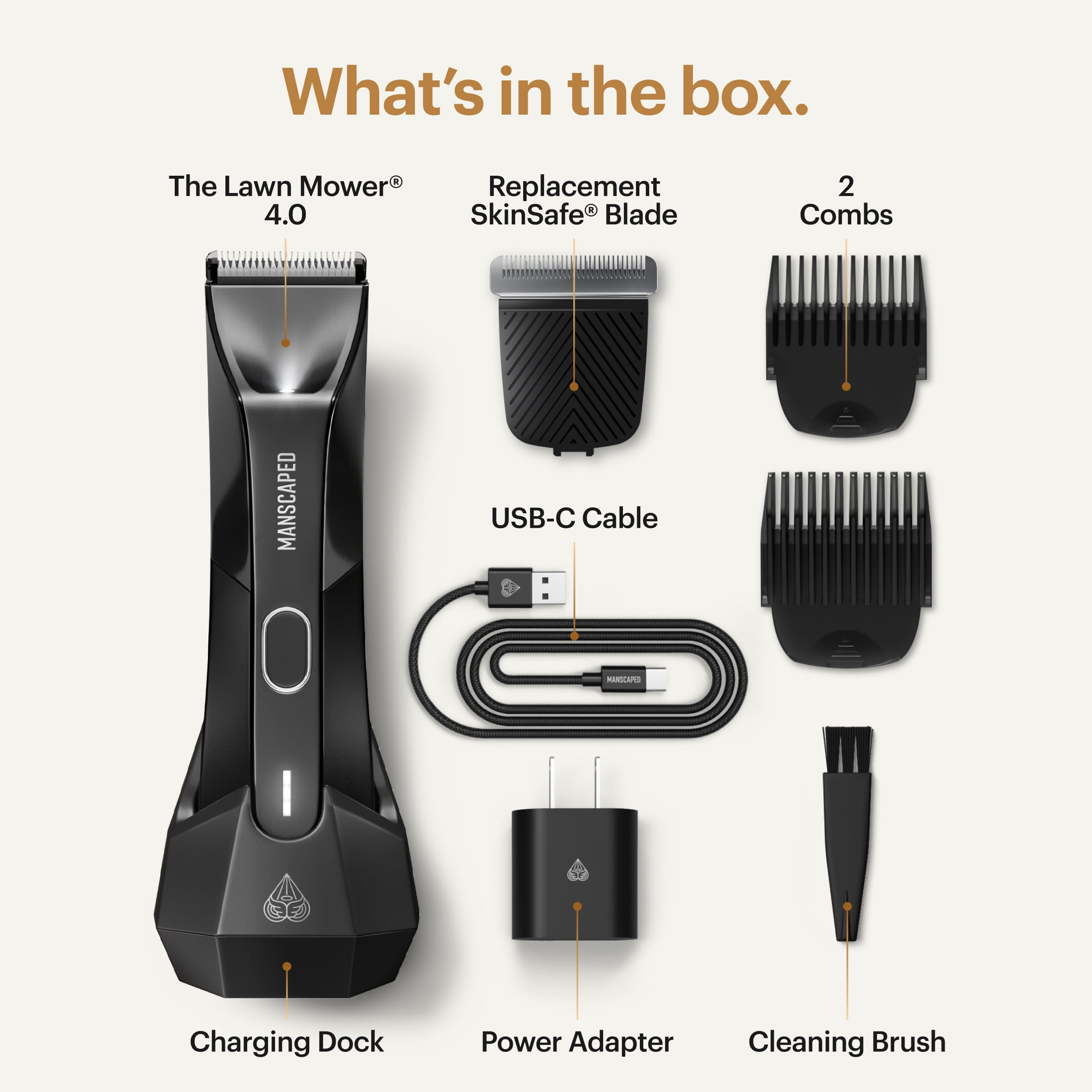 WHAT IS THE LAWN MOWER® 4.0: The Lawn Mower® 4.0 from MANSCAPED® is the only electric body hair groomer you need to keep your manhood looking trim, neat, and clean. Soft ceramic blades featuring advanced SkinSafe® Technology ensures confidence while trimming below-the-waist. FEATURES/BENEFITS: This next-level male trimmer is cordless, waterproof, and includes a wireless charging dock for ultimate convenience. It also comes with adjustable trimming guards sizes 1-4 for different hair lengths. No matter what length you choose, you can be sure to get an even trim. Plus, The Lawn Mower® 4.0 features rust-proof, ceramic snap-in blades for hygiene and sharpness. GROIN, BODY & BACK: Our trimmers were designed for below-the-waist grooming but work great on your not so private parts too! With our SkinSafe® replaceable blade, you can have multiple blades ready for all body areas with hair. Feel more confident, comfortable, and healthy with a total grooming experience. HOW TO USE: Before initial use, fully charge your trimmer. While charging, the tri-level LED unit will blink. When ready to use, all three levels will be solid. Then you’re good to use your trimmer for up to 90 minutes. To use the travel lock feature, three rapid clicks of the multi-function on/off switch will engage or disengage the lock. PROTECT YOUR PURCHASE – To keep The Lawn Mower® 4.0 working optimally, make sure to change out your blades regularly to keep them sharp, clean, and rust-free. ADDITIONAL SNAP-IN BLADE MODULE: The snap-in ceramic blade module is compatible with The Lawn Mower® 2.0, 3.0, and 4.0 series. When replaced every three months, you can keep your trimmer running smoothly and efficiently. Because it’s light years beyond other trimmers, The Lawn Mower® snap-in blade module creates grooming experience like no other.