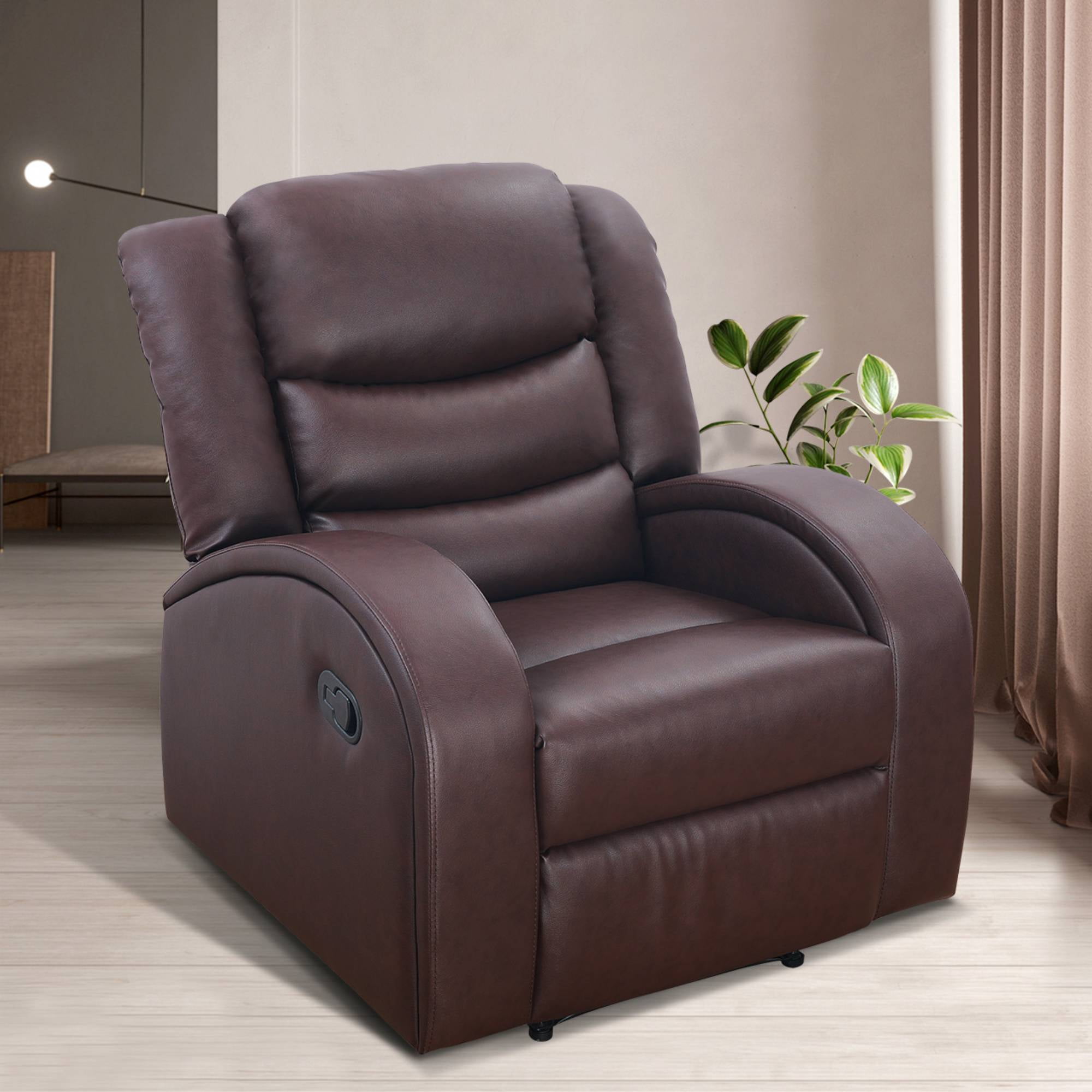 Manual Recliner Chair Leather Reclining Sofa Couch Home Theater Seating Seats for Living Room, Brown