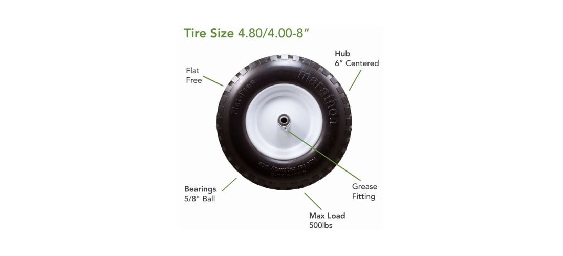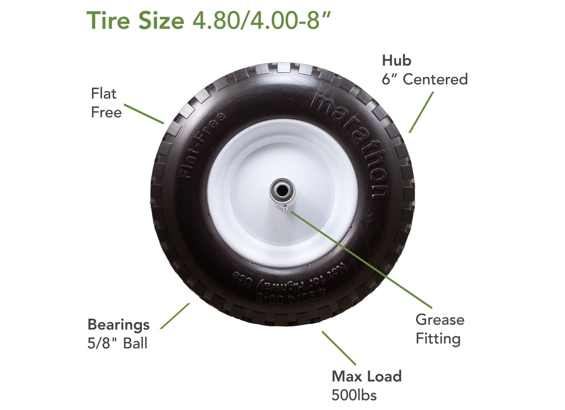 Marathon Tire 4.80/4.00-8, 6 Inch Centered Hub Flat Free Knobby Replacement Tire
