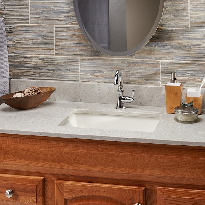 Modern and durable quartz countertop that compliments many colors and styles. Comes with a flat edge that provides clean lines and quickly updates any bathroom.