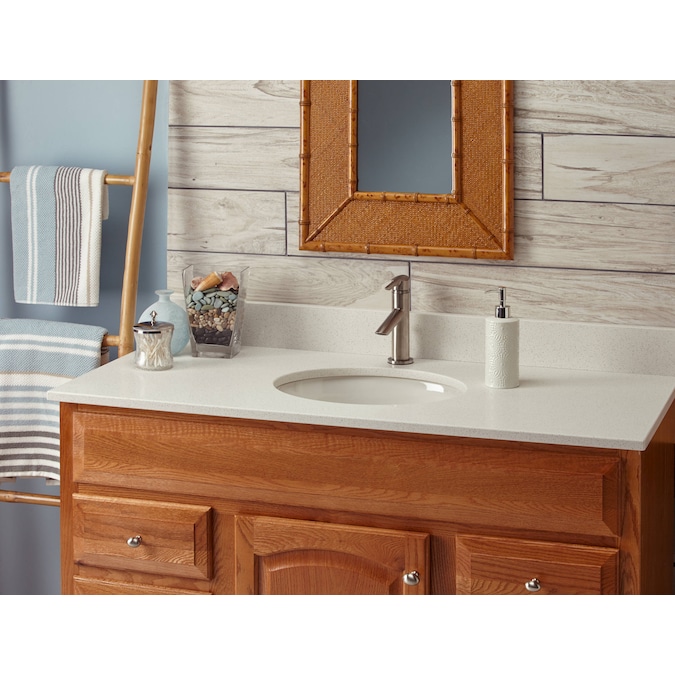 Modern and durable quartz countertop that compliments many colors and styles. Comes with a flat edge that provides clean lines and quickly updates any bathroom.