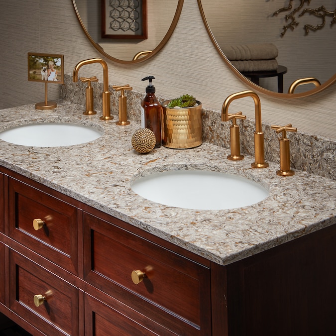 Modern and durable quartz countertop that compliments many colors and styles. Comes with a flat edge that provides clean lines and quickly updates any bathroom.