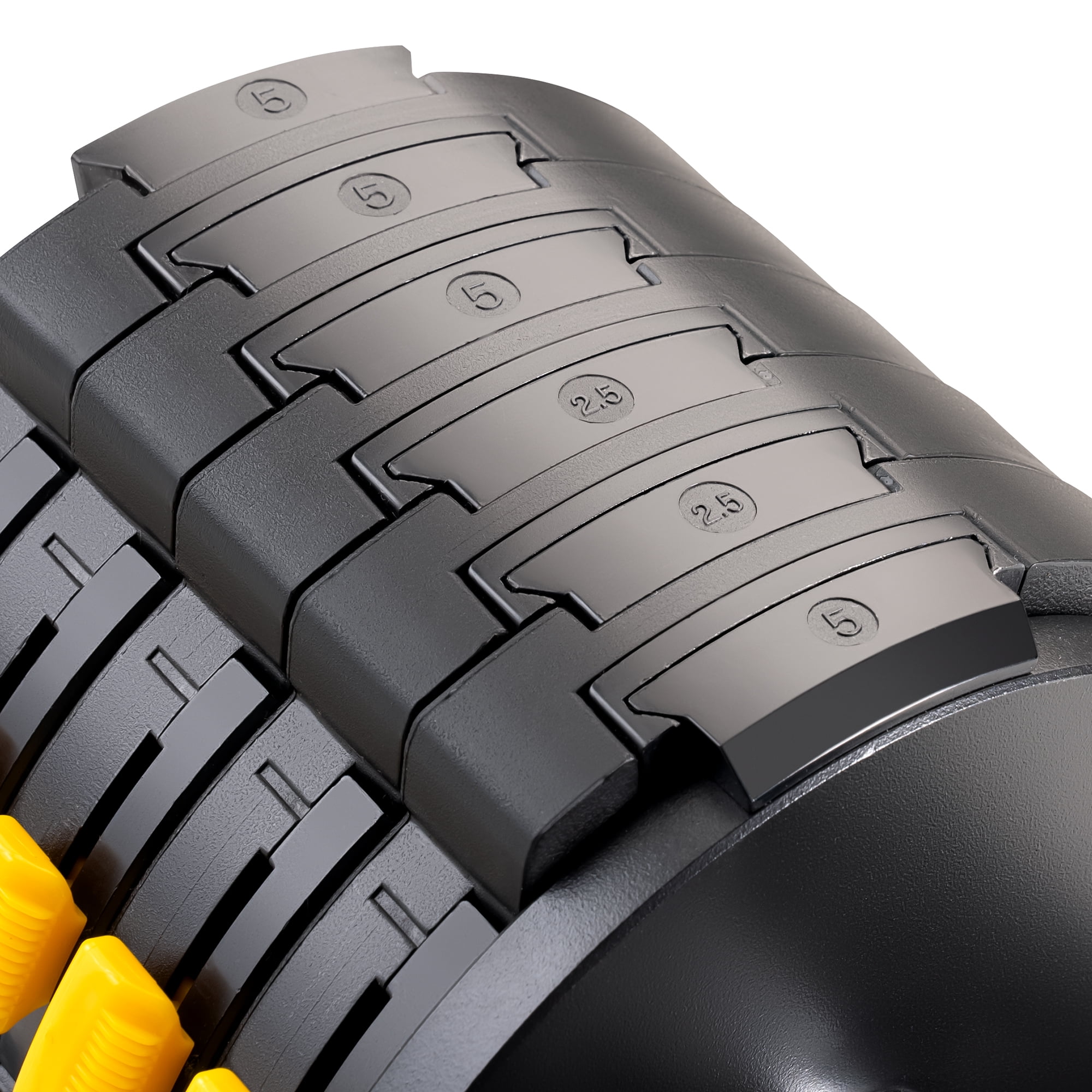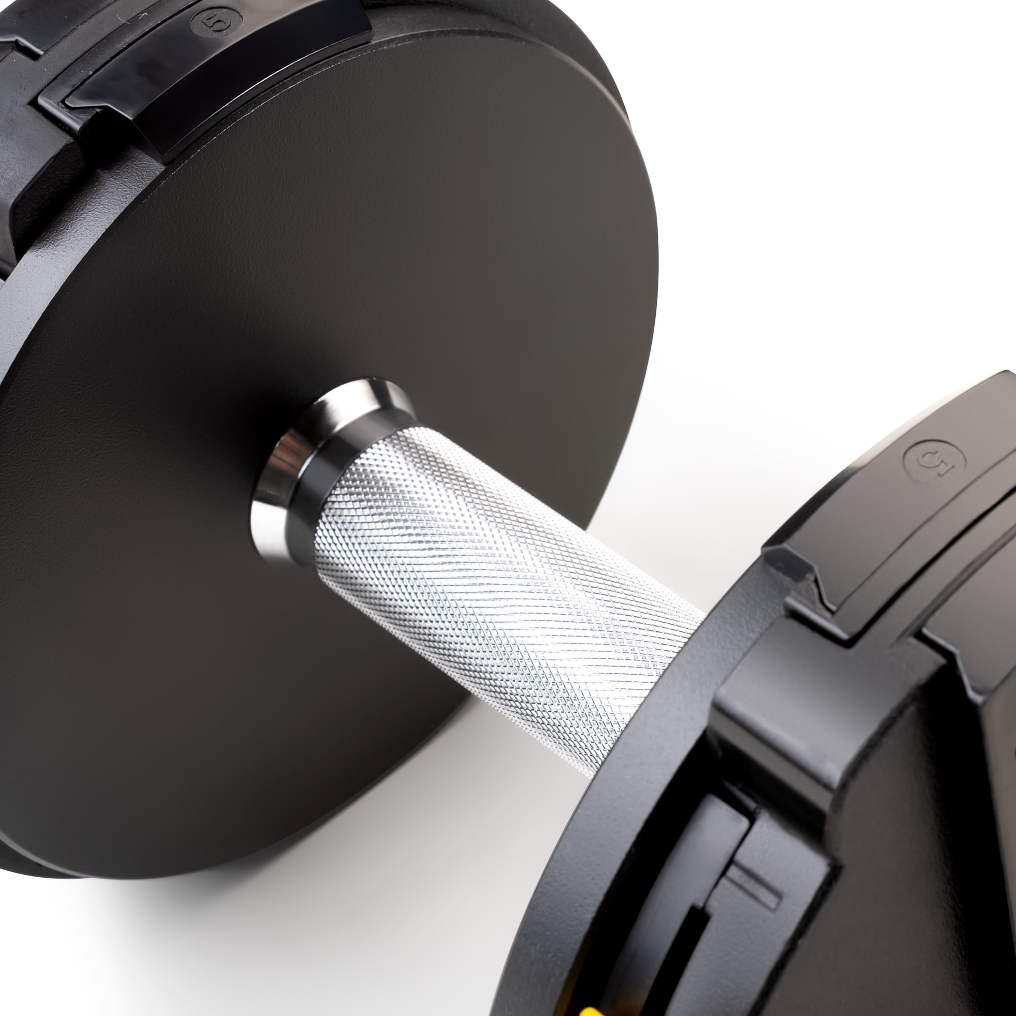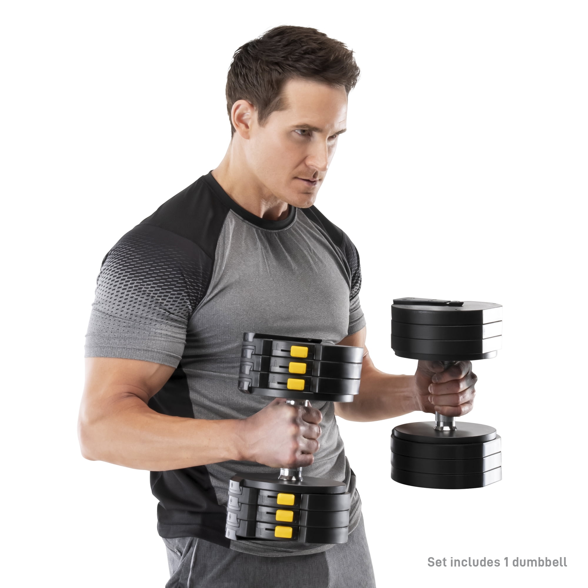 Marcy 6-in-1 Adjustable Dumbbells, Black, 50lb Adjustable Dumbbell System by Marcy includes 10 adjustable weight plates, totaling 50lbs Convenient weight selector allows easy selection of interlocking plates for your workout Modify your dumbbell weight between 10lbs and 50lbs: options include 10lb, 15lb, 20lb, 30lb, 40lb, and 50lb US Patent 7,588,520, powered by FLEX™ technology A knurled grip ensures a secure hold during intense workouts