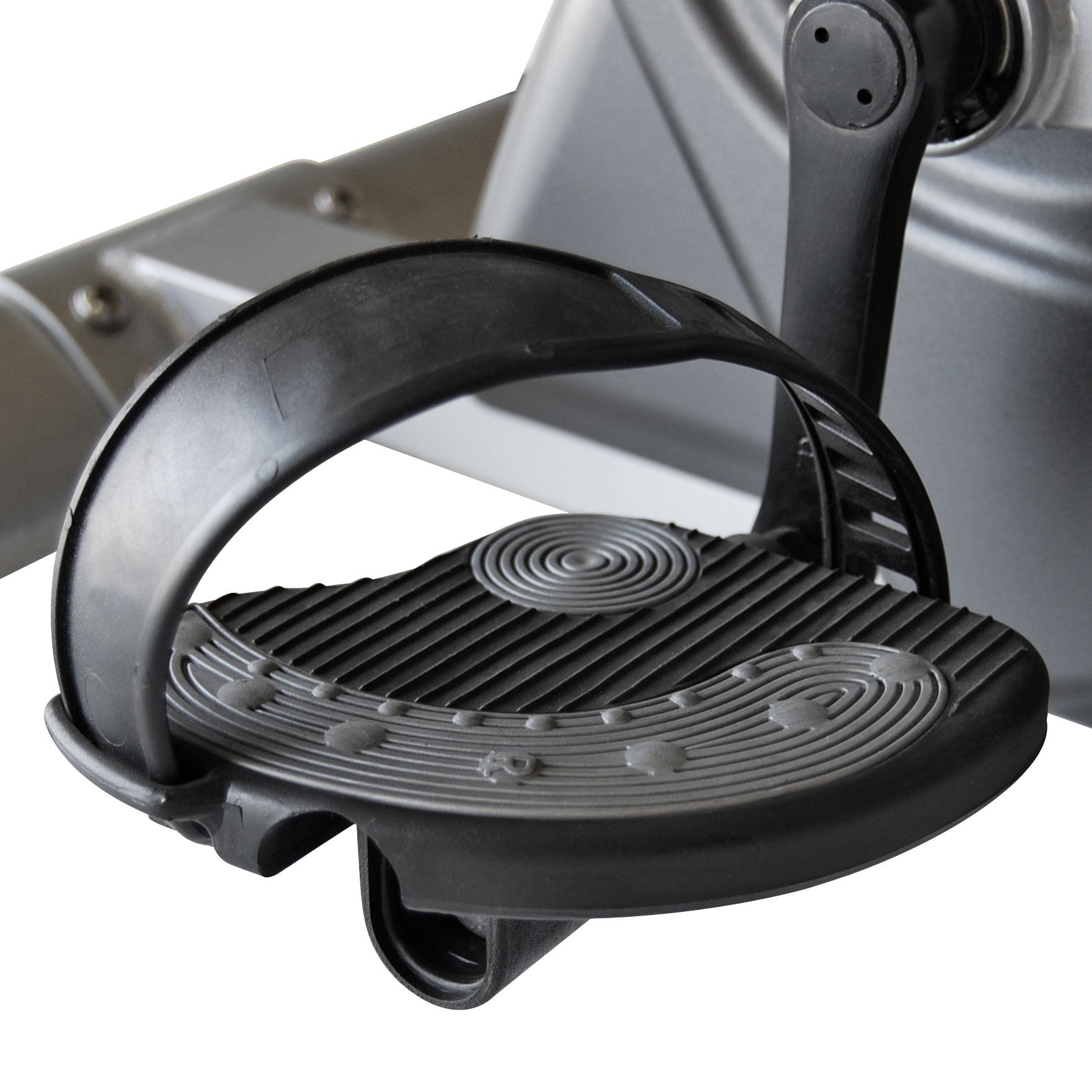A built-in fan provides resistance and cooling air. High-density foam set and foam-covered handlebars. Wheels on the bottom to transport around the house. User Weight Capacity: 300 pounds. Dimensions: 44 x 23.75 x 47 inches.