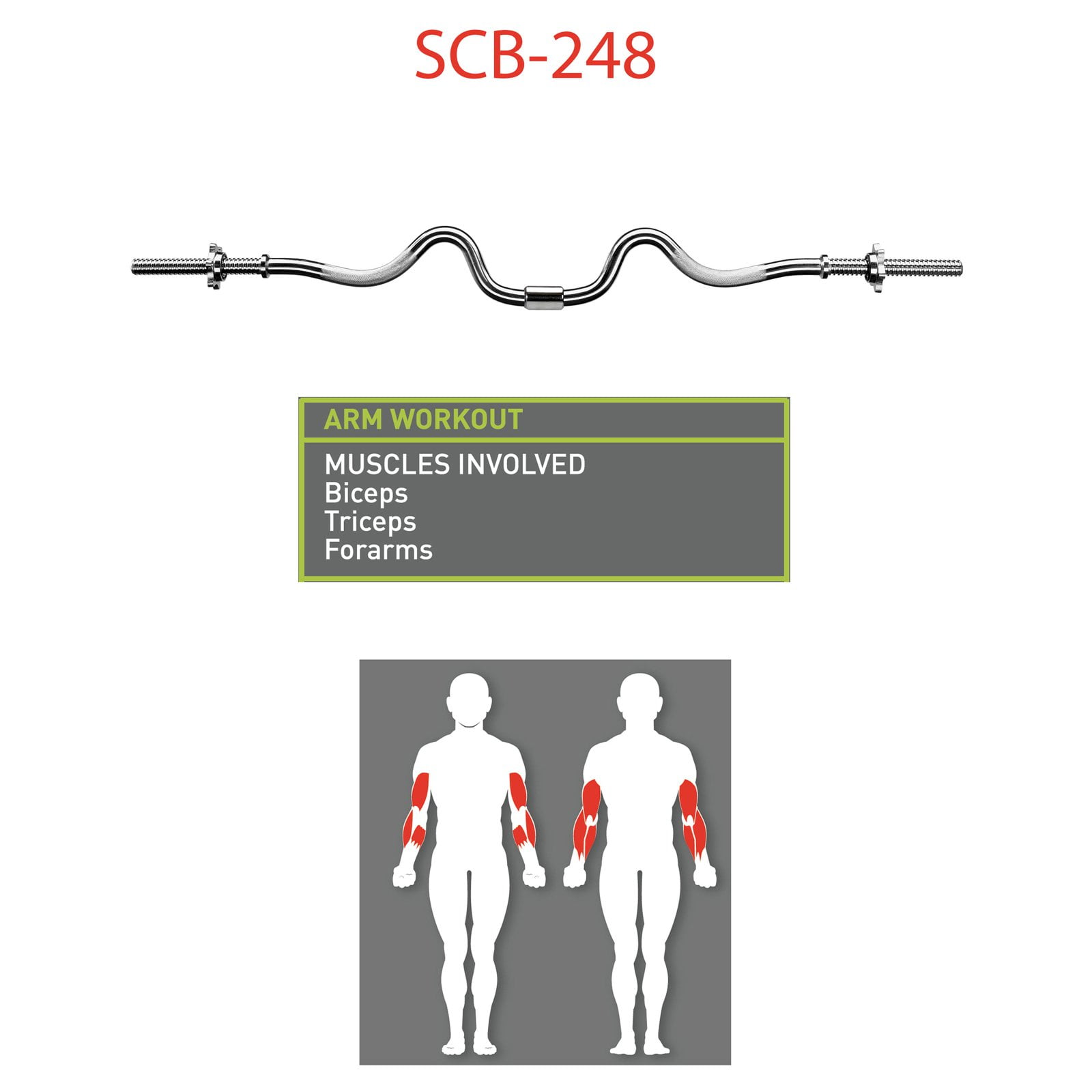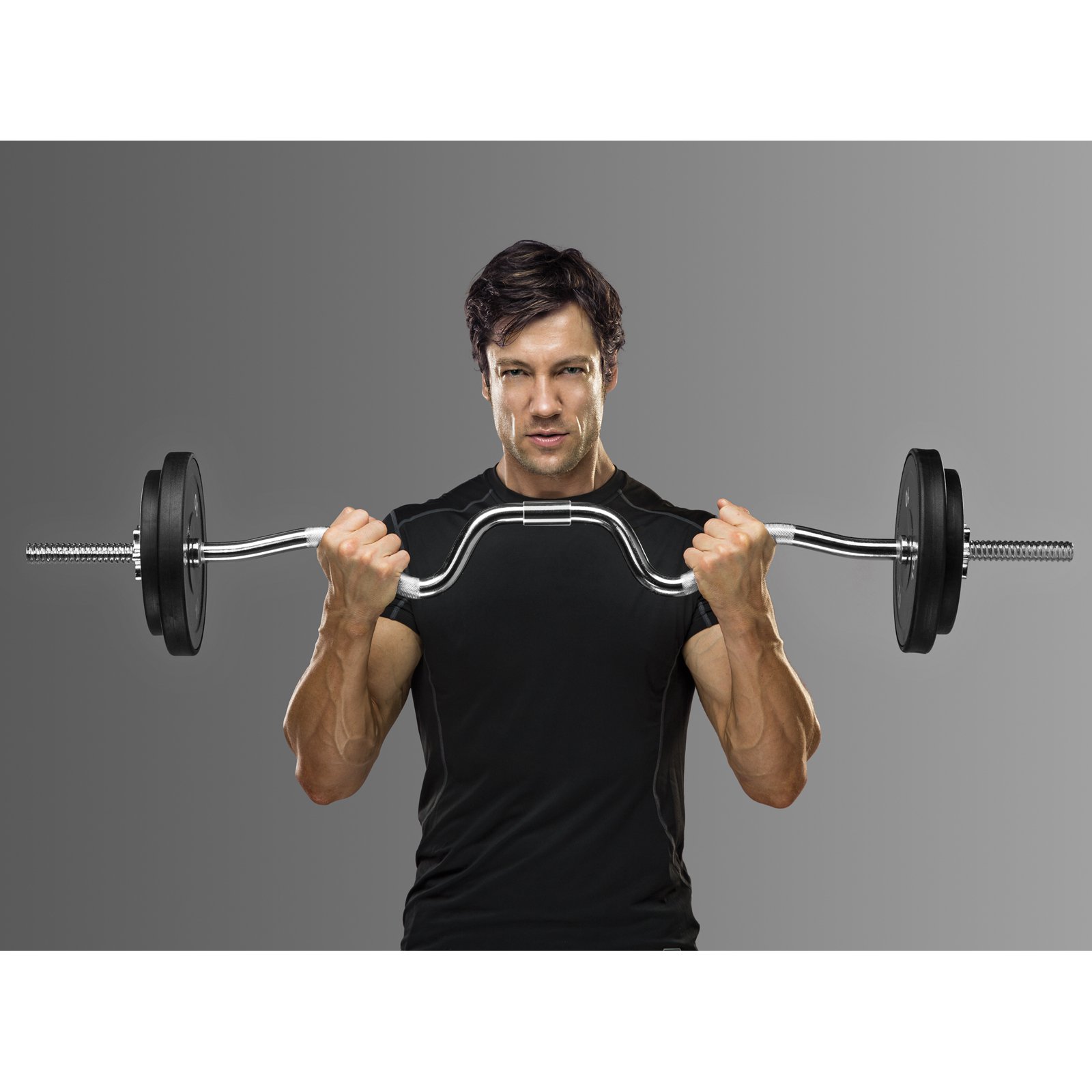 47″ standard 2-piece curl bar Marcy curl bar fits all 1″/25mm plates Threaded chrome collars Model# SCB248