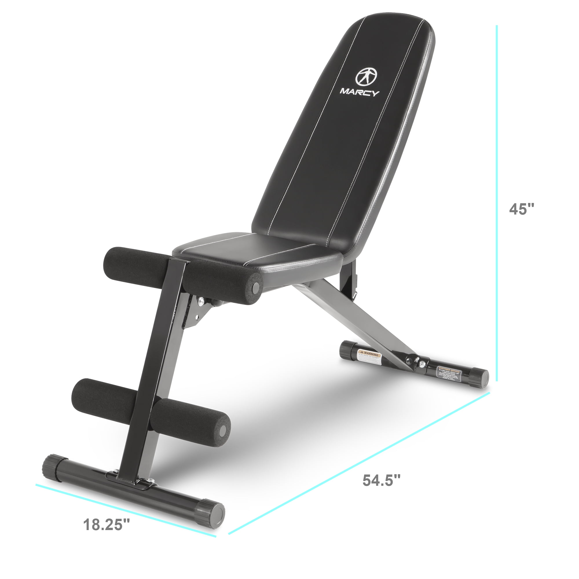 Designed for full-body workouts at home or the gym Target muscle groups such as abs, hamstrings, triceps, biceps, and quads Constructed of durable, 14-gauge steel Powder-coated steel frame Stabilized Design Contoured foam roller pads with high-density foam Can be adjusted to 6 different positions for use during military, incline, decline, and flat exercises Folds up to help you save space after your workout is complete Can help you better diversify your workout routine Features 4 foam leg rollers Maximum weight capacity: 300 pounds Color: Black Assembled dimensions (L x W x H): 54 x 19 x 45 inches Manufacturer warranty: 2-year warranty