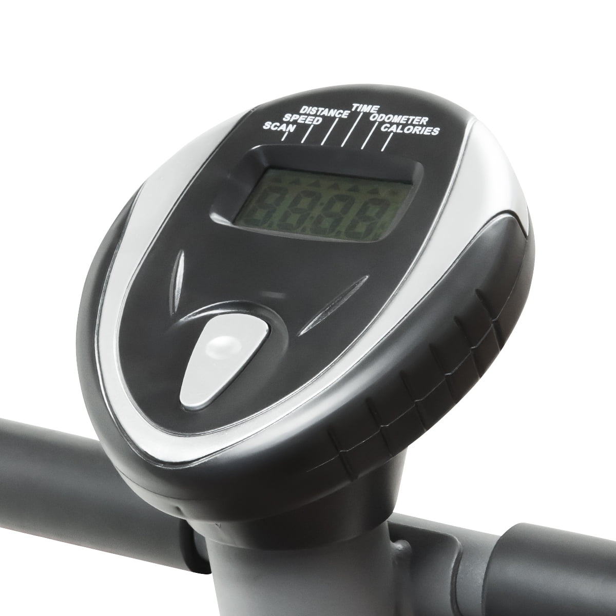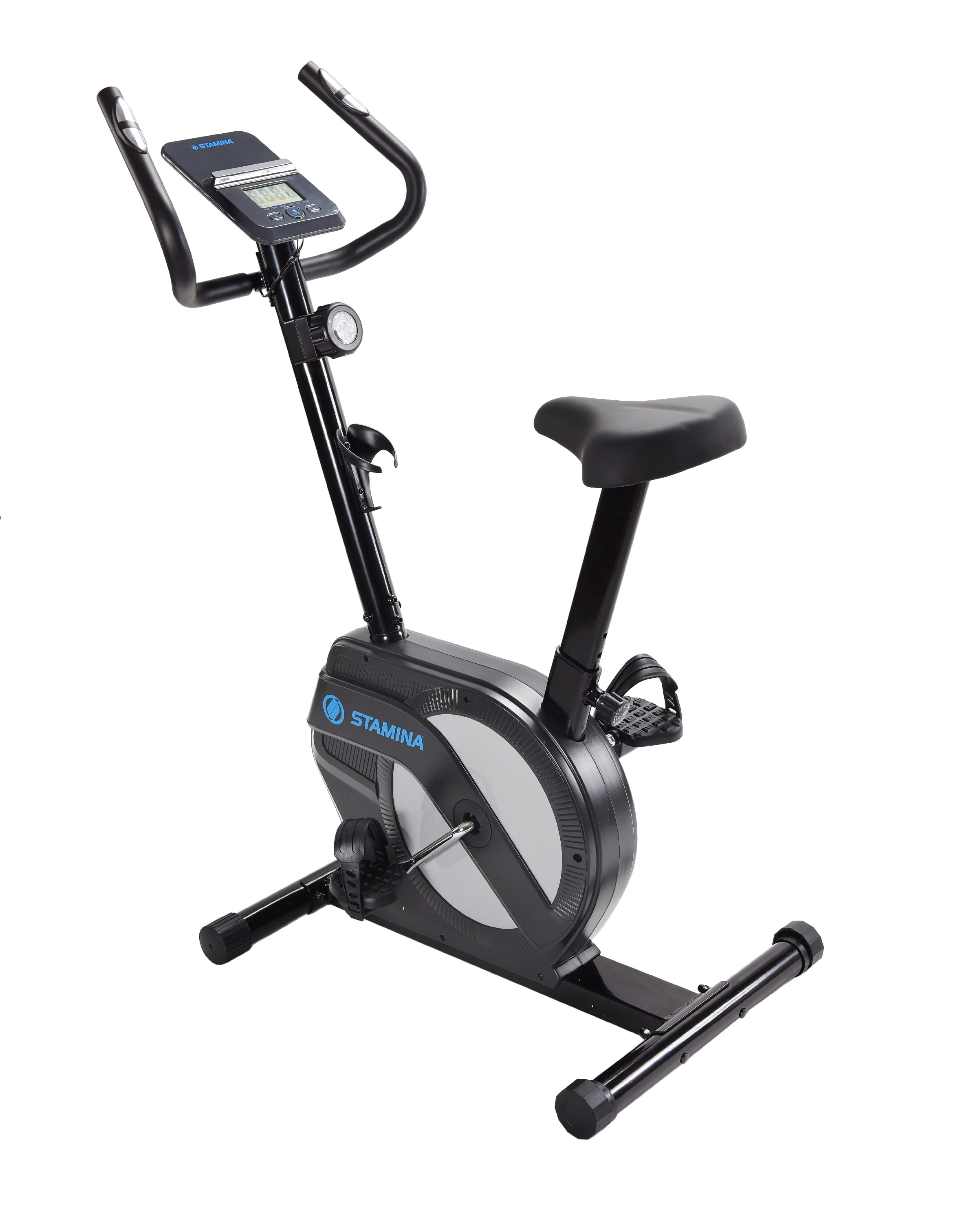 The large console acts as an odometer and tracks time, speed, distance traveled, and calories burned in extra-large numbers for easy reading. This bike is equipped with wheels for maximum mobility letting you easily transport it anywhere in the gym or your home and can be stored conveniently in a designated area. This upright exercise bike measures 31.5 x 48.75 x 18 inches.