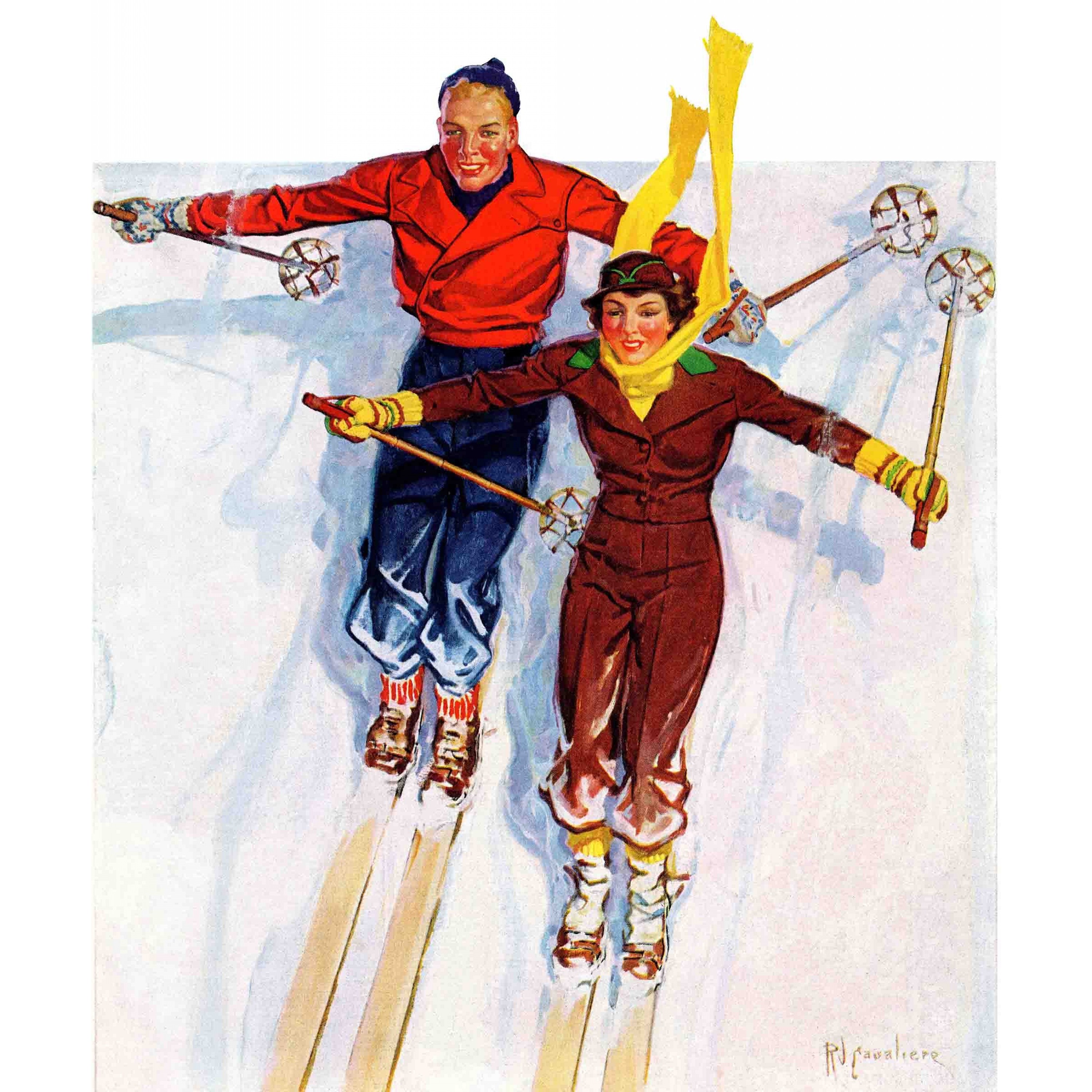 Marmont Hill Couple Downhill Skiing Vintage Sports Collection